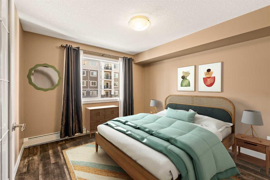 Welcome to Sage Hill, where comfort and convenience come together in this beautifully upgraded 2-bedroom, 2-bathroom low-rise condo. The kitchen is a true standout with rich cabinetry, a large island with seating, and plenty of space for everyday living and entertaining. The open layout includes a dedicated dining area and a bright, spacious living room that’s easy to furnish. Luxury vinyl plank flooring runs through the main living areas for a modern, seamless look, while both bedrooms feature soft carpet for added comfort. West-facing windows fill the home with natural light, and the private balcony with a gas hookup is the perfect spot to enjoy summer evenings. The primary bedroom includes a walk-through closet and a 4-piece ensuite with double sinks and great storage. The second bedroom is bright and versatile, located next to a second full bathroom with a tub/shower combo. You’ll also love the in-suite laundry with extra shelving, air conditioning via the wall unit in the living room, a titled underground parking stall and a secure underground storage locker for seasonal items. Sage Hill is a fantastic NW community with walking paths, green space, nearby shopping, restaurants, and quick access to Stoney Trail and Shaganappi Trail. Perfect for first-time buyers, downsizers, or investors—this home checks all the boxes!