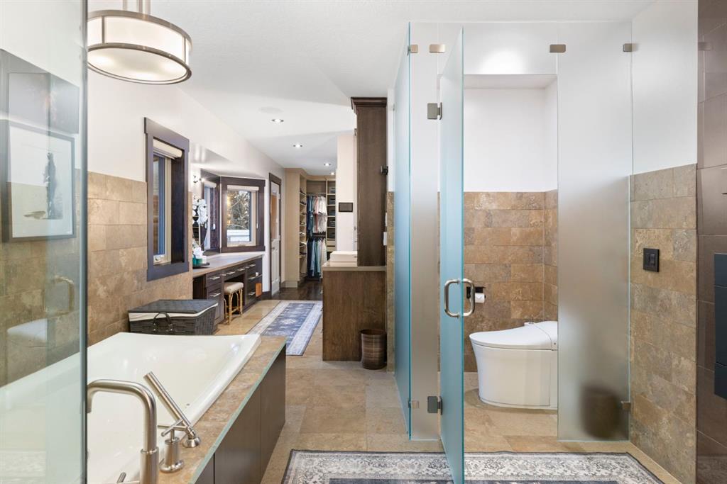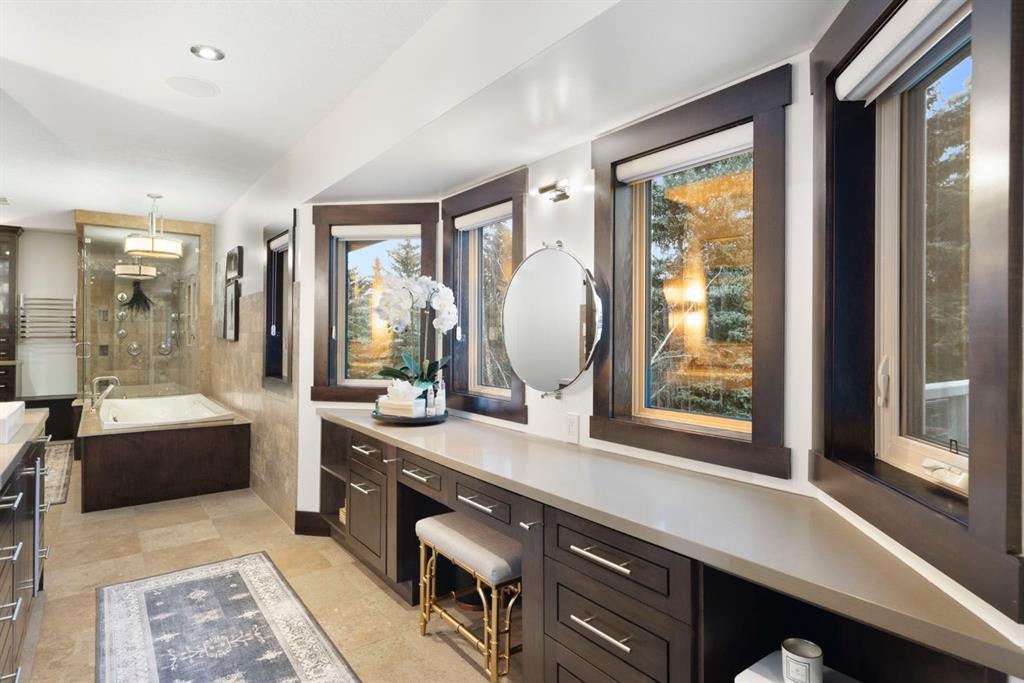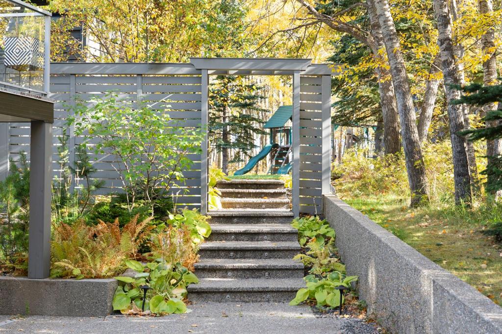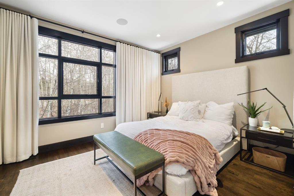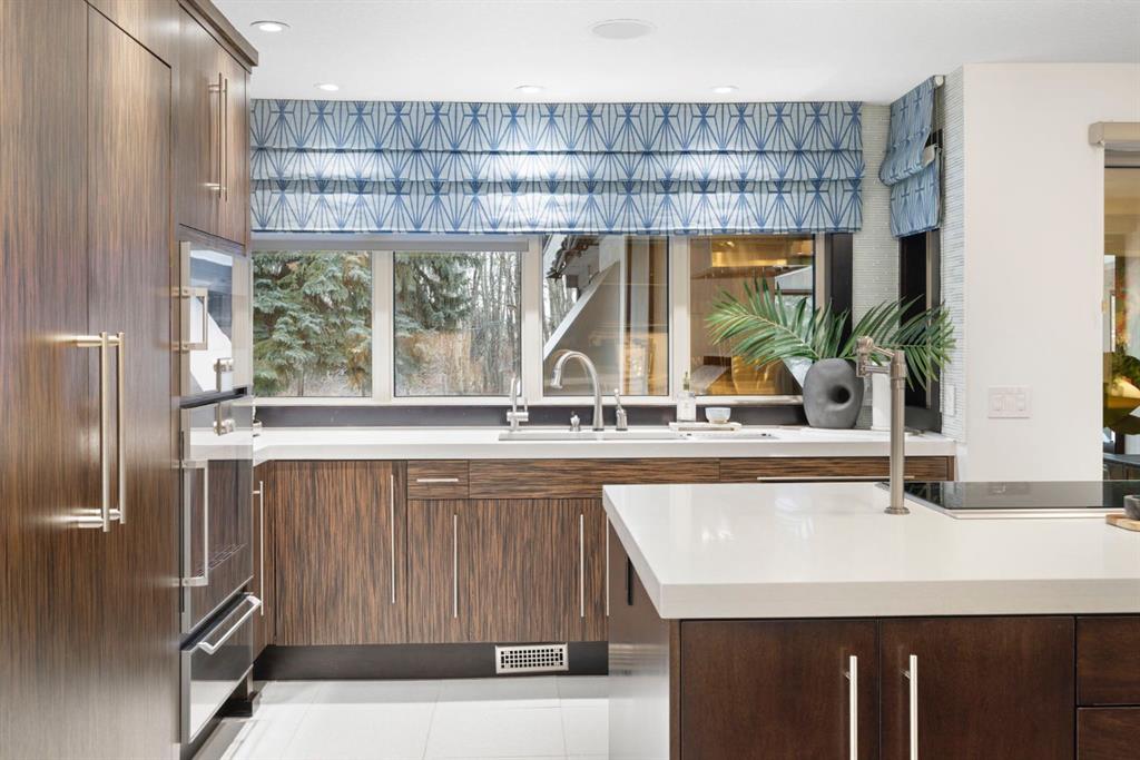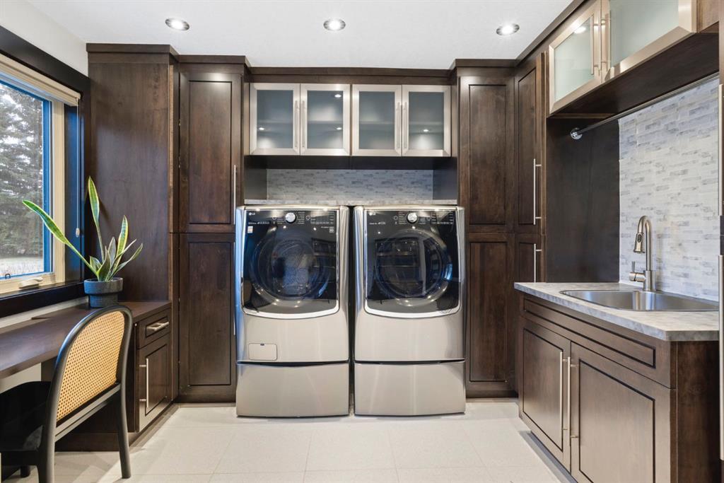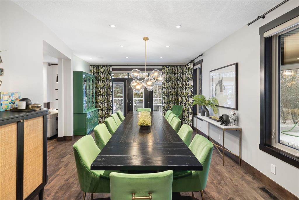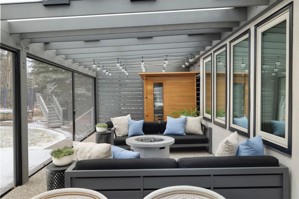 **Watch our CINEMATIC video **Nestled deep within its own private forest yet only 2 minutes from Calgary amenities, this 2-acre estate offers nearly 7000 sq.ft. of living space, a 2-car attached garage, and a 2017-built 1,200 sq.ft. guest house with a 5-car garage below including a 2-piece bathroom, TV, and sound system. Featured in Western Living Magazine, the home has undergone more than $500K in RECENT RENOVATIONS and is truly turn-key. The main floor blends modern luxury with everyday comfort, featuring a high-performance kitchen with dual Caesarstone islands, Gaggenau and Wolf appliances, and a recently added eating bar at the island. The kitchen area flows effortlessly to expansive covered and screened living space with a gas fireplace, heated floors, BBQ, seating area, and large sauna. The space is connected to an outdoor kitchen area with a motorized awning, granite eating bar, stainless-steel cabinetry, a BBQ, smoker, bar fridge, and heated aggregate flooring. The dining room evokes future plans of large gatherings with a 12- person table and an attached sundeck with room for a full size dining table. A family lounge with 3-sided fireplace, a renovated 3-pc powder room, office with built-ins and saltwater fish tank, and refreshed laundry room with a view complete this level.