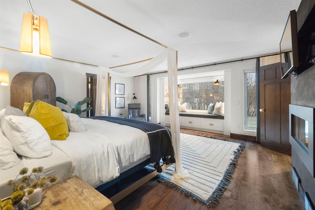 The guest house mirrors the main home’s style and includes heated floors and full utilities. Your family member or guests will be more than comfortable in this 1 bedroom, full kitchen, laundry, 4-piece bathroom and spacious eating and living areas. Additional recent improvements include new flooring throughout, full house Control4 automation system with integrated security, water shut off, and sensor monitoring, Euroline windows, updated entry gate, lighting and landscaping, new air purification system, re-paved driveway with partial heating, full landscape irrigation, heated playhouse, motion-activated stair lighting, and a newly designed boutique walk-in closet. A rare blend of privacy, design, and modern acreage living, magazine-worthy, and just moments from the city.