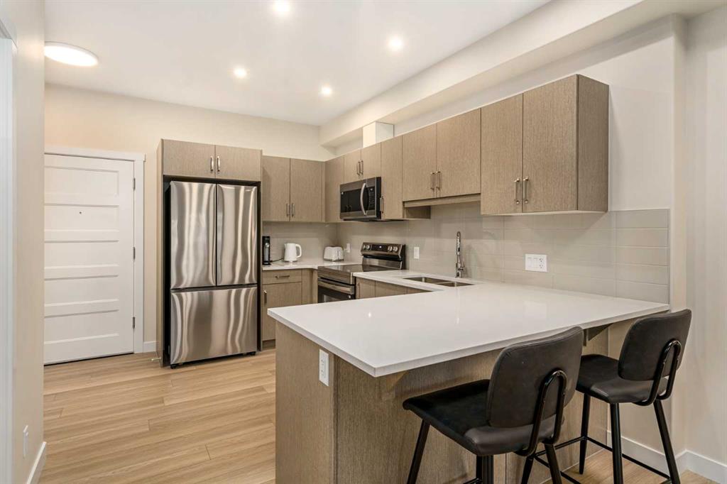 Elevated urban living awaits in this exquisite top-floor one-bedroom, one-bathroom residence in the sought-after community of Springbank Hill. Situated in a newer, impeccably maintained building, this sophisticated home showcases a sleek open-concept design, refined modern finishes, and an abundance of natural light throughout.