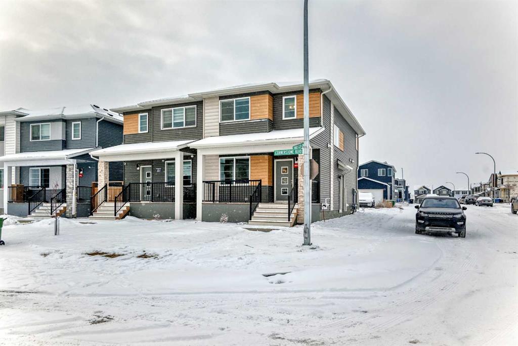 Welcome to this beautifully designed 2023-built semi-detached duplex offering approximately 1,649 sq. ft. of well-planned living space located in the vibrant and fast-growing community of Cornerstone. Situated on a premium corner lot, this home offers extra natural light, added privacy, and excellent long-term value.