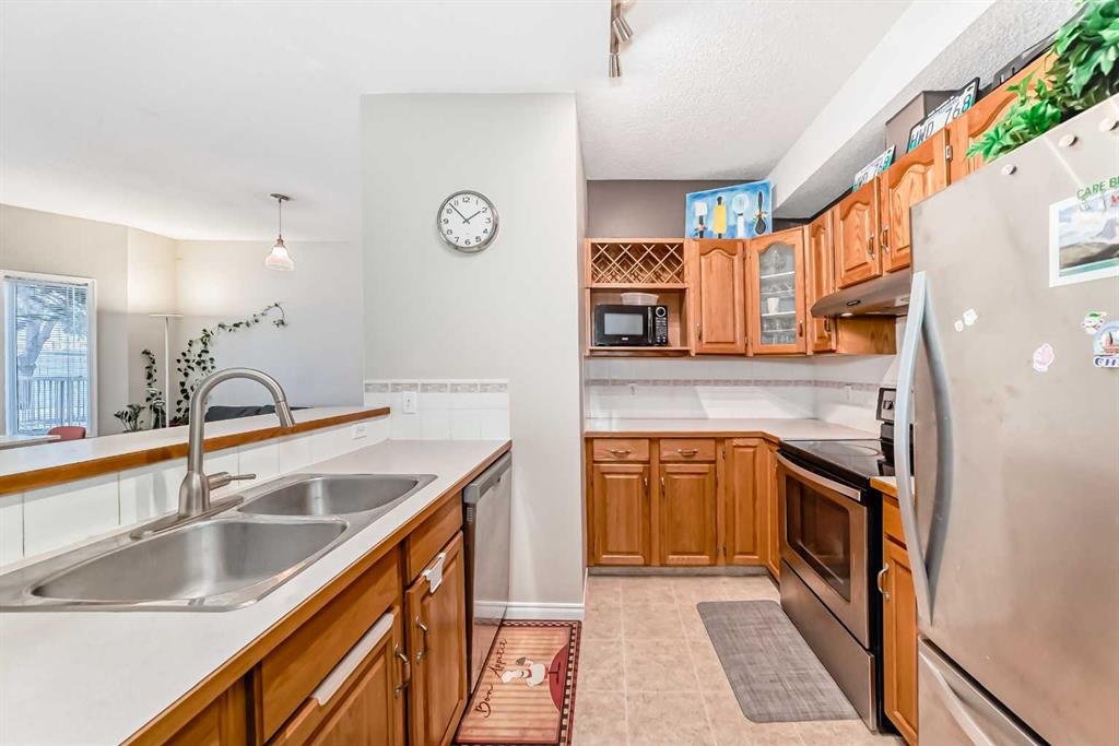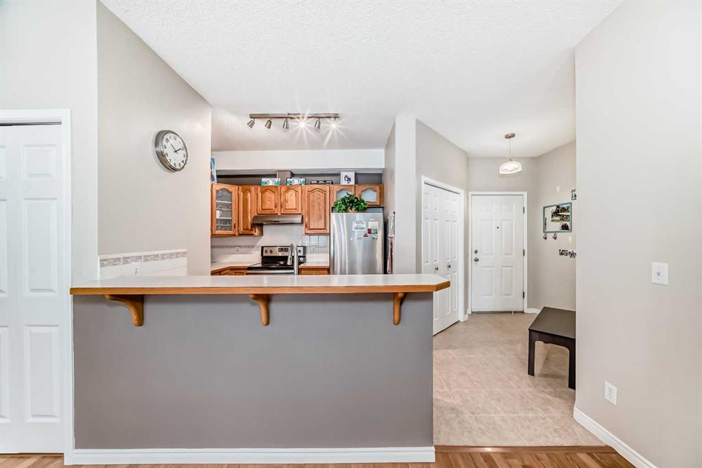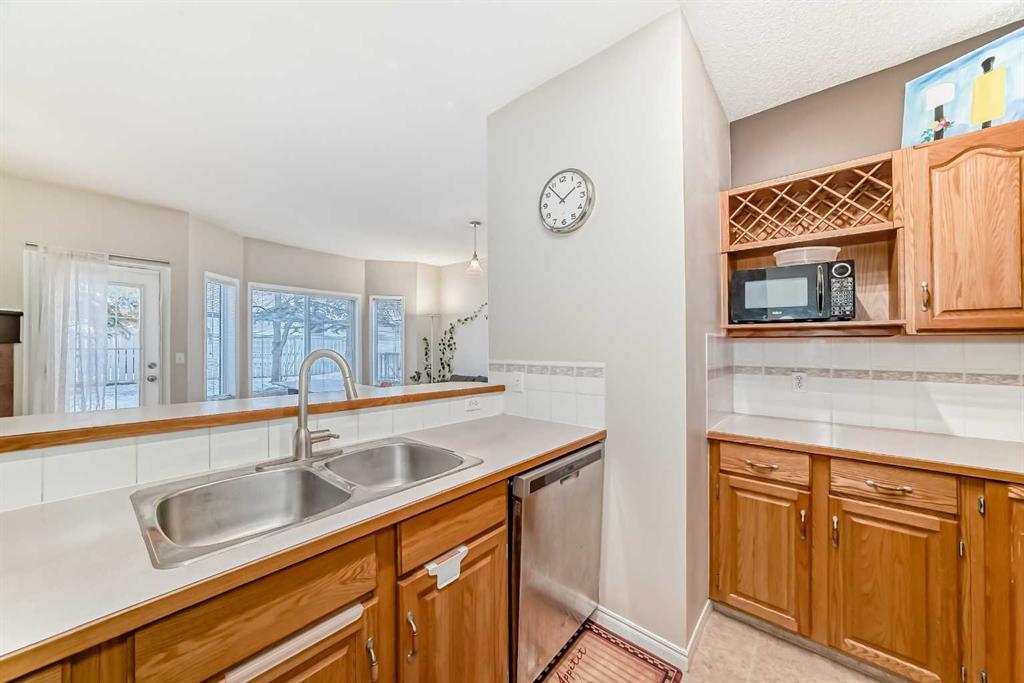 An ideal place to call home, this bungalow-style townhouse is perfectly located in the heart of Windsor Park and offers easy, low-maintenance living. Step inside to a bright, open-concept layout with a spacious foyer that leads into the kitchen, featuring stainless steel appliances and a convenient breakfast bar—great for quick meals or casual entertaining. The kitchen opens to the cozy living room with laminate flooring, a corner gas fireplace, large windows, and direct access to a generous patio and outdoor space, perfect for relaxing after a long day.