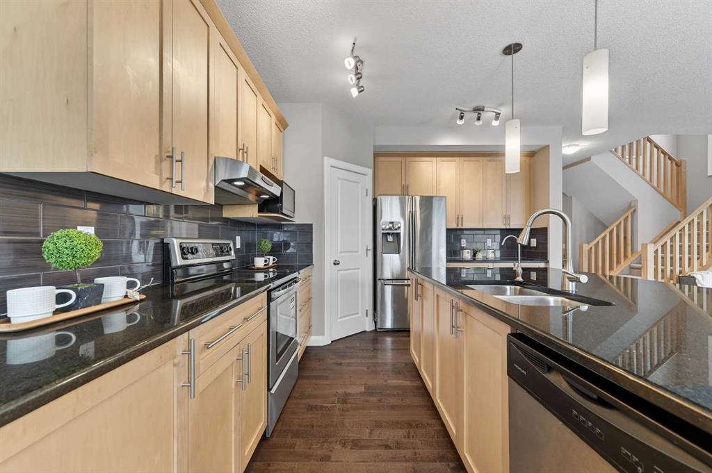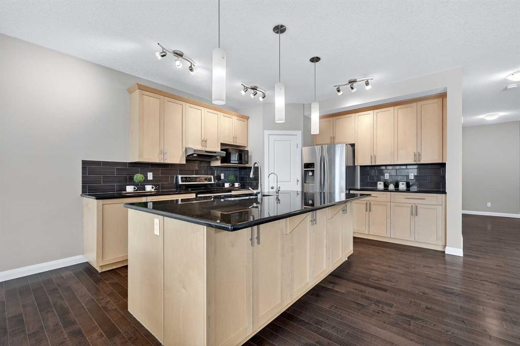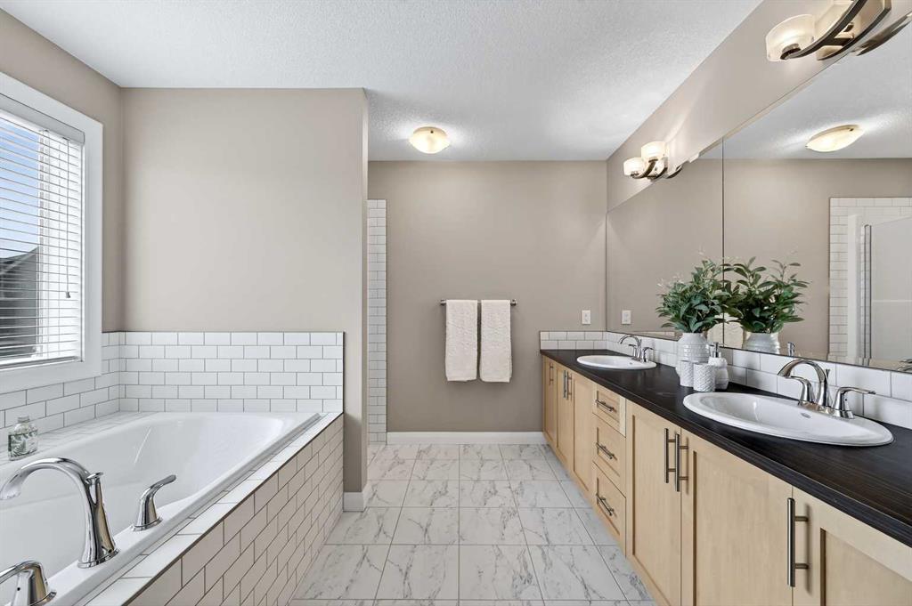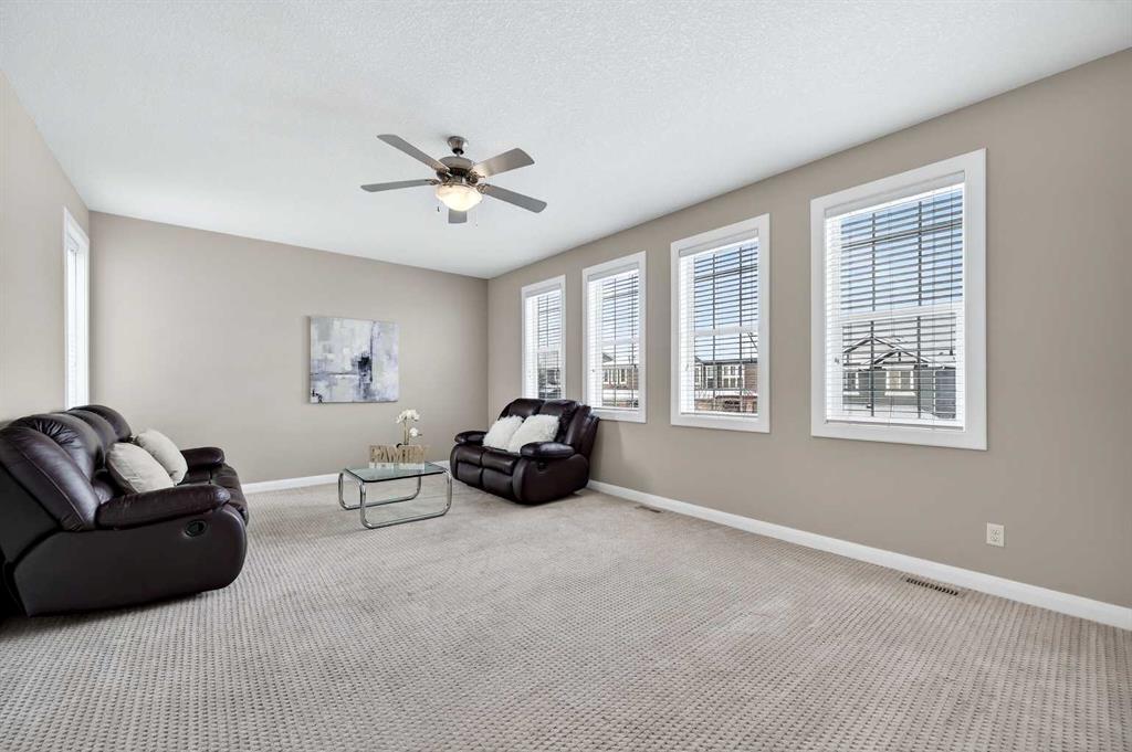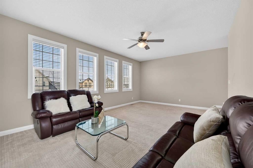 OPEN HOUSE SAT. 2-4. This stunning Broadview-built two-storey home is located in the highly sought-after community of Silverado and offers an impressive 3,350 sq. ft. of fully developed living space with FOUR BEDROOMS AND A FINISHED BASEMENT. The open-concept main floor showcases 9’ ceiling, gleaming hardwood floors, wide hallways, a bright and spacious living room filled with south-facing windows, and a chef’s kitchen featuring custom maple cabinetry, granite countertops, and a large island ideal for both everyday living and entertaining. From the dining area, step out onto a massive two-level deck overlooking a fully fenced backyard with cobblestone pathways, BBQ gas line, and a beautiful vegetable garden. Upstairs, the bright and spacious bonus room is ideal for family gatherings, while the south-facing primary bedroom boasts a luxurious ensuite with double vanities, separate shower, and deep soaker tub. Two additional generously sized bedrooms, a 4-pc full bath and a convenient computer/work area complete the upper level. The fully finished basement with 9’ ceiling offers exceptional versatility with a large recreation area featuring a mirrored wall for a gym or dance studio, an additional bright bedroom with a south-facing window, a den perfect for a home office or hobby room, and a 4-pc full bathroom. Thoughtfully maintained and upgraded, this home features a new roof and siding (2022) and a new double garage door (2025). Ideally located within walking distance to three schools and pathways, just a 7-minute drive to shopping, the library, and the YMCA, and with the world-renowned Spruce Meadows Equestrian Centre as its western neighbor, this home also offers quick access to Stoney Trail and Macleod Trail, providing an easy commute to the mountains —making it a rare opportunity not to be missed.