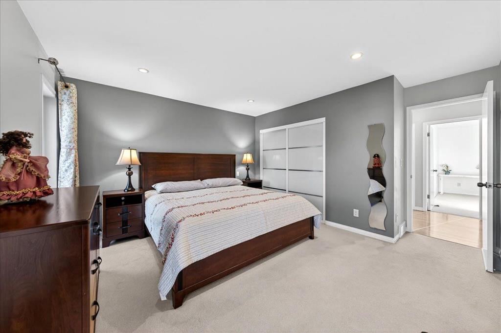 Upstairs, you’ll find three generously sized bedrooms, including a spacious primary retreat with an upgraded spa-like ensuite featuring a large walk-in glass rain shower. Heated flooring in the upstairs bathrooms adds an extra touch of comfort and luxury. The fully finished basement provides additional versatile living space, perfect for a recreation room, home gym, office, or entertainment area. Step outside to the deck, equipped with a BBQ gas line, ideal for outdoor enjoyment. Central air conditioning ensures year-round comfort throughout the home.