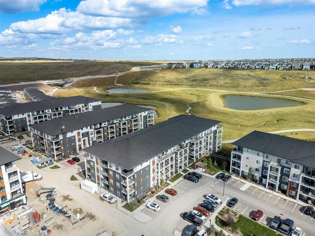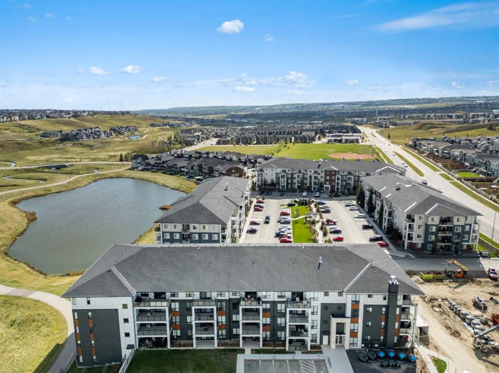 This bright and sunny south-facing 656 sq.ft. (RMS) top floor condo offers a well designed 2 bed + 2 bath layout with an open concept living space filled with natural sunlight. Walking in you are greeted with the functional kitchen which features quartz countertops, full stainless steel appliance package and cabinets galore. The kitchen center leaves plenty of room for a proper dining room table to gather for a meal or view the balcony for an evening sunset. The spacious balcony is perfect for relaxing or entertaining and includes a BBQ gas line. The unit's 9-foot ceilings enhance the open concept, with bedrooms on each end of the layout providing privacy, perfect for roommates, or a WFH office. In suite laundry, a titled underground parking stall and a dedicated storage space are also included with this unit. The primary bedroom includes a functional walk-through closet and 3-piece ensuite including stand up shower. Sage Hill Park II backs directly onto ponds and beautiful green space with a scenic bike path. This unit offers a peaceful setting while remaining close to everything, steps to shopping and amenities located at Sage Hill Crossing, and just minutes to Sarcee Trail & Beacon Hill Centre. Easy access to Stoney Trail ensures a quick and convenient commute anywhere! Call your favourite realtor for a private showing today!