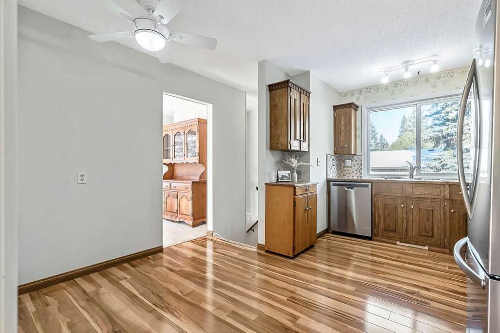Here is your opportunity to own a bungalow on the highly sought-after Lock Crescent in Okotoks. Nestled away on a quiet, family-friendly area, beside Cedar Grove Park, and surrounded by mature trees, this home has been lovingly looked after by the same owners for over 48 years. Step inside the front door to a bright and sunny main floor living room complete with vaulted ceilings and soaring brick fireplace that connects to the large dining room. Enjoy meals with family while watching the birds and wildlife out the nicely updated picture windows. The functional kitchen is ideal for everyday family life, featuring solid wood cabinetry, a cozy breakfast nook, and updated stainless-steel appliances (including a refrigerator just six months old) A large kitchen window overlooks the luscious back yard and the park, offering views of open green space and providing the perfect spot to watch your children play. The main level includes three good sized bedrooms , all filled with natural ligh from the large windows. The spacious primary bedroom has ample room for king sized furniture while adding the convenience of an entrance into the main bathroom. The 5 piece main bathroom offers an abundance of counter space and storage , with 2 sinks and a trendy archway into the bath space. The fully developed basement adds even more room for the family to grow, offering a large family room with a cozy brick fireplace and a spacious recreation room. A fourth bedroom , 3 piece bathroom , and loads of storage complete the lower level, offering the perfect place for teens, guests, or a home office. This lower level could be easily separated into a secondary living space with the rear door leading directly into the basement. Perfect if you have older kids, multi-generational living, or if you want to create a mortgage helper. Outside, the large backyard is blessed with mature trees and provides a peaceful setting for kids and pets to play, enjoy family barbecues on the expansive rear deck, and offers plenty of green space for the avid gardener. The oversized double detached garage (24’x24’) is perfect for vehicles, toys, storage, a workshop, or whatever your needs may be. This home has been well cared for, with a newer furnace (1.5 years old), shingles on house and garage replaced approximately nine years ago, along with updated siding and main level vinyl-clad windows completed at the same time. Enjoy the amazing location close to the recreation complex, spray park , tennis courts, schools, and still a quick walk to Okotoks downtown core to enjoy all the local events this amazing town has to offer. This north side of town community provides easy access to Highway 2A , shopping, restaurants , and more. This quiet, welcoming neighborhood is a wonderful place to create the lifestyle you have been longing for- whether that’s starting a family, raising a family, or retirement. Make sure to see this one - you will truly appreciate the pride of ownership!