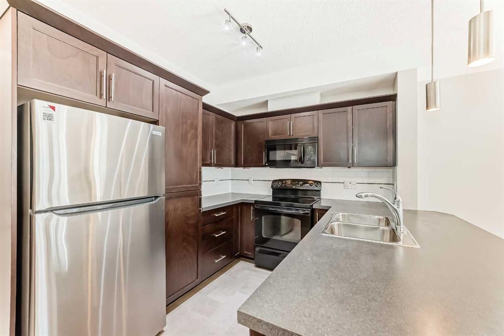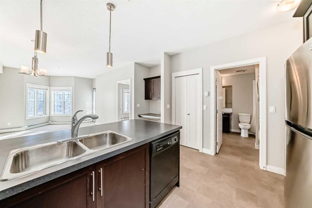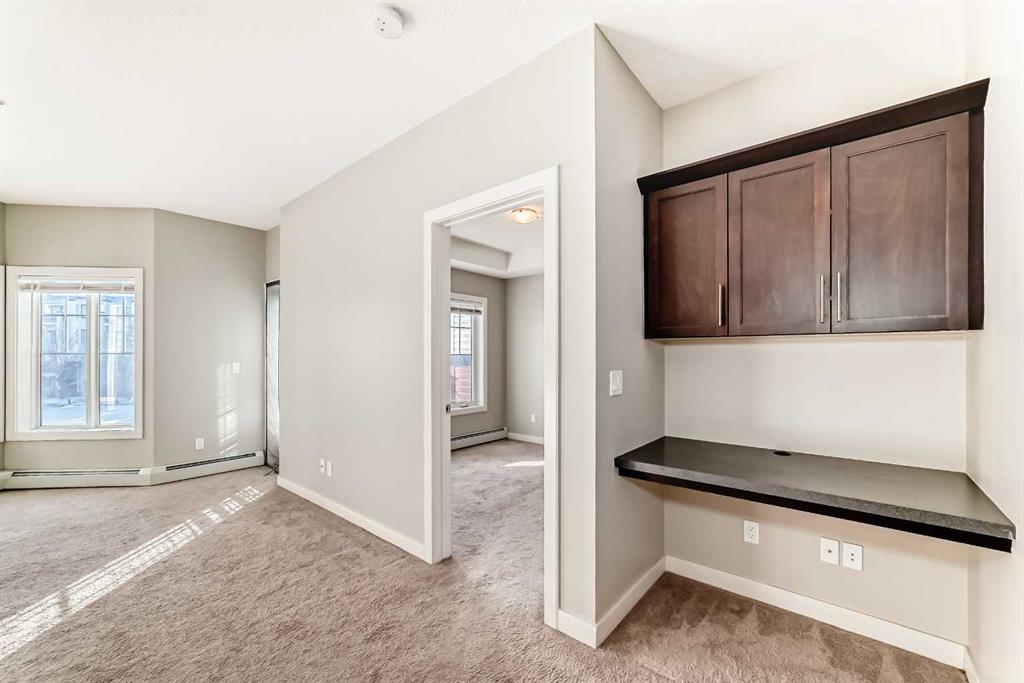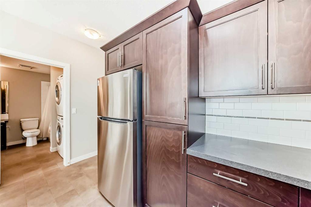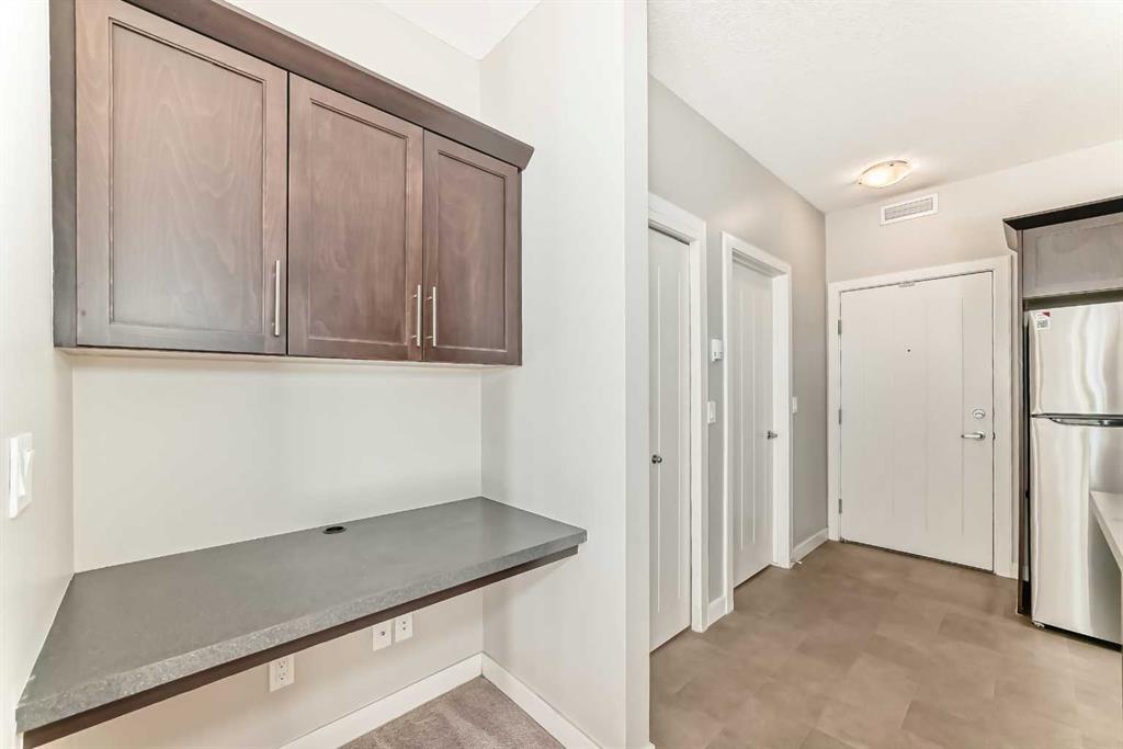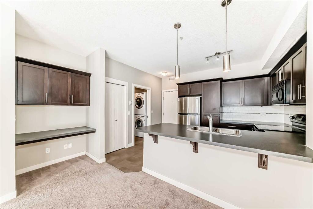 Located in the sought-after Red Haus complex in Royal Oak, this well-appointed one-bedroom condo offers comfortable, low-maintenance living in a highly convenient NW Calgary location. With easy access to shopping, dining, schools, the Rocky Ridge YMCA, C-Train service, and major roadways including Stoney Trail, everything you need is close at hand. Set on the second level, this open-concept home overlooks the attractively landscaped inner courtyard and features a private balcony with a natural gas hookup, perfect for outdoor cooking or relaxing. The kitchen is thoughtfully designed with stainless steel appliances (brand new fridge), generous cabinet and counter space, and a breakfast bar that connects effortlessly to the living area, creating a welcoming space for both everyday living and entertaining. A built-in desk area adds functionality and works perfectly as a home office or study nook. The bedroom is spacious and includes a walk-through closet that leads directly to the four-piece bathroom, where the in-suite washer and dryer are conveniently located. The unit also comes complete with titled underground parking, a titled storage locker, bike storage, and ample visitor parking. Residents enjoy access to shared amenities housed in the central clubhouse, including a fitness centre, a multi-purpose meeting room with kitchen facilities, and an outdoor patio area. This is a great opportunity to own in a well-run condo complex within one of NW Calgary’s most desirable communities.