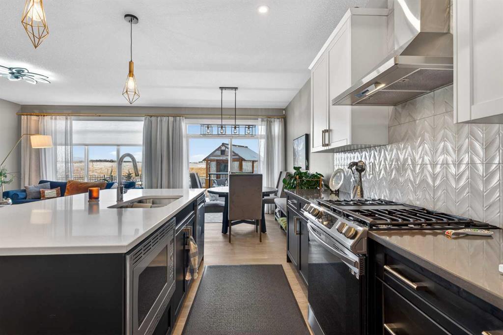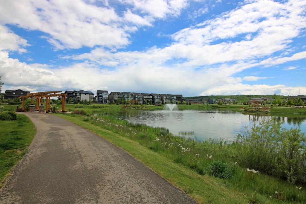 Backing onto a greenbelt & future school site is where you’ll find this truly wonderful home in Cochrane’s popular Sunset Ridge neighbourhood, tucked away on this quiet crescent within walking distance to community playgrounds & parks. Original owners of this Douglas Homes’ two storey, which enjoys engineered hardwood floors & solar panels, total of 3 bedrooms + bonus room, stylish designer kitchen with quartz counters & beautifully landscaped backyard with winding gardens & greenhouse. Bathed in warm natural light, you’ll love the bright & inviting feel of the main floor with its 9ft ceilings & expanse of windows, gracious living room with sleek contemporary fireplace, open concept dining room & outstanding custom kitchen with walk-in pantry, large centre island & stainless steel appliances which includes a Samsung dual-fuel gas range/electric convection oven. Upstairs there are 3 lovely bedrooms & 2 full bathrooms…highlighted by the owner’s retreat with great-sized walk-in closet, views of the greenbelt & soothing soaker tub ensuite with barn door, quartz-topped double vanities & separate shower. Away from the bedrooms is the terrific air-conditioned bonus room with vaulted ceilings…the perfect space to unwind or relax with the family. The unspoiled lower level – with separate side entrance, has roughed-in plumbing for another bathroom & large windows, & offers fantastic potential for future living space. Additional features include the 2nd floor laundry room with Whirlpool washer & dryer, built-in bench in the foyer, roughed-in for radon detector, finished garage with wall-slats, Tesla solar panel system with battery back-up & the piece-de-resistance is the dream backyard oasis complete with deck & stone patio, ornamental pond & fountain, low-maintenance landscaping & greenhouse…which would also make a great place for your hot tub! Leisurely stroll to a playground & the tranquil 6 acre freshwater pond surrounded by winding trails & gazebos, just minutes to the K-8 RanchView School & St Timothy Junior/Senior High, shopping at The Trading Post & quick easy access to downtown Cochrane.