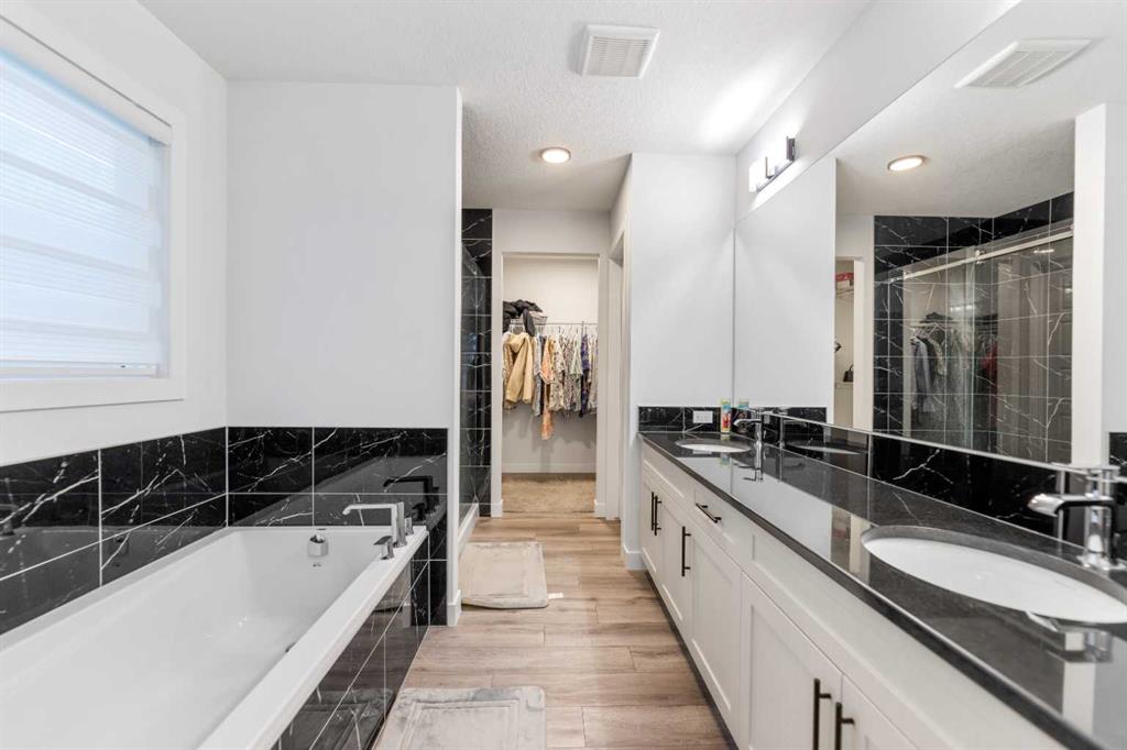 Upstairs, you’ll find four well-sized bedrooms, a bonus room area, upper-floor laundry, and a luxurious primary retreat featuring a 5-piece ensuite and a large walk-in closet. The garage boasts extra-high ceilings, offering excellent storage potential.