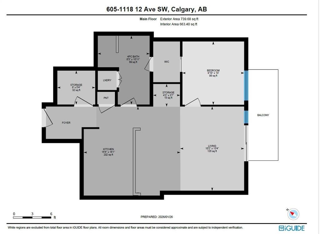 An efficient open-concept layout seamlessly connects the kitchen, dining, and living areas. The U-shaped kitchen is equipped with a gas cooktop, oven, microwave hood fan, refrigerator, dishwasher, tiled backsplash, ample cabinetry, and a breakfast bar island. Sliding doors from the living room open onto a generously sized balcony. floor-to-ceiling windows complete the bright bedroom and living room. The den/storage provides excellent flexibility to set up an office.