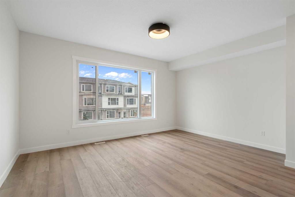 **END UNIT FOR SALE** Brand-new modern 3-storey end unit townhouse in the desirable Saddlepeace (Saddleridge) community. Just a 5-minute walk to Gobind Sarvar High Shool, minutes from major roadways including Metis Trail and Stoney Trail, and only a 5-minute drive to the Calgary International Airport, this home offers exceptional accessibility to work, travel, schools, shopping plazas, and Gurdwaras. Featuring a bright open-concept design with 9-foot ceilings and durable luxury vinyl plank flooring throughout, the main level showcases a stunning kitchen with quartz countertops, stainless steel appliances, a gas stove, and ample cabinetry, ideal for everyday living and entertaining. The open living and dining space flows to a private balcony, perfect for relaxing or hosting gatherings. This versatile layout includes 4 bedrooms and 3.5 bathrooms. The upper floor boasts a spacious primary suite with a walk-in closet and ensuite, plus two additional bedrooms, a full bath, and convenient upstairs laundry. The entry-level bedroom features its own private entrance, ensuite, and roughed-in laundry, making it perfect for extended family, guests, or rental income potential. Completing this exceptional home is a single attached garage. This townhouse is a must-see for families and investors alike. **BUILDER HAS ONE INTERIOR UNIT AVAILABLE, PRICED AT $499,900**
