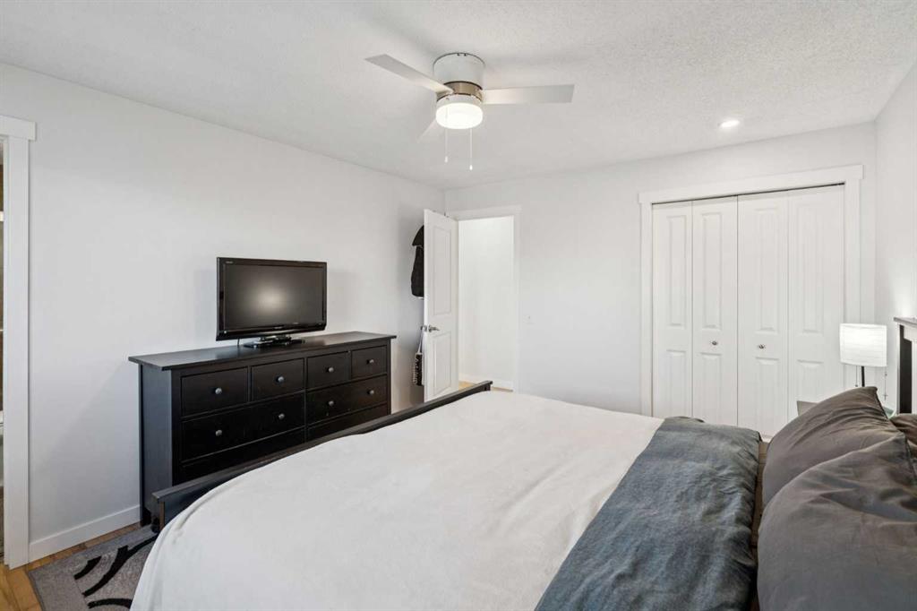 The main floor hosts three bedrooms, including the primary retreat with a 3-piece ensuite and a tiled shower in the main bathroom. A ceiling fan and thoughtful finishes add comfort throughout.