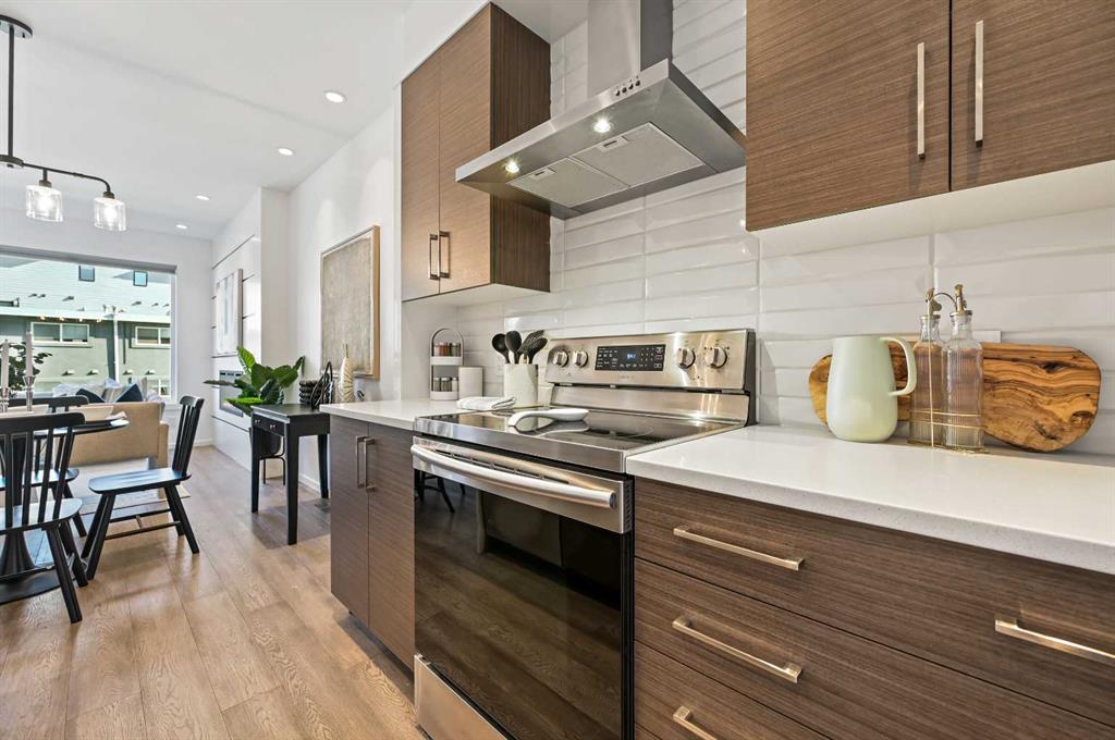 ATTENTION INVESTORS/PROFESSIONALS/DOG OWNERS/UPGRADERS/FIRST TIME HOME BUYERS - Stylish. Spacious. Sophisticated. **TURN KEY & MOVE IN READY KILLARNEY TOWNHOME WITH PRIVATE YARD** This exceptionally well-appointed 3-bedroom, 3.5-bath townhome offers over 1,600 sq ft of thoughtfully designed living space in one of Calgary’s most desirable inner-city communities. Each bedroom features its own private ensuite, providing a perfect blend of luxury and convenience for families, professionals, or guests. A bonus powder room on the main level adds everyday functionality. From the moment you step inside, the open-concept layout, soaring 9’ flat ceilings, and oversized interior doors create a sense of airiness and modern elegance. The modern kitchen features sleek modern cabinetry, waterfall quartz countertops, white oak engineered hardwood flooring, stainless steel appliances, and a glossy tile backsplash.