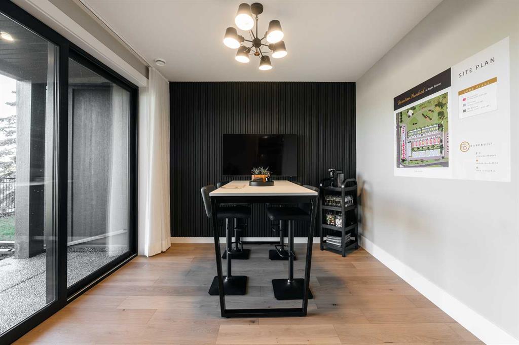 Nestled in the heart of Seventeen Hundred at Aspen Estates, this luxurious townhome with The Dalton floorplan (a design finalist with the 2025 BILD Calgary Awards) has been carefully crafted by RareBuilt Homes & offers over 2,700 sq ft of refined living space, complete with 3 bedrooms, amazing mountain views and exceptional design throughout. The airy main level with lofty 9’ ceilings, showcases luxury vinyl plank flooring, and expansive high end European triple glazed tilt & turn windows that flood the home with natural light. A spacious great room centers around a striking feature fireplace and opens to a large balcony with a louvered roof—perfect for year round enjoyment. A dedicated office space provides an ideal setting for work from home days. The beautifully appointed kitchen features quartz countertops, a generous island with eating bar, full height custom cabinetry, a walk in pantry, and a premium appliance package. The dining area comfortably accommodates gatherings with family and friends. A stylish 2 piece powder room completes the main level. Upstairs, the second level hosts three well proportioned bedrooms, a 4 piece bath, and convenient laundry facilities. The serene primary retreat with soaring vaulted ceiling includes a spacious walk in closet and a private 5 piece ensuite with in floor heat, dual sinks, a freestanding soaker tub, and a separate shower. The lower level offers impressive versatility with a large flex room and direct access to a walk out patio—ideal for a media room, fitness area, or family space. This level also includes a mudroom connecting to the fully finished & painted oversized double attached garage that’s EV charger ready. Additional highlights include central air conditioning, six solar panels, and concrete demising walls for enhanced privacy and noise reduction. Set within an exclusive complex spanning nearly 9 acres—5.5 of which are dedicated to green space—this residence delivers an unparalleled standard of comfort, quality, and sophisticated living.