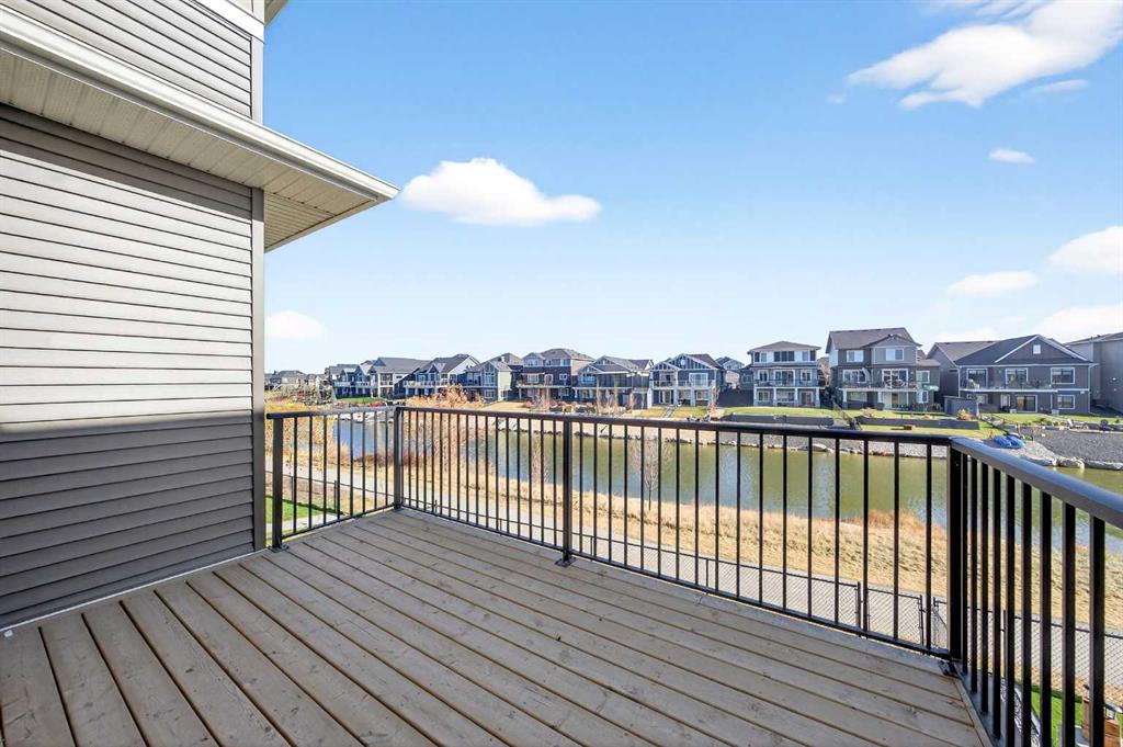 Step inside the inviting front porch to the main level with 9-ft ceilings and vinyl plank flooring throughout. To the left is a Den, ideal for home office or quiet retreat. The heart of the home unfolds with an East-facing open floor plan, where three large windows frame the walking path and canal, flooding the space with light. The well-appointed white Kitchen features a centre island, quartz countertops, ample cabinetry and extra storage, stainless steel appliances and a walk-through pantry. The large Living Room with built-in media station and the spacious Dining Area that are great for entertaining with friends and family. From the Dining Room via a 3-panel sliding patio door to a deck, complete with gas hookup and beautiful canal views. Imagine sitting out on the deck to enjoy your morning coffee with a nice view of the Canal to start your day.