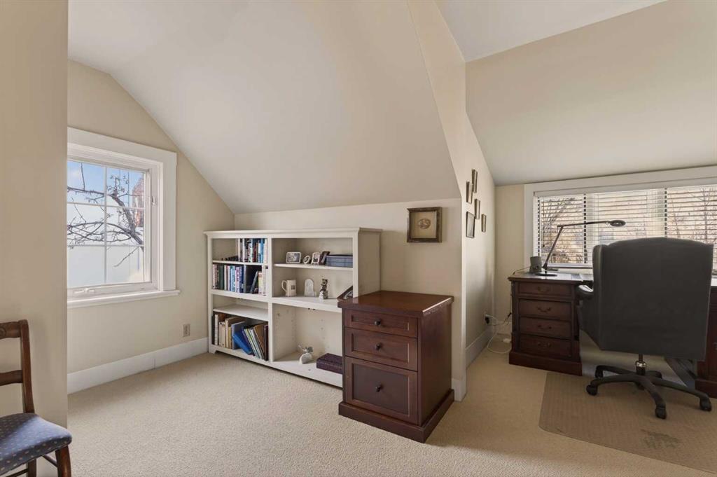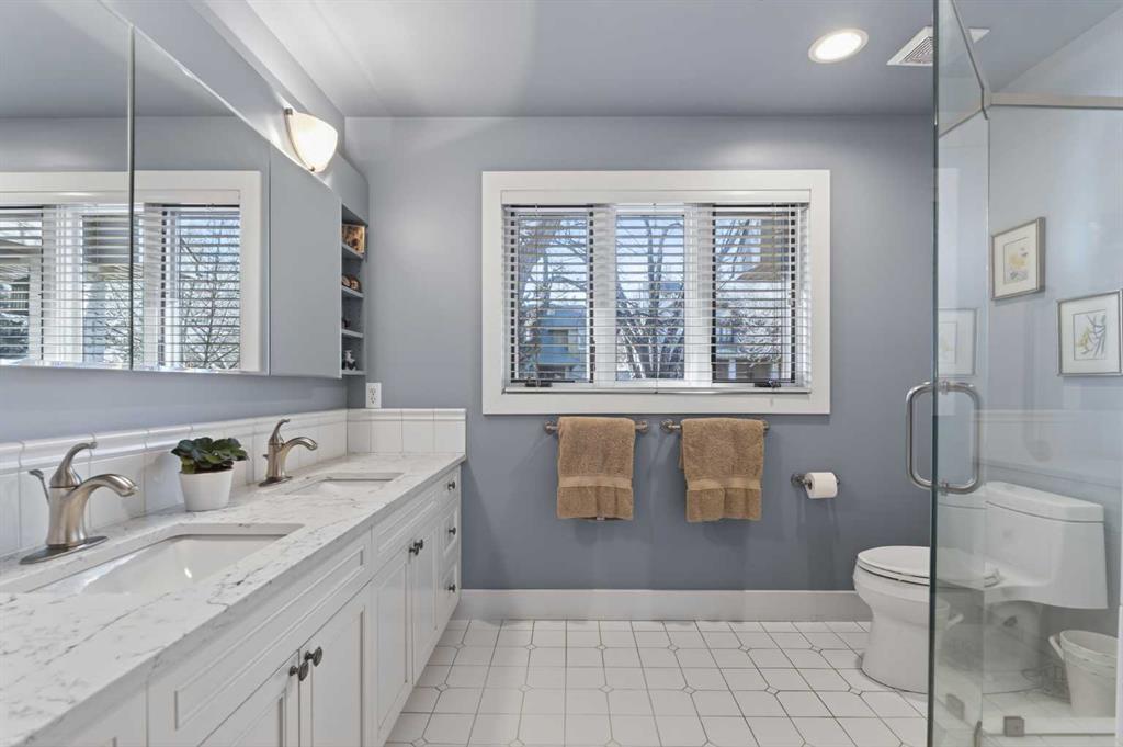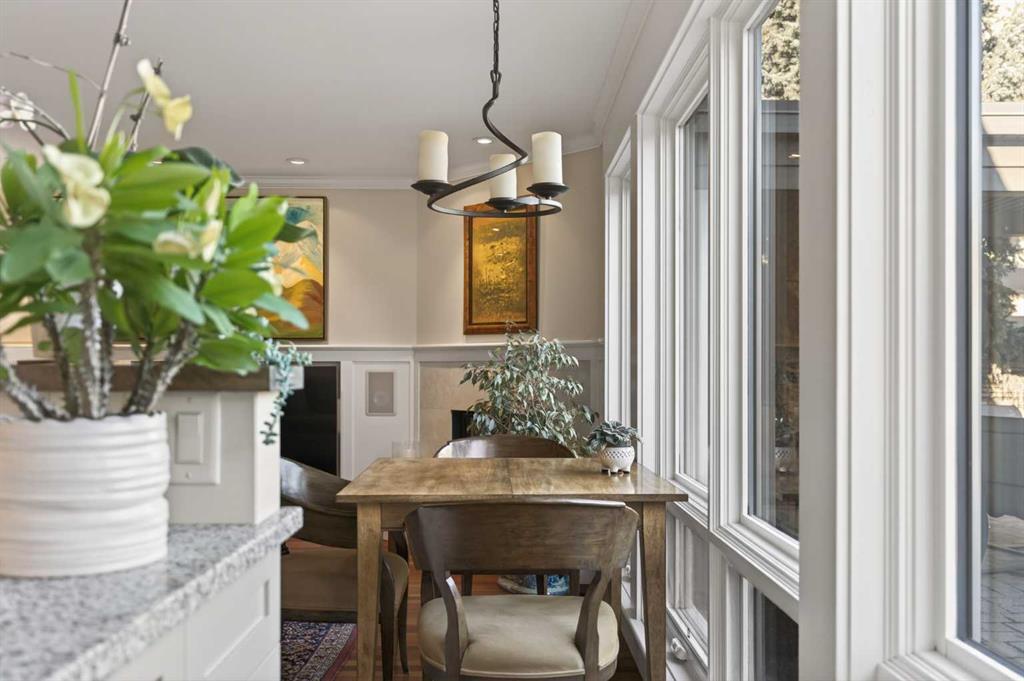 Inside, rich hardwood floors span the main level, where natural light fills the formal living and dining rooms, anchored by a beautiful fireplace that creates an inviting setting for entertaining. The spacious family room, complete with a second gas fireplace, opens seamlessly to the kitchen, featuring stainless steel appliances and functional flow for everyday living. A rare and highly desirable main floor primary retreat offers comfort and privacy, complete with its own ensuite. Upstairs, you will find two additional bedrooms with a shared bath, ideal for family or guests. The fully developed lower level expands the living space with yet another fireplace, a large games and media room, an additional bedroom or optional gym, its own ensuite, and ample storage throughout. Practicality meets charm with a mudroom that leads to a covered breezeway, connecting to the double detached garage and dedicated workshop, perfect for hobbyists or additional storage needs. Surrounded by beautifully curated hard and soft landscaping, the front and backyard spaces offer both serenity and functionality, an ideal setting for outdoor entertaining or family enjoyment. A rare opportunity to own a character home of this scale and condition in one of Calgary’s most prestigious inner city communities.
