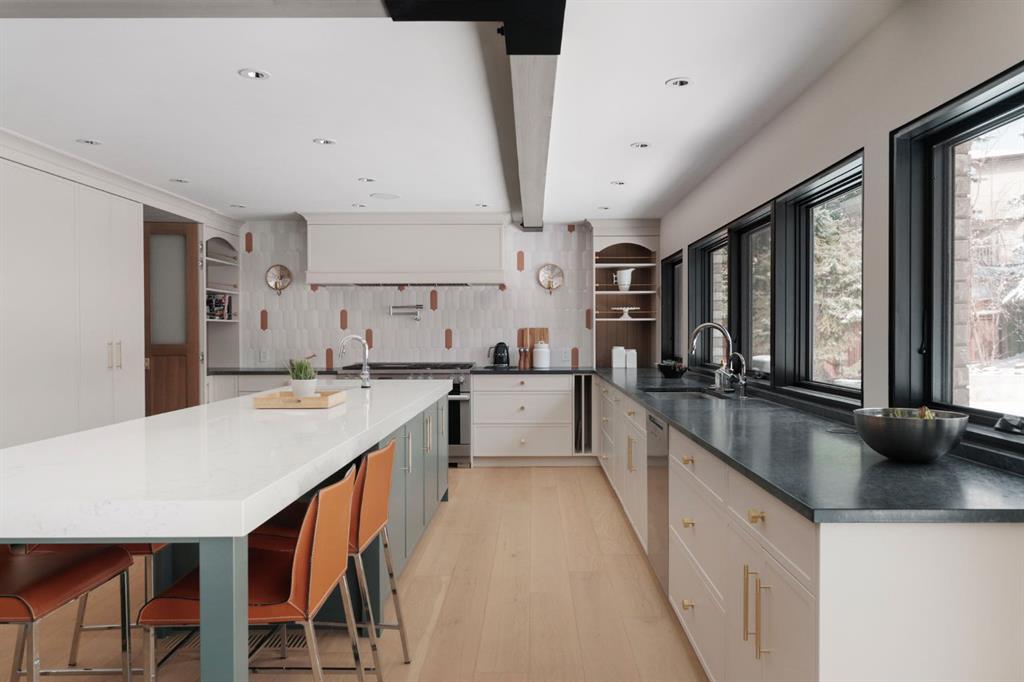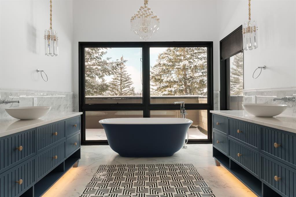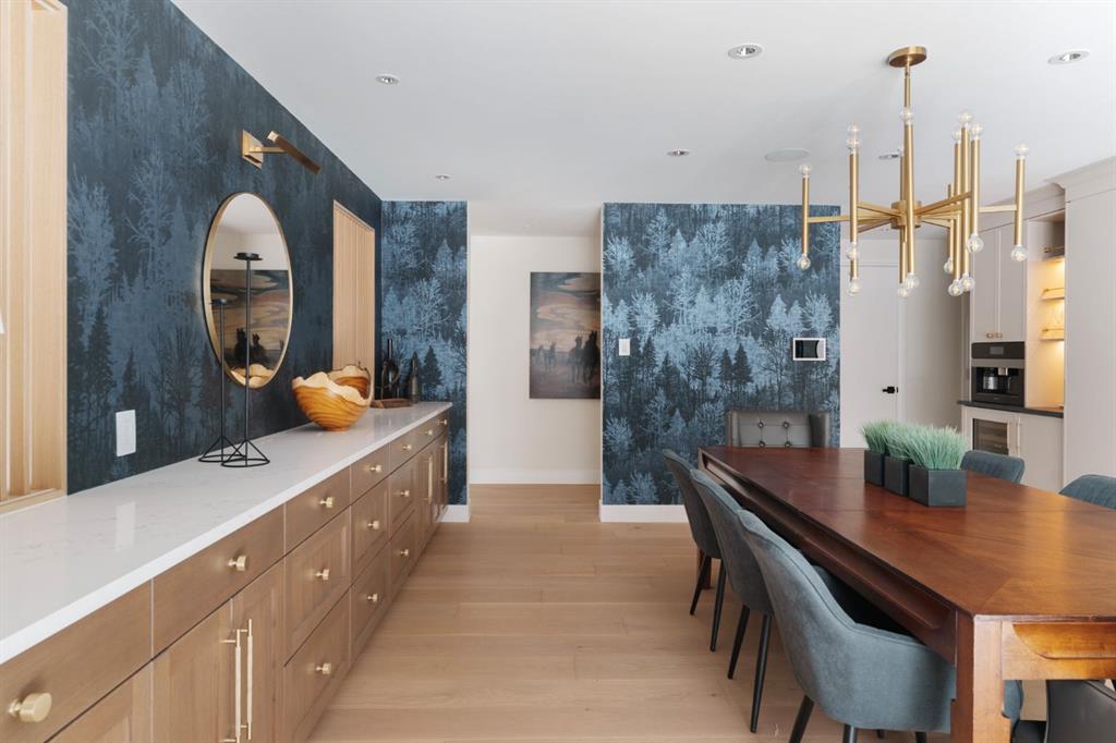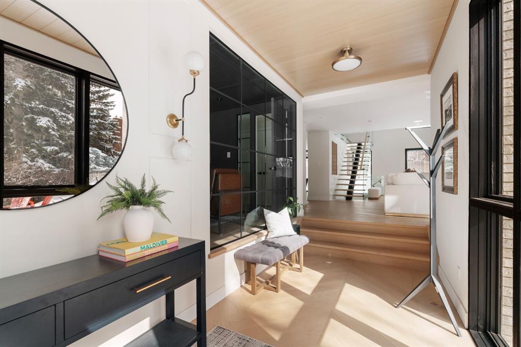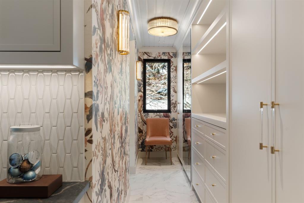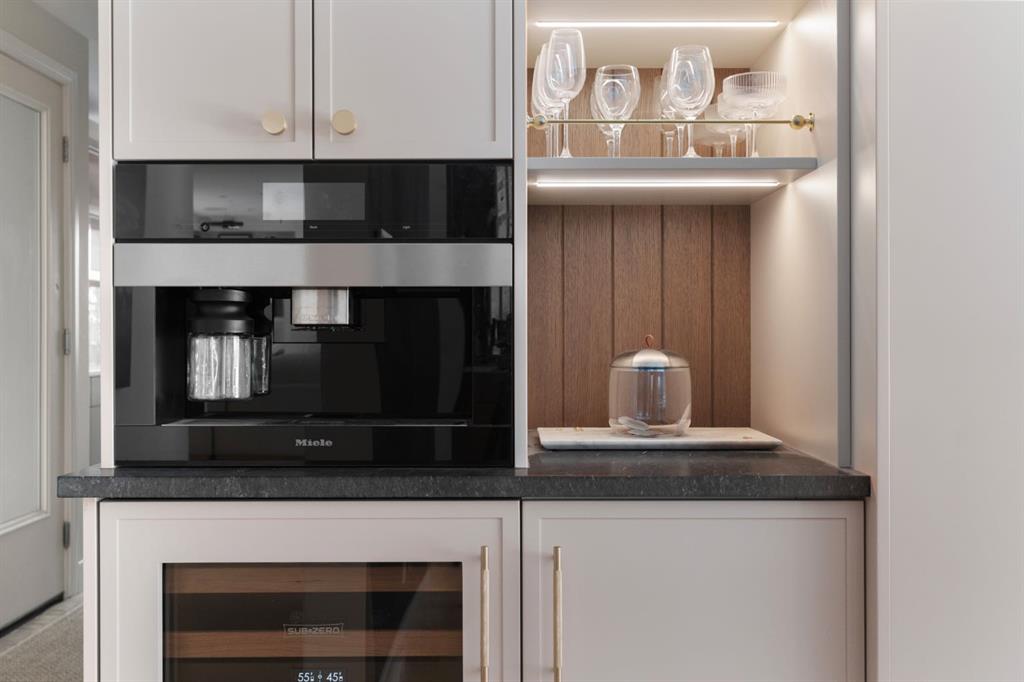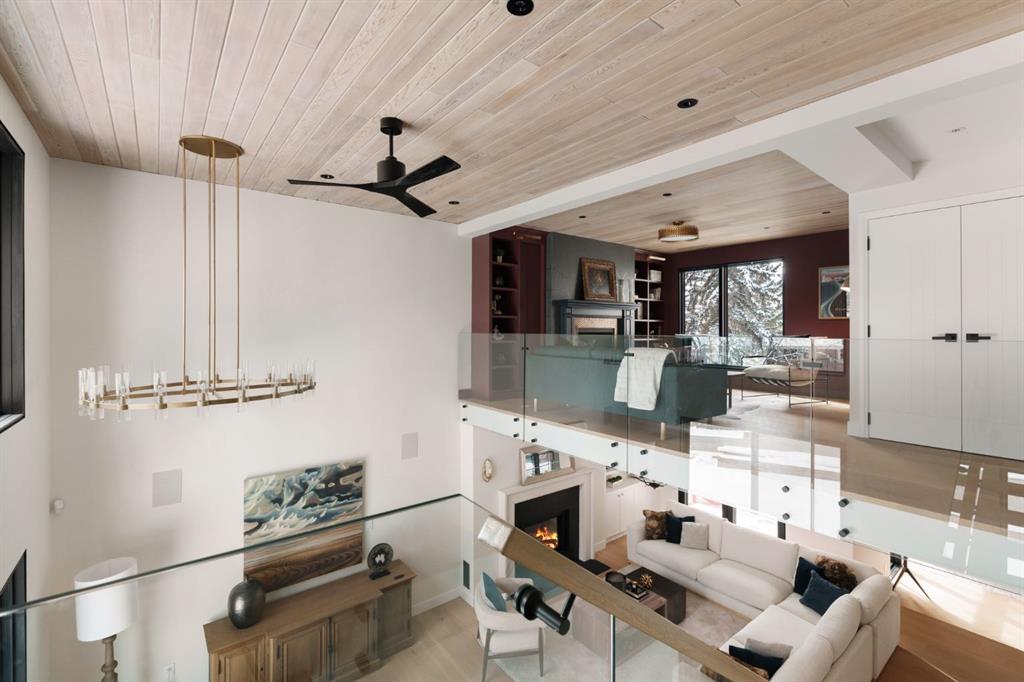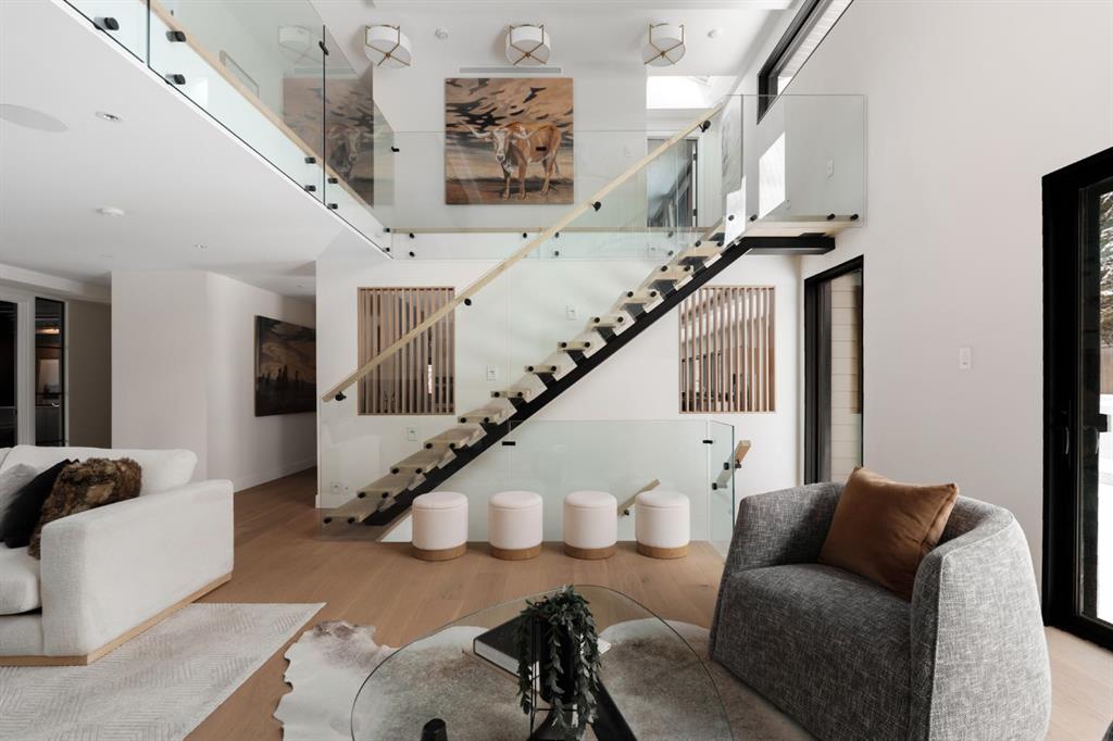 A rare offering in the heart of Pump Hill, this completely reimagined residence blends timeless design with modern luxury on an expansive 0.27-acre lot, tucked away on a private cul-de-sac along a quiet, tree-lined street. Taken down to the studs and meticulously rebuilt, this home offers over 5,000 sq.ft. of refined living space, showcasing a sophisticated West Coast aesthetic with an emphasis on light, flow, and exceptional craftsmanship. The main level is both elegant and highly functional, featuring wide-plank hardwood flooring, curated designer lighting, custom millwork, and thoughtfully selected wall treatments throughout. A stunning living room anchored by a gas fireplace flows seamlessly into the chef-inspired kitchen, complete with top-of-the-line appliances, including a built-in Miele coffee system, bespoke cabinetry, and an oversized island designed for gathering. The adjoining dining area overlooks the expansive backyard, creating the perfect backdrop for both everyday living and elevated entertaining. A standout feature of the main floor is the beautifully designed private office, enveloped in rich, moody tones and custom detailing, an inspiring space that evokes focus, creativity, and quiet sophistication. A well-designed mudroom with a dedicated dog wash station connects effortlessly to the attached heated garage, an ideal blend of luxury and practicality. Upstairs, a dramatic open-to-below family room with a second fireplace offers a warm and inviting retreat. Two generously sized bedrooms each feature their own walk-in closets and beautifully appointed ensuites. The primary suite is a true sanctuary, complete with a private balcony and a spa-inspired ensuite featuring premium finishes and a heated towel warmer. The fully developed lower level is designed for modern living, featuring a professional-grade home gym and a custom-built, sound-insulated room perfectly suited professional-grade Zoom and virtual meetings, offering privacy, clarity, and an elevated at-home experience. A sleek wet bar completes this level, making it ideal for both entertaining and everyday enjoyment. The outdoor space is equally impressive, with landscaping to be completed by the current owners, presenting a rare opportunity to enjoy a fully finished, turnkey property in one of Calgary’s most prestigious communities. An exceptional home where design, comfort, and location converge.