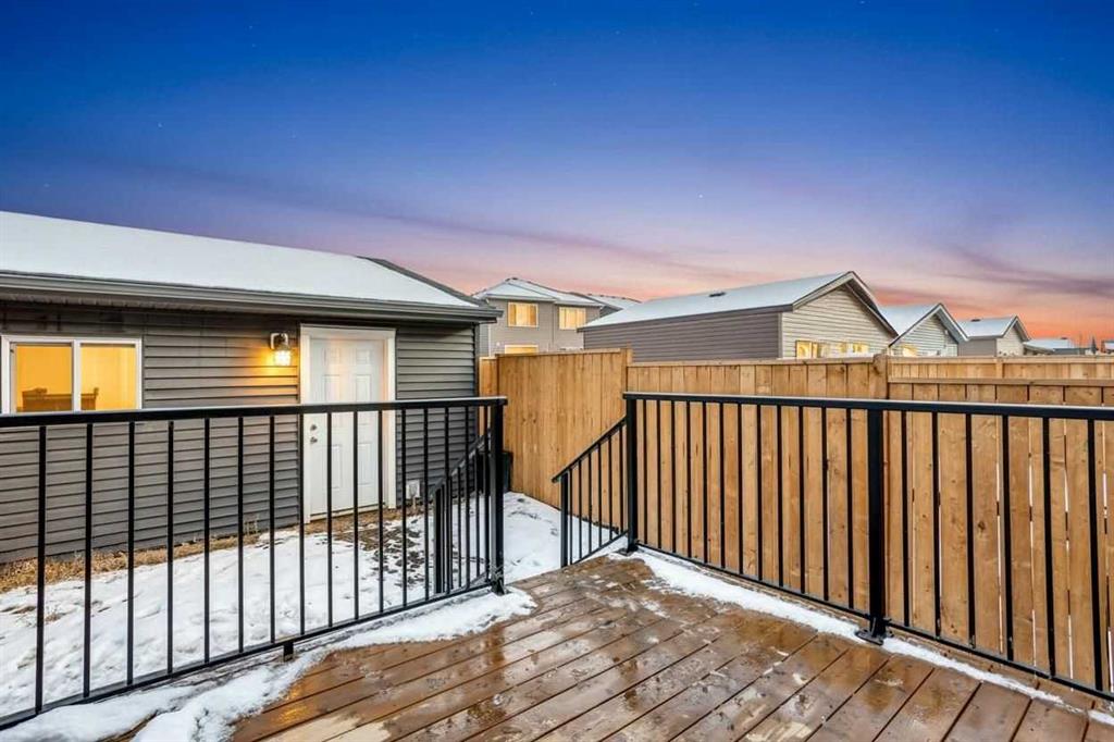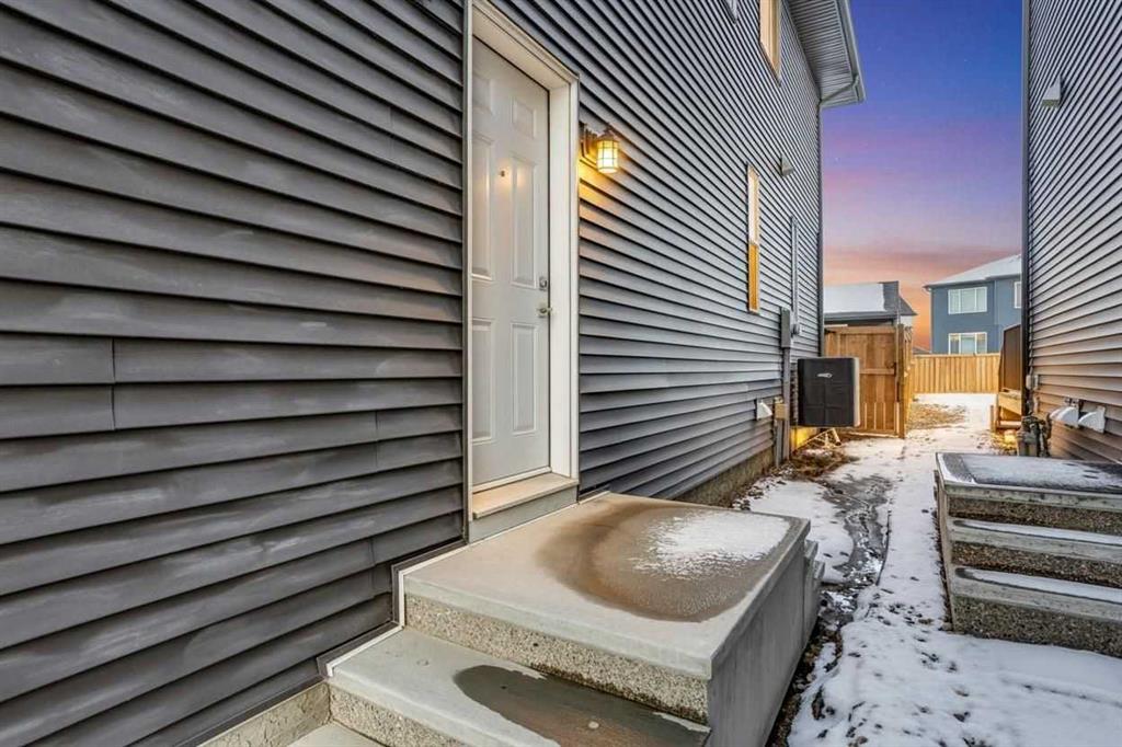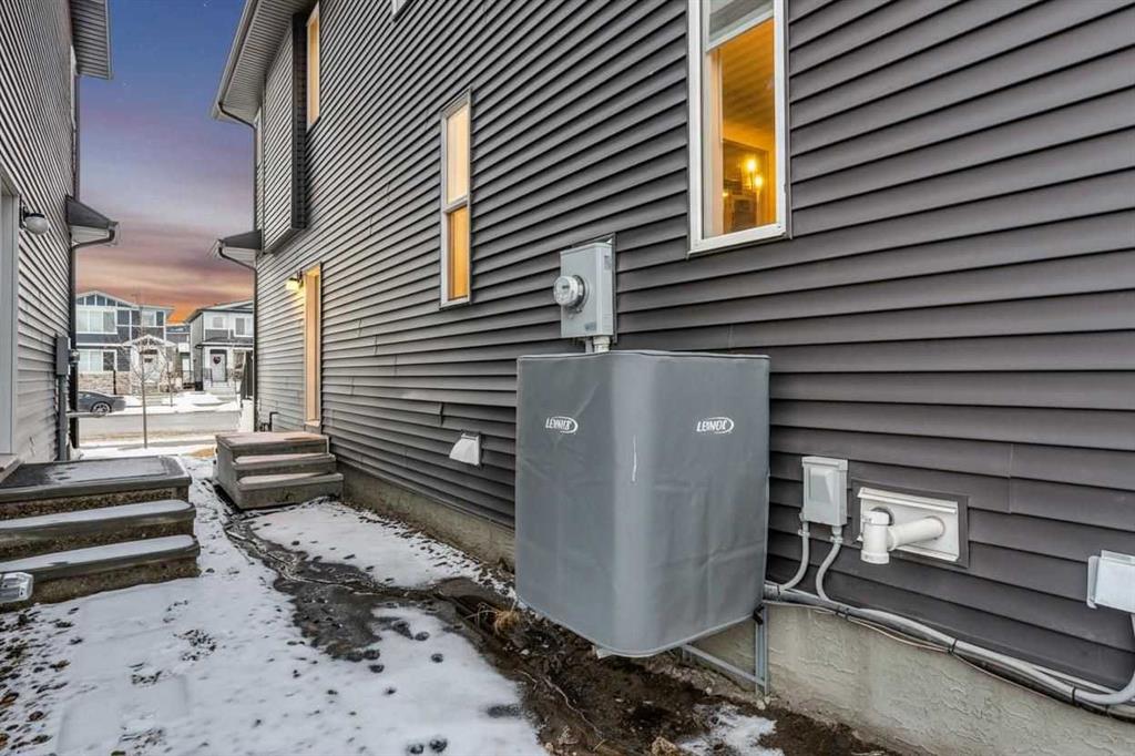 Welcome to the Lola by Morrison Homes, a thoughtfully upgraded, move-in-ready duplex that delivers space, comfort, and long-term value in one of South Calgary’s most desirable newer communities. With 4 bedrooms, 3.5 bathrooms, a fully finished basement with a side entrance, air conditioning, and a double detached garage, this home offers more features—and more flexibility—than anything else currently available nearby. The main level is anchored by a gourmet kitchen designed for both everyday living and entertaining. Granite countertops, stainless steel appliances with a gas range, and a functional layout create a space that’s as practical as it is stylish. Large windows and an open-concept design fill the home with natural light, while modern finishes keep everything feeling clean, current, and timeless. Upstairs, you’ll find three generously sized bedrooms, each with walk-in closets. The primary bedroom offers a private ensuite with an upgraded shower, while the additional bedrooms share a well-appointed full bath, making the upper level ideal for growing families and home-office flexibility. Upgraded closet organizers provide premium storage solutions in the primary and central bedroom. The fully finished basement adds even more versatility, featuring one bedroom, one full bathroom, a large living space, and a separate side entrance—perfect for a family movie room, visiting guests, or future income potential. Outside, enjoy a large rear deck, a fully fenced backyard, and the convenience of a double detached garage—everything you need for summer entertaining, pets, and secure parking. Central air conditioning ensures year-round comfort, rounding out a home that truly checks every box. This is not just another duplex; this is a fully upgraded, thoughtfully designed home that stands out in today’s market. If you’ve been waiting for a property that offers more space, more features, and more value than the competition, this is the one.