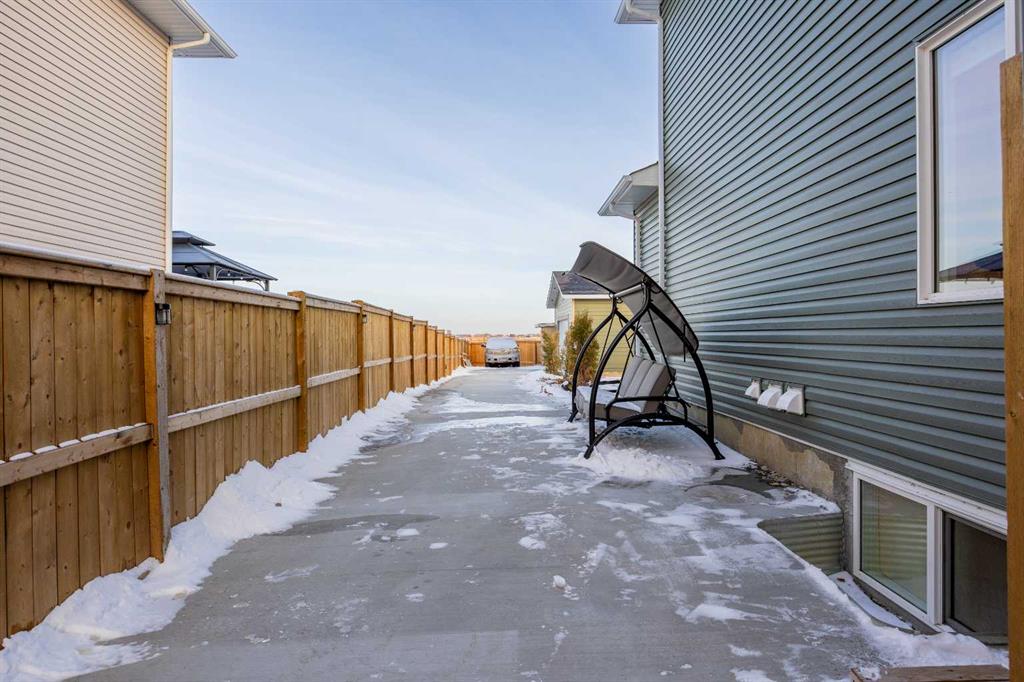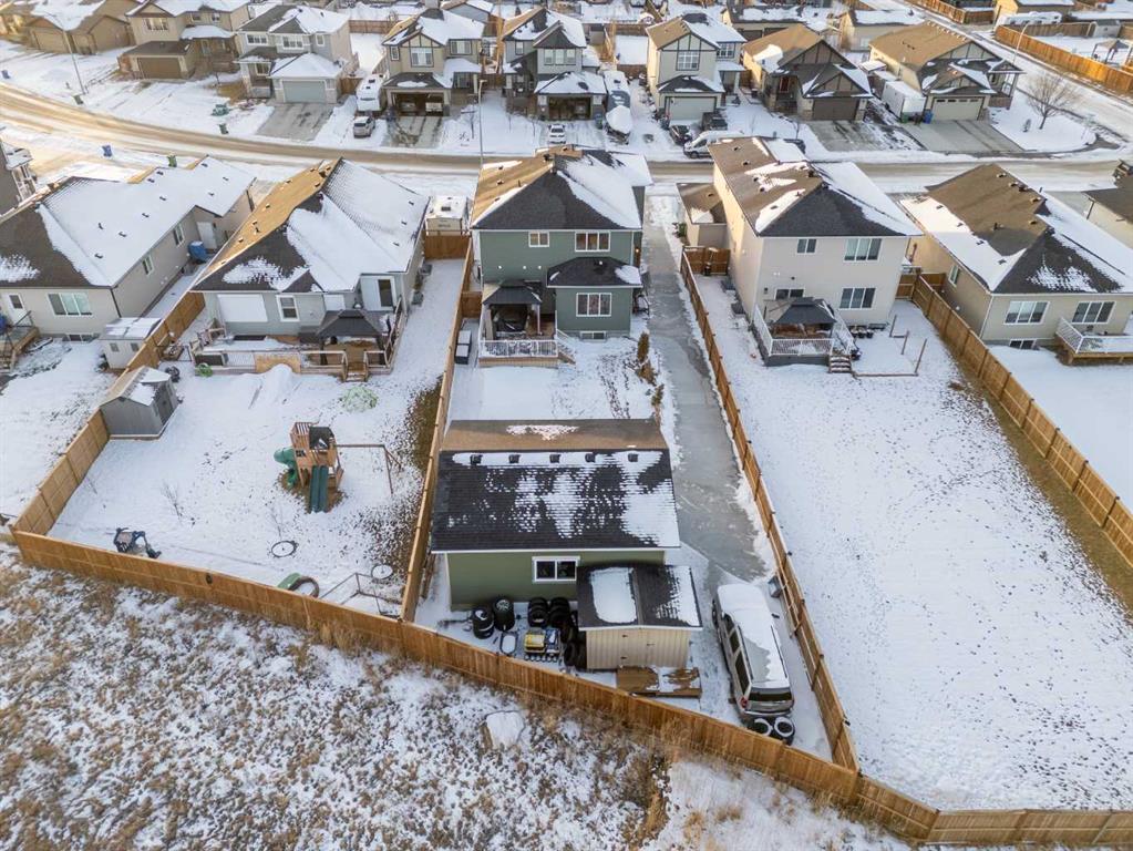 Are you looking for the perfect home that feels like an acreage, but is located right in town? This is it. Set on a large 0.2 acre lot, this customized home offers exceptional space, thoughtful upgrades, a front attached garage, and a 180-foot concrete driveway leading to an impressive detached SHOP — a rare combination in an in-town setting. This 5 BEDROOM, 4.5 BATHROOM home features a highly desirable layout, including DUEL PRIMARY SUITES ON UPPER LEVEL each with own ensuite, for a total of 4 bedrooms up plus bonus room, making it ideal for multi-generational living, extended family, or guests. The main primary ensuite is thoughtfully designed with a spacious 60” shower and a freestanding tub, offering a private retreat. Extra care and expense was made to ensure all areas of the home have matching granite countertops. The kitchen was changed extensively from builder plans to boast more counterspace, extended 40” kitchen cabinetry, and professional-grade appliances. The spacious pantry was also a blueprint change that you won't find anywhere else in this Model. Working from home is a dream in the spacious main floor office with custom cabinetry. The home is also equipped with central air conditioning for year-round comfort. Additional built-ins were added to the base plan to elevate everyday living including custom cabinetry and bench at the garage entry, a built-in TV stand, upgraded laundry shelf and storage, and fully customized walk-in closet organizers. The fully developed basement provides excellent additional living space, perfect for family use, guests, or recreation. Outside, the property truly shines with thoughtfully designed spaces for both privacy and entertaining, including a poured concrete front patio and an oversized rear deck with pergola, ideal for hosting, relaxing or watching the Northern Lights at night and sunrises in the morning. In addition to the detached double garage, the 28’ x 26’ shop with 10’ interior height is built on an 8” concrete pad with curb wall, fully insulated and wired, featuring storage trusses and OSB-sheeted walls, making it ideal for hobbyists, trades, or a home-based business. This is a gorgeous, well-planned home that delivers on layout, upgrades, and functionality, all within a welcoming small-town community, offering the space of an acreage with the convenience of being right in town. Langdon is a growing town with two elementary schools and a new high school. All just a short drive east of Calgary! Come experience space, clean air, and small town feel!