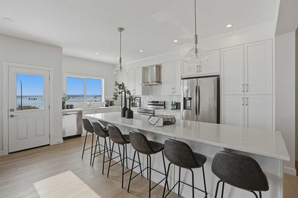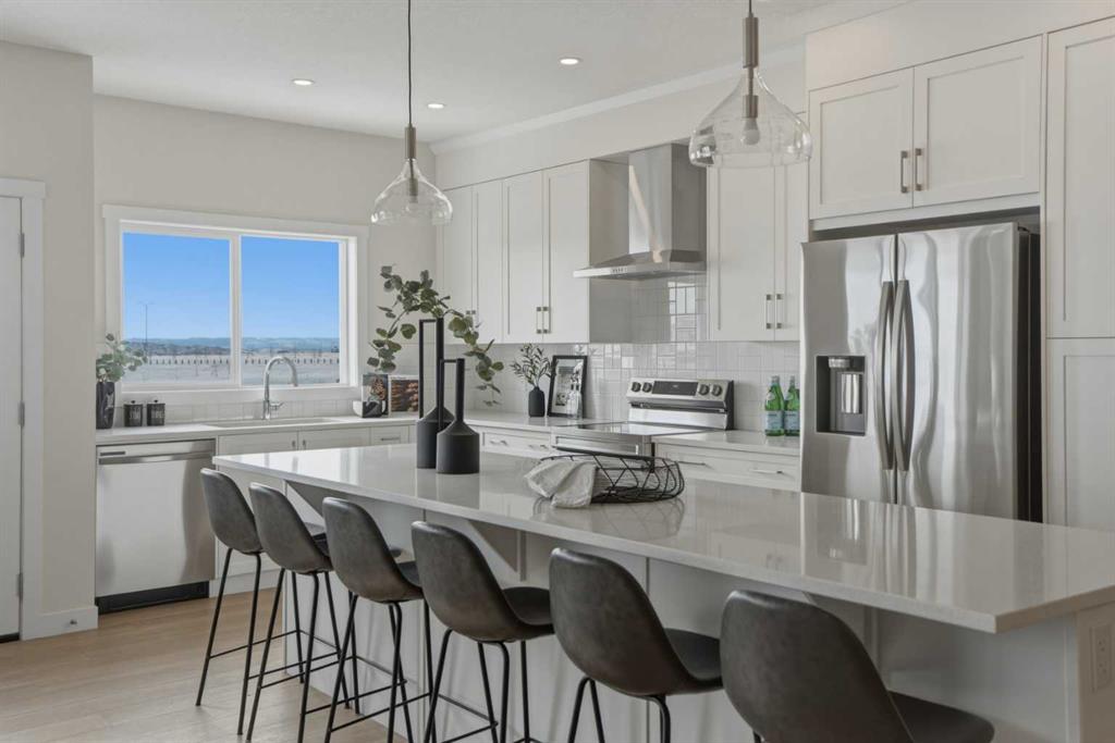 Welcome to the Ezra model by Genesis Builders Group, a move-in ready masterpiece offering 2,533 sq ft of sophisticated living in the vibrant Heartwood community. Designed with architectural intention and upscale finishes throughout, this residence seamlessly blends modern elegance with everyday comfort. The sun-filled main level is framed by expansive windows that bathe the home in natural light, enhancing the airy open-concept layout. At the heart of the home, a chef-inspired kitchen makes a striking statement with quartz countertops, full-height cabinetry, designer pendant and recessed lighting, and an impressive statement island that offers generous seating — perfect for elevated entertaining and effortless daily living. The great room is anchored by a sleek fireplace, creating a warm yet refined focal point. A stylish 2-piece powder room and versatile main-floor flex space complete this thoughtfully curated level. Upstairs, tray ceilings add architectural character to the spacious bonus room, creating an inviting retreat for relaxing evenings. Four well-appointed bedrooms, two elegant full bathrooms, and a conveniently located upper-level laundry room provide exceptional functionality. The primary suite serves as a private sanctuary, featuring a spa-inspired ensuite and walk-in closet designed for both comfort and indulgence. This home is equally impressive in its future potential, offering a separate side entry and basement suite rough-ins (subject to approvals), providing flexibility for multi-generational living or investment opportunities. A BBQ gas line enhances outdoor entertaining, while the double attached garage completes the home’s elevated appeal. Refined, functional, and beautifully finished, this Ezra model delivers luxury living with enduring value — ready to welcome you home. Genesis Builders Group follows the First-Time Home Buyer GST/HST Rebate to eliminate the 5% GST on qualifying new homes (up to $1 million) for qualifying first time home buyers. Hurry and book a showing at this gorgeous brand new Genesis home today!