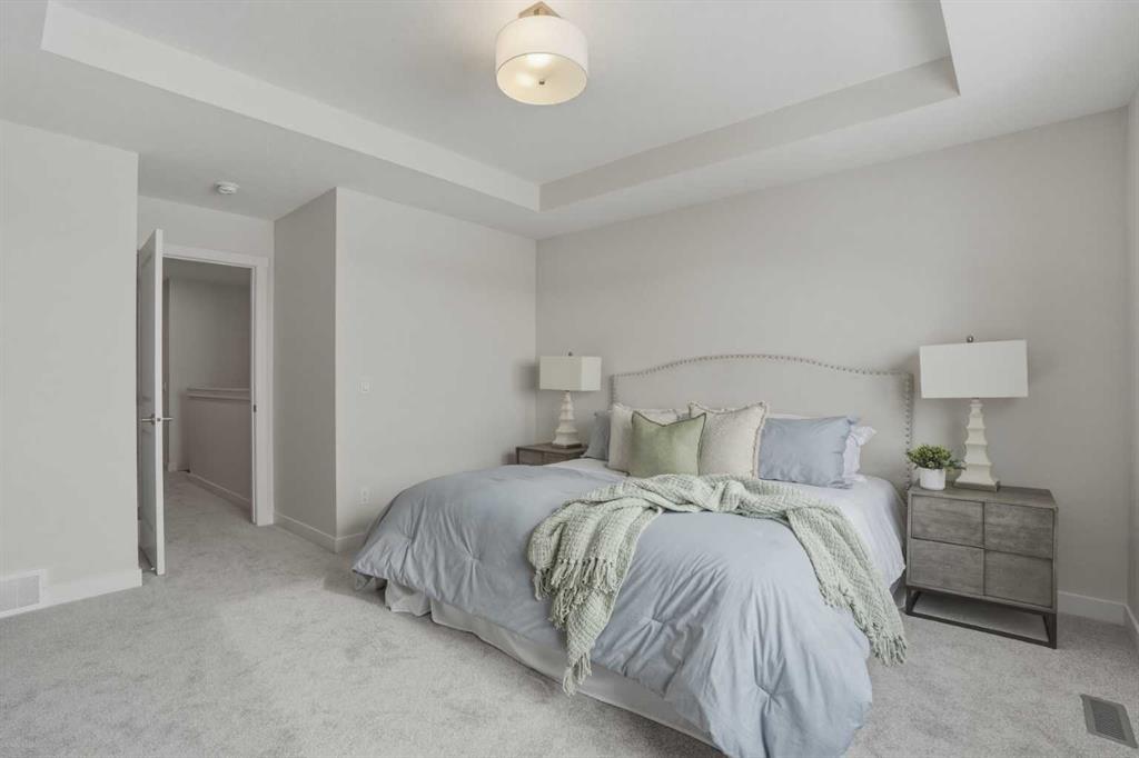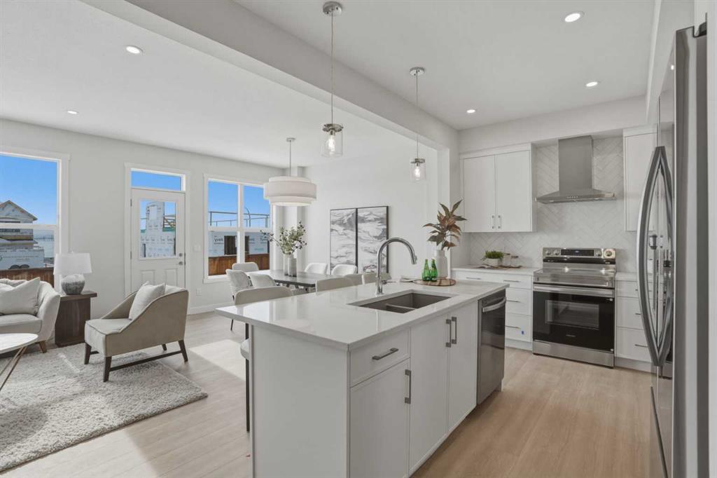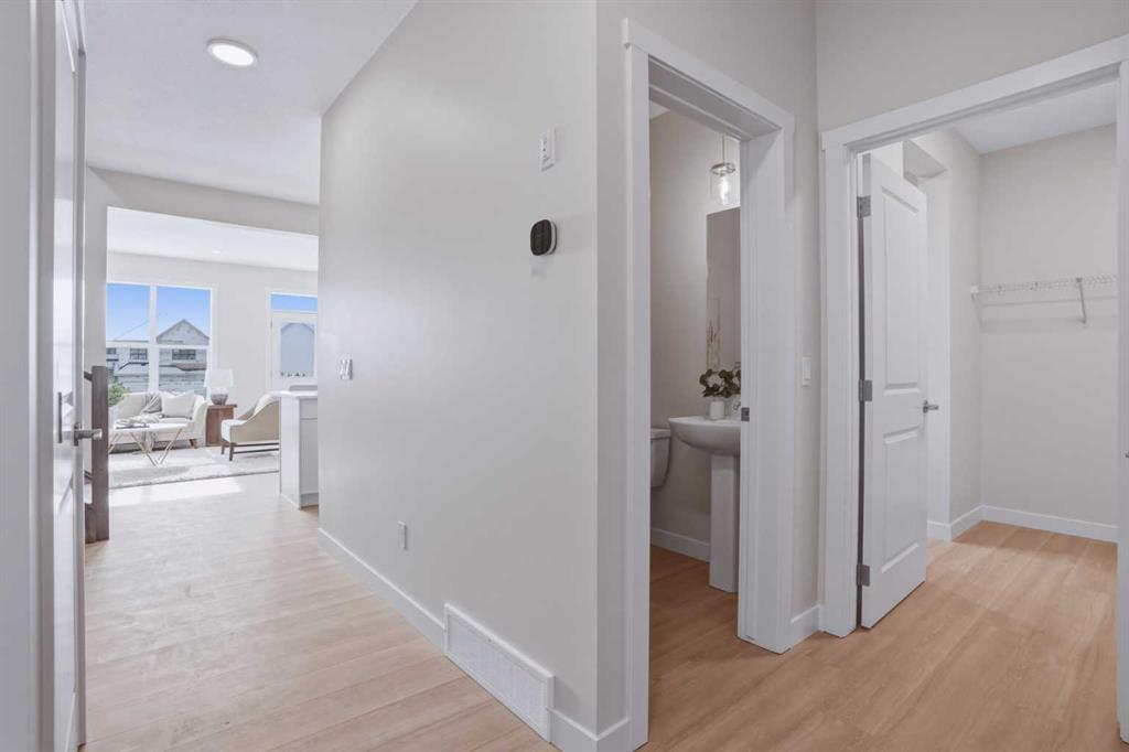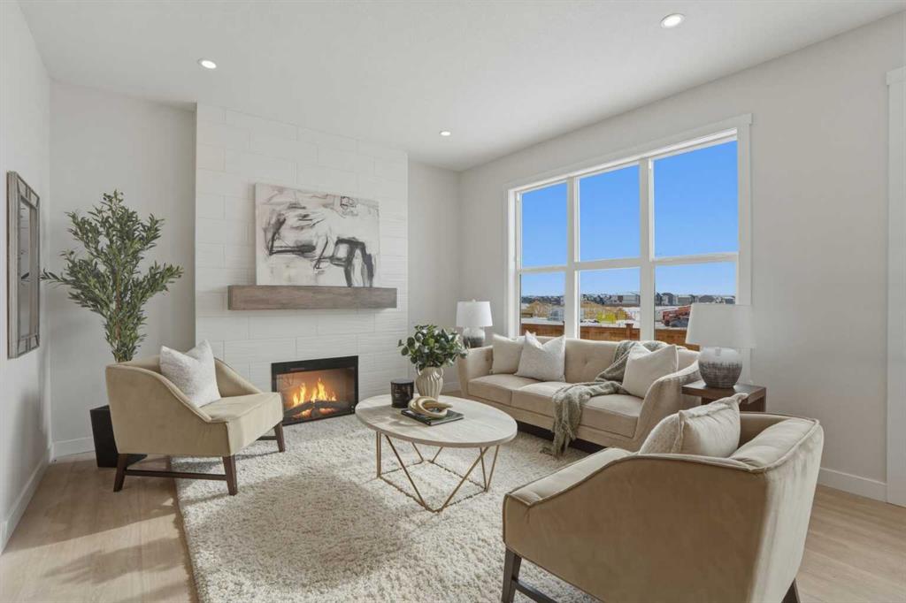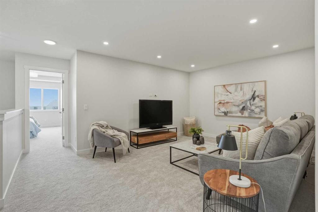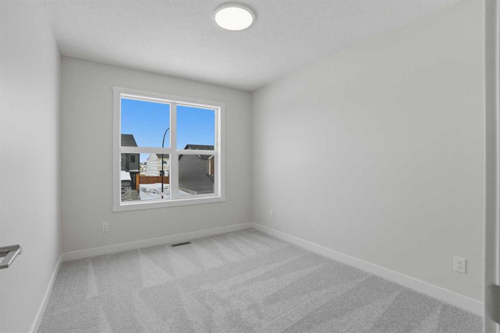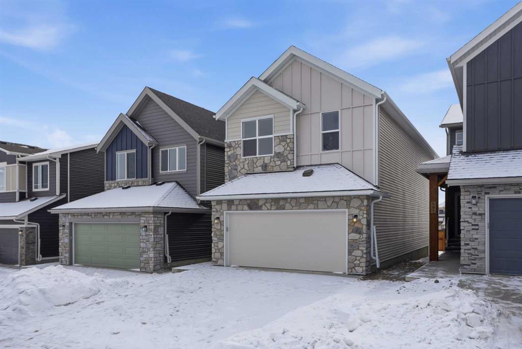 Welcome to the Leo?II model by Genesis Builders Group, a move-in ready, exquisitely designed home in Calgary’s sought-after Heartwood community. Boasting 2,068?sq?ft of living space, this residence combines elegant finishes, thoughtful design, and modern functionality. The sun-drenched main floor features large windows and wide-plank LVP flooring, creating a bright, open ambiance. The chef-inspired kitchen is a showstopper with quartz countertops, full-height cabinetry, a Herringbone backsplash, and a generous island ideal for gatherings. A walkthrough pantry to the mudroom enhances workflow, while a 2-piece powder room completes the main level. Upstairs, the primary bedroom offers a spa-inspired ensuite and walk-in closet for a true private retreat. Bedrooms 2 and 3 share a stylish 4-piece bathroom, perfect for family living, while a spacious upper-level family room provides a cozy and versatile space for movie nights, homework, or relaxing with loved ones. The upper-level laundry adds convenience for busy households, and plush carpeting throughout the bedrooms and family areas enhances comfort. This home also includes a side entry to the basement, providing the opportunity for a future legal suite with city approval, adding flexibility and investment potential. Located near parks, pathways, schools, and planned community amenities, the Leo?II model combines luxury, functionality, and lifestyle in one exceptional home. Genesis Builders Group follows the First-Time Home Buyer GST/HST Rebate to eliminate the 5% GST on qualifying new homes (up to $1 million) for qualifying first time home buyers. Hurry and book a showing at this gorgeous brand new Genesis home today!