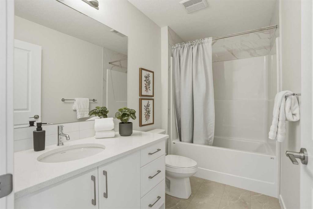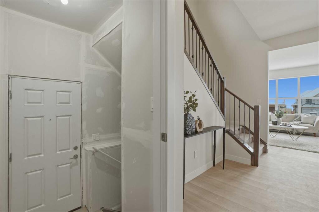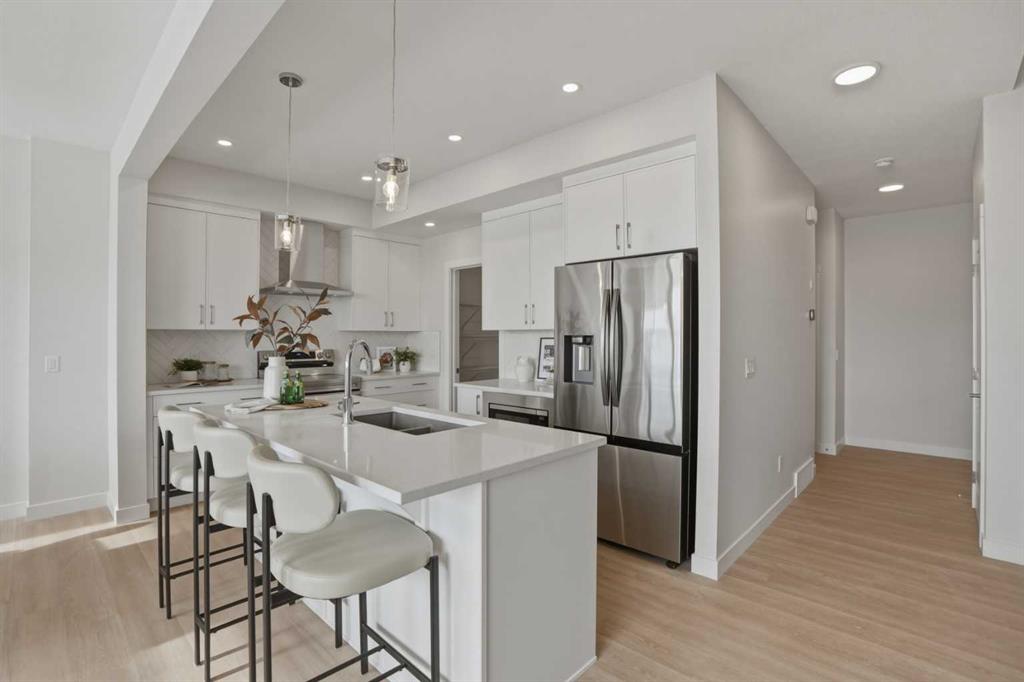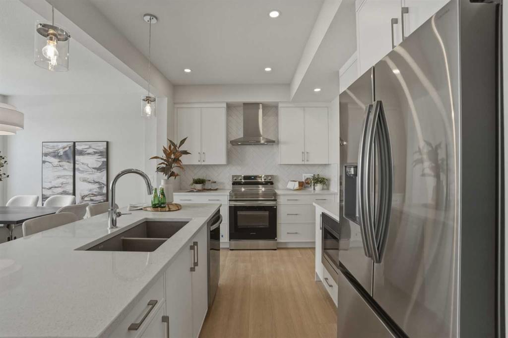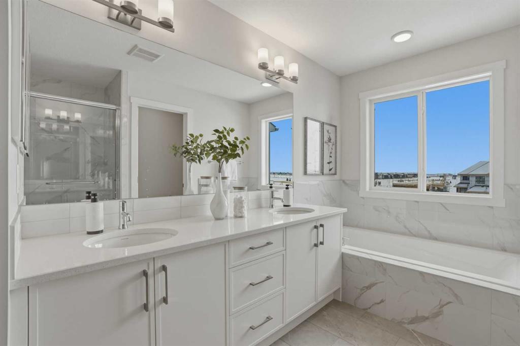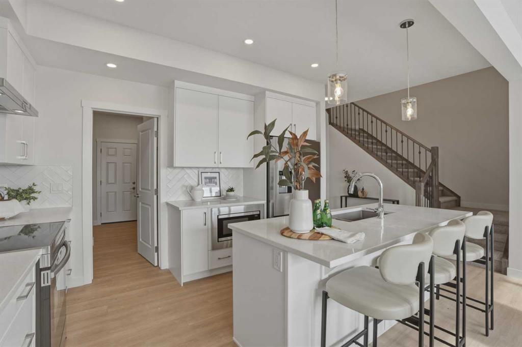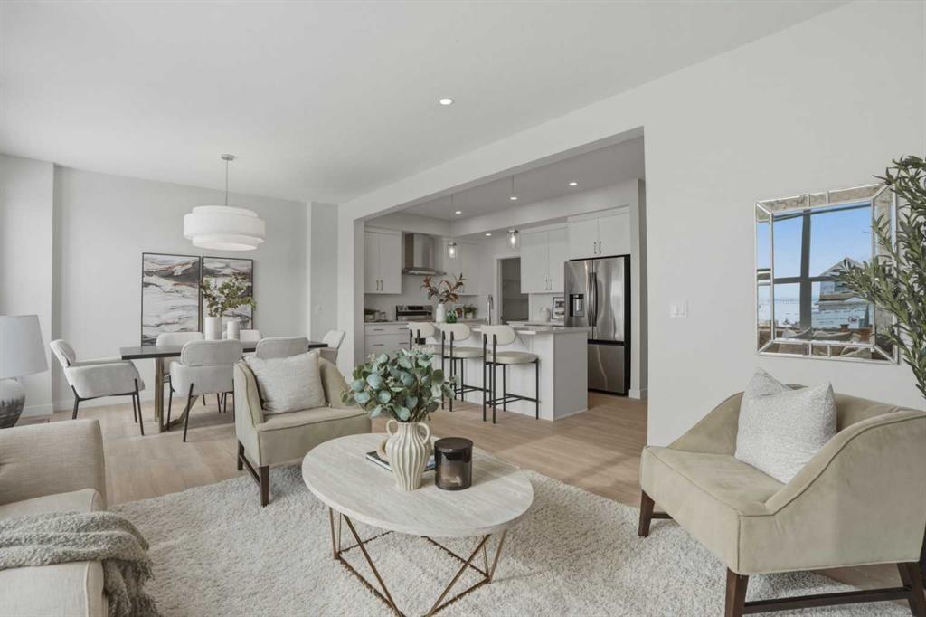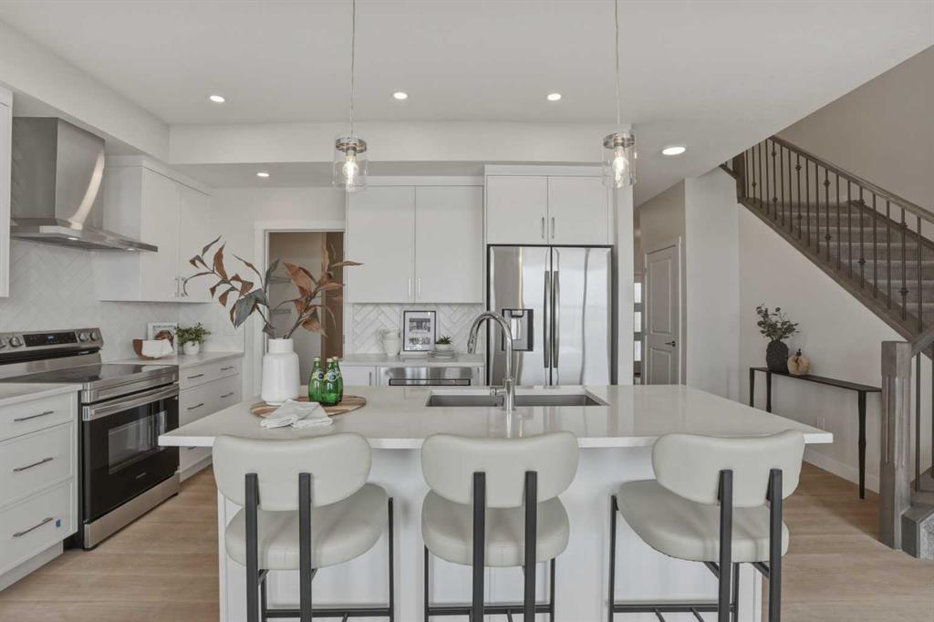 Welcome to the Leo?II model by Genesis Builders Group, a move-in ready, exquisitely designed home in Calgary’s sought-after Heartwood community. Boasting 2,068?sq?ft of living space, this residence combines elegant finishes, thoughtful design, and modern functionality. The sun-drenched main floor features large windows and wide-plank LVP flooring, creating a bright, open ambiance. The chef-inspired kitchen is a showstopper with quartz countertops, full-height cabinetry, a Herringbone backsplash, and a generous island ideal for gatherings. A walkthrough pantry to the mudroom enhances workflow, while a 2-piece powder room completes the main level. Upstairs, the primary bedroom offers a spa-inspired ensuite and walk-in closet for a true private retreat. Bedrooms 2 and 3 share a stylish 4-piece bathroom, perfect for family living, while a spacious upper-level family room provides a cozy and versatile space for movie nights, homework, or relaxing with loved ones. The upper-level laundry adds convenience for busy households, and plush carpeting throughout the bedrooms and family areas enhances comfort. This home also includes a side entry to the basement, providing the opportunity for a future legal suite with city approval, adding flexibility and investment potential. Located near parks, pathways, schools, and planned community amenities, the Leo?II model combines luxury, functionality, and lifestyle in one exceptional home. Genesis Builders Group follows the First-Time Home Buyer GST/HST Rebate to eliminate the 5% GST on qualifying new homes (up to $1 million) for qualifying first time home buyers. Hurry and book a showing at this gorgeous brand new Genesis home today!