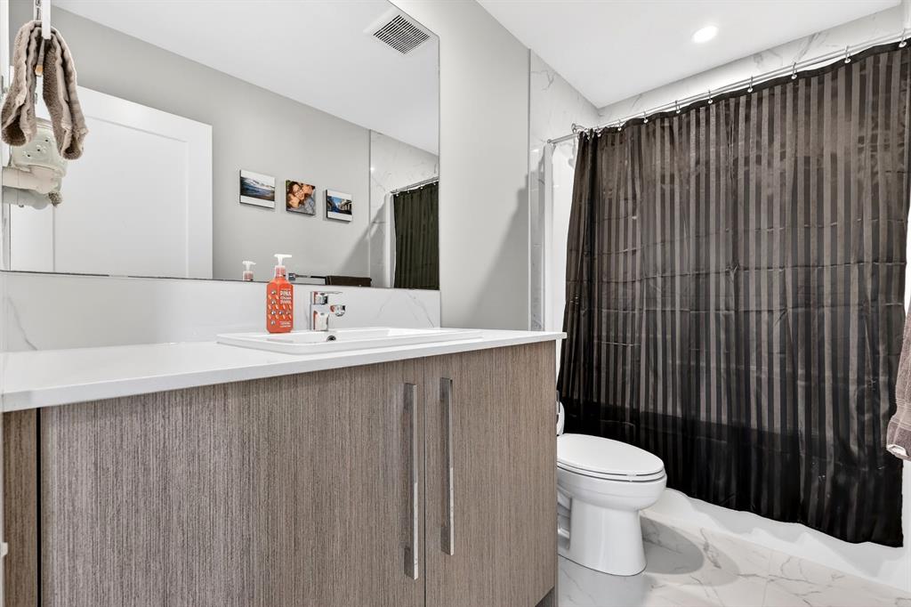 Welcome to this beautifully maintained NO CONDO FEE townhouse located in the heart of Chestermere, offering the perfect blend of style, space, and functionality. Tastefully upgraded throughout, the main floor features a bright open-concept layout and a stunning chef’s kitchen complete with a gas stove, stainless steel appliances, a large breakfast bar, and a central island—ideal for everyday living and entertaining. Upstairs you’ll find three spacious bedrooms, including a comfortable primary retreat with a private ensuite featuring a walk-in tiled shower, plus an additional full main bathroom. The upper-level laundry room adds convenience and practicality to your day-to-day routine. The fully developed basement expands your living space with a large recreation area, a fourth bedroom, and a full bathroom—perfect for guests, teens, or a home office setup. Step outside to enjoy the backyard complete with a deck and patio, ideal for summer BBQs and relaxing evenings. A double detached garage completes the package, offering plenty of parking and storage.A rare find with no condo fees, upgrades throughout, and a fantastic location—this home is a must-see!