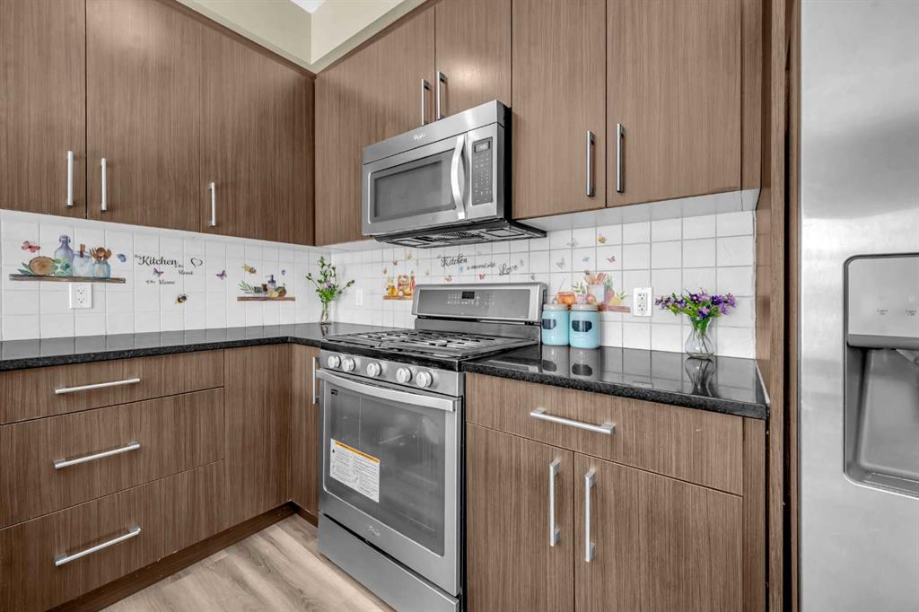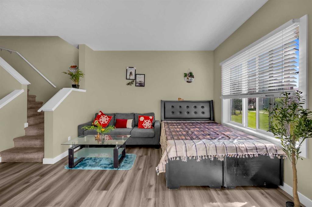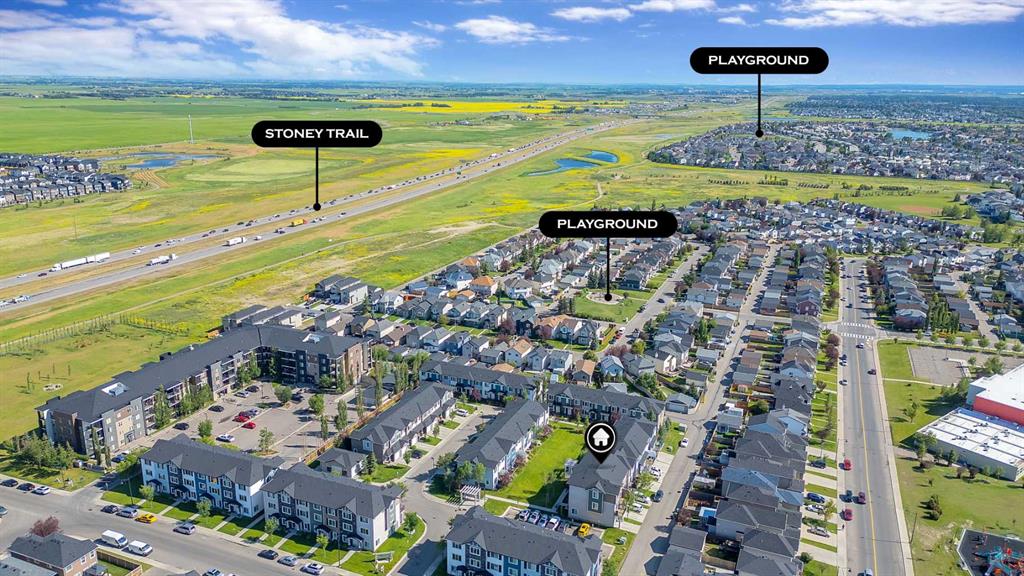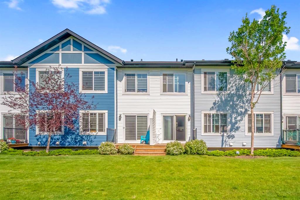 Welcome to this beautifully maintained 3-bedroom, 2.5-bathroom townhouse offering 1239 SqFt of comfortable living space, an open concept layout, and a front-attached garage - big backyard & no maintenance -GARBAGE IS ALSO INCLUDED ! Step inside to a tiled foyer with convenient access to a 2-piece bathroom, garage entry, and basement. Newer Flooring and Fresh Coat of Paint. The main floor is designed for seamless living and entertaining, featuring a bright and airy open layout with large windows that flood the space with natural light. The kitchen boasts granite countertops, stainless steel appliances including a 5-burner gas stove, a dual basin sink, ample cabinetry, and a breakfast bar with seating. Adjacent to the dining area, sliding glass doors open to a spacious private deck with a wood privacy divider—perfect for summer gatherings. Upstairs, you’ll find three generously sized bedrooms and two full bathrooms. The primary bedroom includes a walk-in closet and a 4- piece ensuite accessible via a private pocket door. The additional two bedrooms share a full 4-piece bathroom with a tub/shower combo and undersink storage. A dedicated laundry area with a front-load washer and dryer plus built-in wire shelving completes the upper level. The basement remains undeveloped, offering a blank canvas for your future vision. Enjoy outdoor space with a deck that steps out to green space—ideal for children or pets. Parking is a breeze with a front-attached oversized single garage and driveway. Located just a 2-minute drive or a 7-minute walk to Ted Harrison School, this home is nestled in a family-friendly community close to public transit, C Train access, grocery stores, and coffee shops. Condo fee also includes water. Don’t miss this fantastic opportunity!