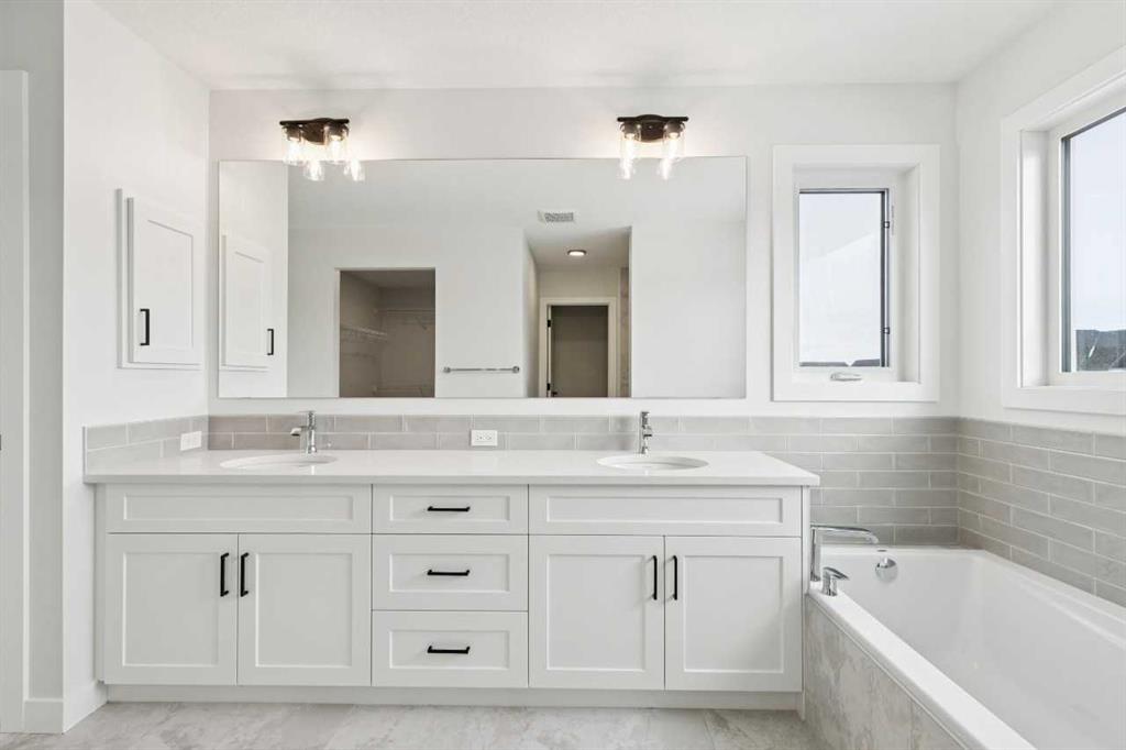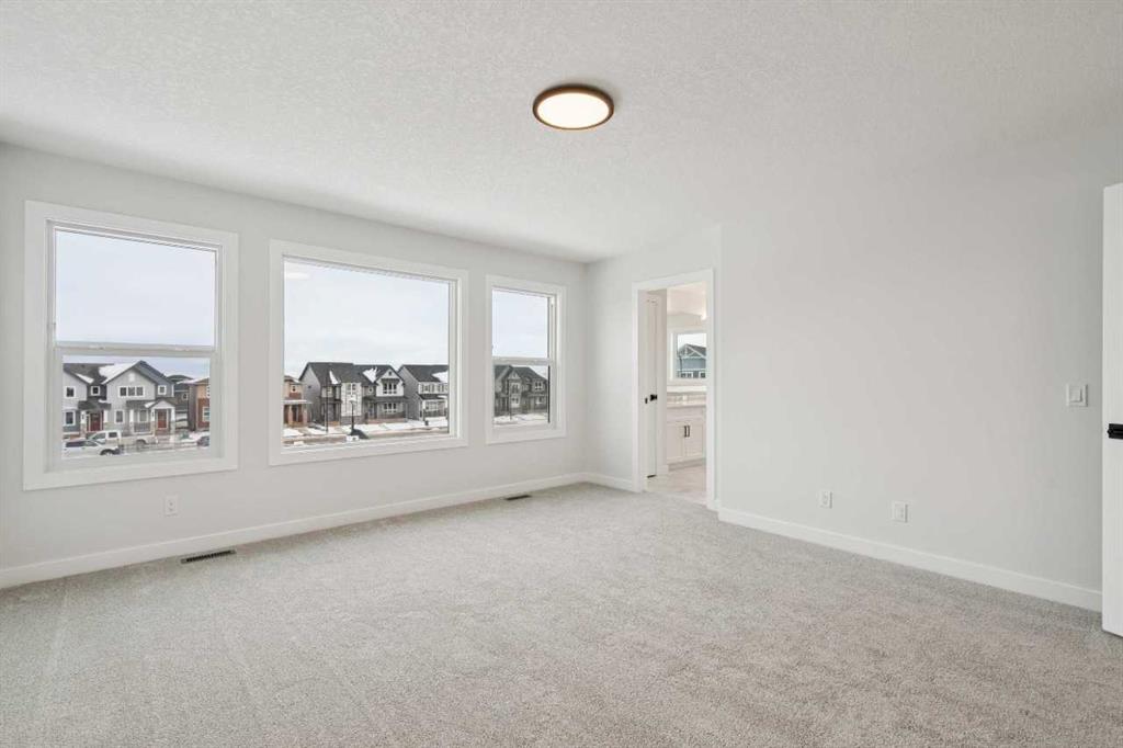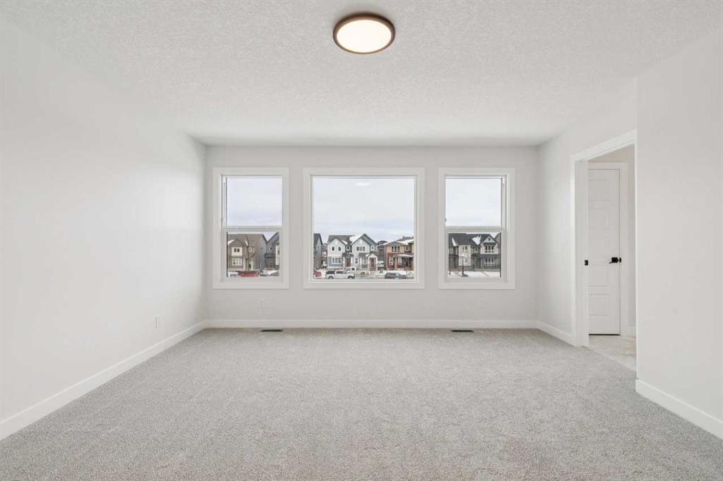 This home features an executive kitchen with a gas cooktop, waterfall granite island, pots-and-pan drawers, and a walk-through pantry. Enjoy a gas fireplace with maple mantel and tile face, 8' doors on the main floor, 10' main floor ceiling height, and an open-to-above foyer that adds dramatic appeal. The mudroom includes an open bench, coat rack, and cubbies for organization. Upstairs offers a vaulted bonus room and a luxurious ensuite with a fully tiled shower, tiled ledge, double sinks, and a bank of drawers. Tiled flooring throughout baths and laundry. Additional highlights include a widened garage with an 18' x 8' door, side entrance, painted basement floor, and a rear 15' x 8' deck with BBQ gas line. This energy-efficient home is Built Green certified and includes triple-pane windows, a high-efficiency furnace, and a solar chase for a solar-ready setup. With blower door testing that may be eligible for up to 25% mortgage insurance savings, plus an electric car charger rough-in, it’s designed for sustainable, future-forward living.