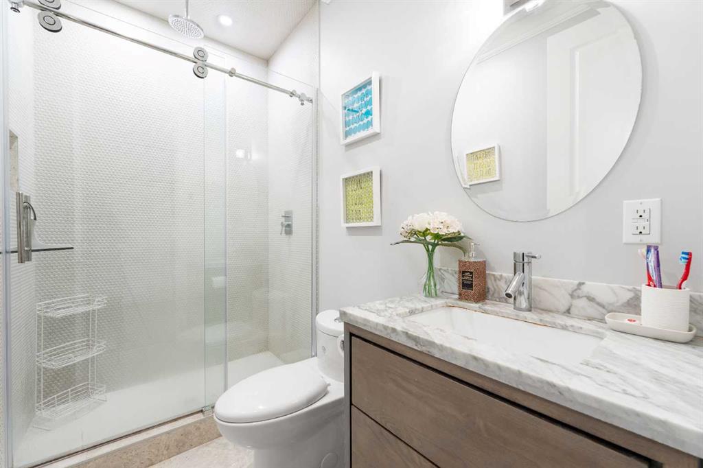 OPEN HOUSE from 1-3 PM on Sunday Feb 22nd :) Wow! Check out the view of the lake from the bonus room in this well kept, amazingly located home! As you enter this home you have a main floor office space that's perfect for the work from home professional. As you make your way through to the main floor living spaces you will LOVE the central kitchen which features a walk through pantry, ample gorgeous two toned cabinetry, granite countertops, subway tiled backsplash, gas cooktop, wall oven and microwave and upgraded lighting. The dining area adjacent to the kitchen is big enough for a large dining table, the living room features a gorgeous tiled fireplace wall, modern industrial shelving, and plenty of natural sunlight! The main floor is completed with a huge mudroom, a half bath for your guests and views of the back yard from the back of the house. Upstairs is amazing and features a huge bonus room drenched in sunlight with soaring vaulted ceilings and EPIC views of the LAKE! down the hall there is a large laundry room with loads of cabinets for storage and a sink and it also connects directly to the walk in closet in the primary bedroom! The primary bedroom is a great size and features a spa like ensuite bathroom with an XL steam shower, heated floors, separate soaker tub, huge walk in closet with built ins, dual sinks and lots of storage! There are 2 additional bedrooms and another full bathroom for the kids upstairs! The basement is fully finished with a wet bar, huge rec room, a 4th bedroom and another full bathroom (also with heated flooring) This house has it all! Lake Views, amazing location, HEATED oversized garage, tankless hot water heater, A/C, LED lighting system on the house as well as landscape lighting in the back yard, beautiful upgrades, dog run, built in speakers in the basement, water softener, easy access to all the areas amenities, schools, parks, playgrounds, transit right outside your front door, off leash dog park, YMCA, the Hospital, tons of shopping, restaurants, pubs and easy access to Deerfoot and Stoney Trails! This one is truly a winner that checks all the boxes!