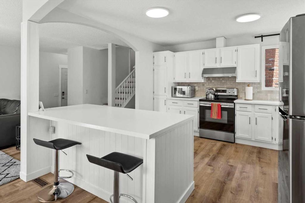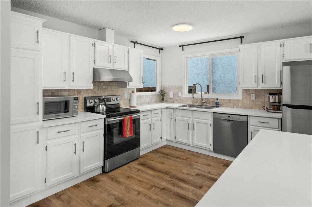**Open House Feb 1st, 12pm-2pm** Hey Y'all! Welcome to 40 Bergen! Tucked away on a quiet cul-de-sac and backing onto lush green space, this fantastic 4-level split is ideally located in the heart of Beddington. As you enter the home you’ll immediately notice the many thoughtful upgrades throughout. The kitchen has been fully renovated, now featuring modern cabinetry, stainless steel appliances, tile flooring, and a stylish bright and functional layout. New vinyl plank flooring has been installed throughout both the main and lower levels. The main level also features a spacious and bright living room with south facing windows that seamlessly flows into the kitchen and dining area, perfect for entertaining or relaxing. Upstairs, you’ll find three generously sized bedrooms and two full bathrooms complete with vanities, tiled floors and showers, and medicine cabinets offering additional storage. The third level includes a large rec room with a floor-to-ceiling brick fireplace, a side entrance to the backyard, a renovated 2-piece bathroom, and a fourth bedroom, offering a fresh, updated space for guests or family members. There’s also a large laundry and storage room for added functionality. And the very lower level basement is ready for your finishing touches, an in-home gym or provides additional storage for your Christmas decorations and such. Additional updates from the previous owners include replaced windows, an updated roof, and an oversized double detached garage, ideal for extra vehicles or workshop space. Just 1.5 blocks from the off-leash dog park, 5 blocks to local schools, and only a few minutes’ walk to the amenities on Centre Street, the location offers unbeatable accessibility and low maintenance landscape. With easy routes to both Centre Street and Deerfoot Trail, commuting across the city is quick and convenient. This is a move-in ready home in an incredible location—don’t miss your chance to own a beautifully upgraded property with room to grow in Beddington! Book your showing today!