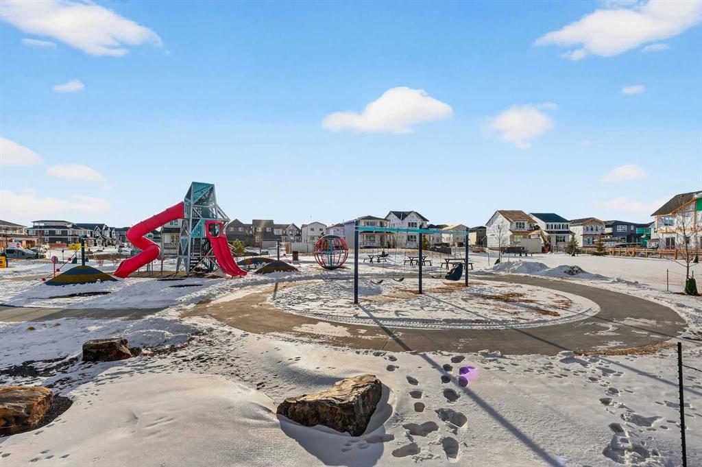 OPEN HOUSE on Saturday and Sunday from 12-5pm. Please go to the Show Home located at 1176 Sailfin Heath for access. Experience the height of sophisticated living in this highly coveted luxury townhome, where a generous floor plan meets modern comfort and refined finishes. Proudly presented by StreetSide, this thoughtfully designed home features 3 bedrooms, 2.5 bathrooms, and a detached double car garage. Enhanced by over $17,000 in builder upgrades, the heart of the home is a spacious kitchen showcasing upgraded cabinetry, polished white quartz countertops with an elegant waterfall-edge island, an upgraded kitchen sink, and stainless steel appliances including an electric range with a gas line in place for future gas cooking. The living area is anchored by a gas fireplace and finished with luxury vinyl plank flooring, creating a warm and inviting atmosphere. The primary ensuite is a private sanctuary complete with tile flooring, double sinks, a freestanding soaker tub, and an oversized tile-and-glass shower, delivering spa-inspired comfort at home. Additional highlights include an upgraded spindle railing on the lower stair landing, rough-in for central air conditioning, and an unfinished basement with roughed-in plumbing, offering excellent future development potential. Professional landscaping and fencing complete the exterior. Ideally located in the award-winning community of Harmony, residents enjoy Mickelson National Golf Course, private lake amenities, scenic walking and biking trails, and a wellness-focused lifestyle—just minutes from Calgary and only 45 minutes from the Rocky Mountains, where nature and convenience come together effortlessly.