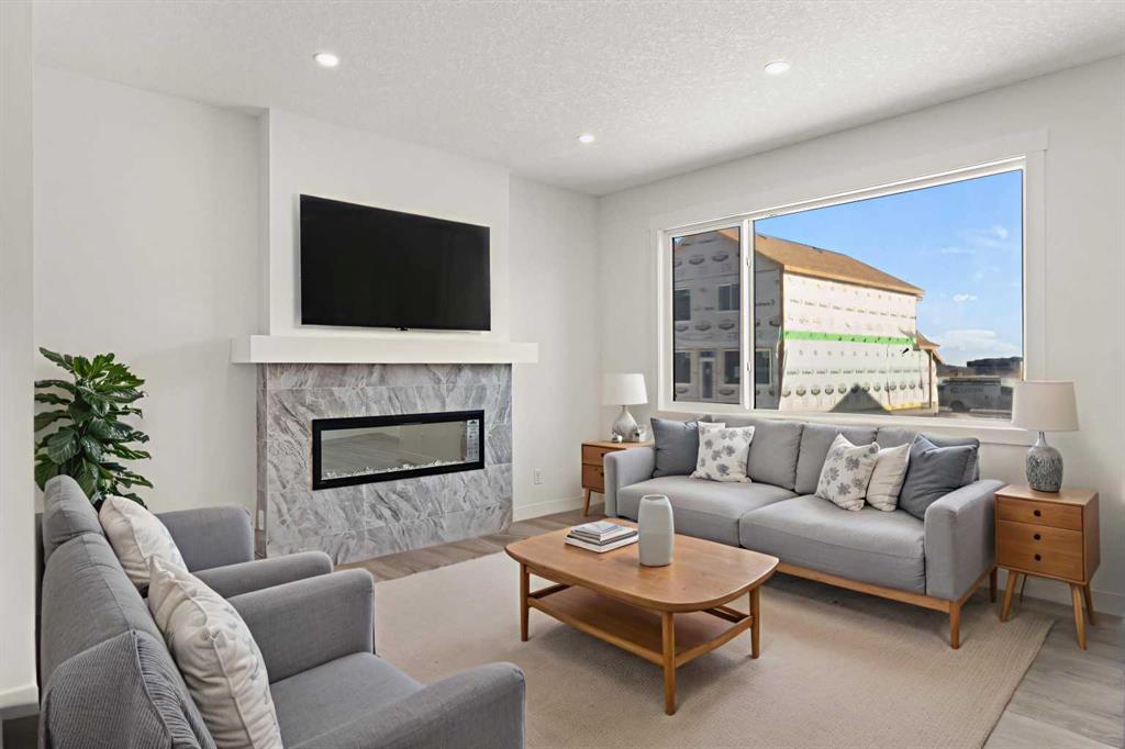 Located at 60 Creekstone Grove SW, this quick possession home offers 1,979 sq. ft. of beautifully designed living space with 3+1 bedrooms and 3 full bathrooms in total. The open-concept main floor features 9’ ceilings, luxury vinyl plank flooring, A MAIN FLOOR BED WITH FULL BATH, and a striking electric fireplace with tile surround, perfect for guests or multi-generational living.