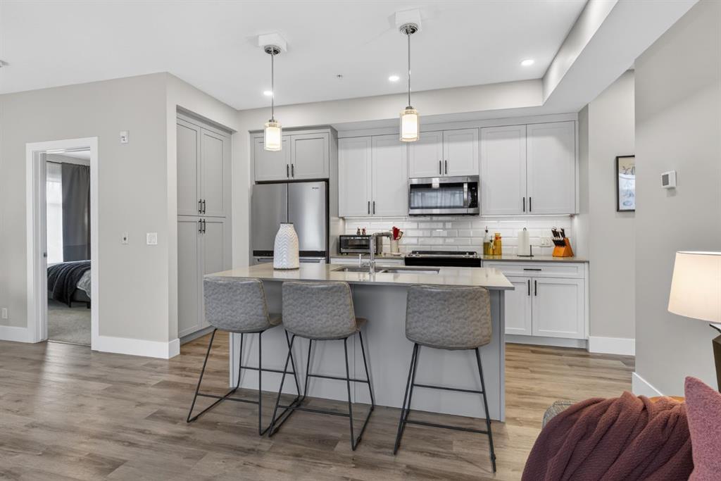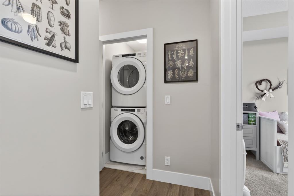 The primary bedroom includes a spa-inspired ensuite with double vanities & a large subway-tiled shower. The second bedroom is located on the opposite side of the unit with a full 4-piece bathroom, making it ideal for guests, roommates, or a home office.
