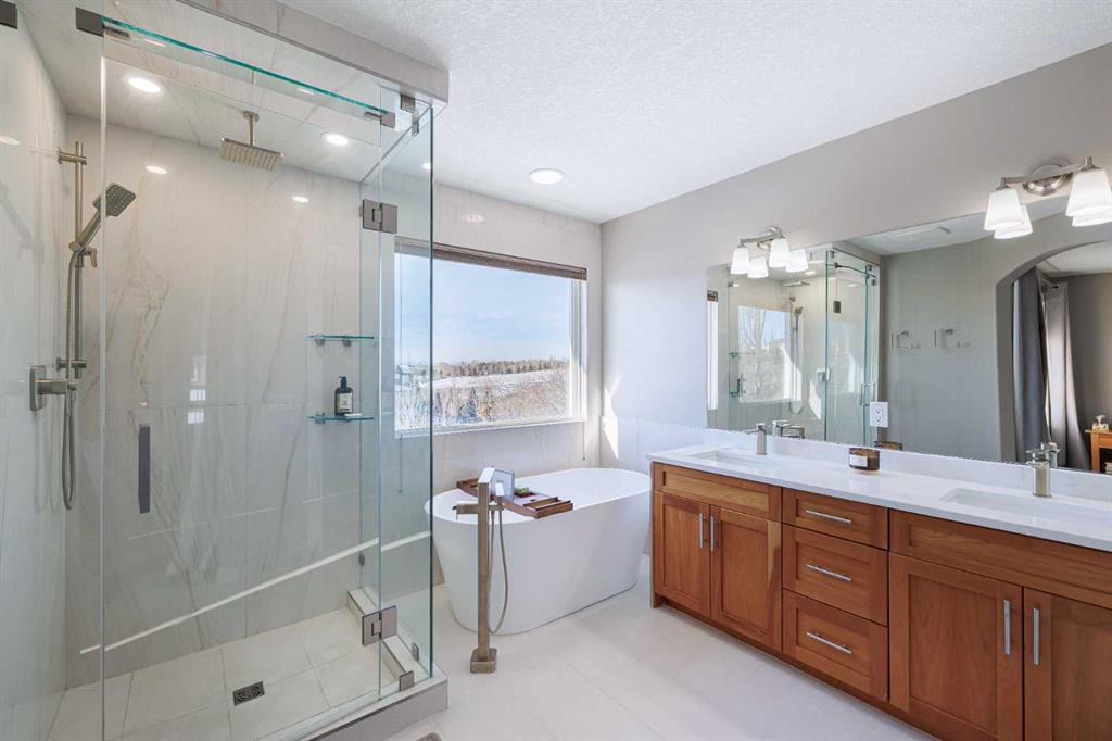 TThis beautifully appointed two-storey home makes a lasting impression with its timeless design, thoughtful layout, and seamless blend of elegance and everyday comfort. With a fully finished walkout basement, a meticulously renovated upper level, and a serene backyard backing directly onto a walking path, this home is perfectly suited for families and entertainers alike. The front entrance welcomes you with a striking open-to-below foyer, creating an immediate sense of space and light. Natural light flows effortlessly between levels, setting a refined yet inviting tone throughout the home. Just off the entry, the formal dining room offers a sophisticated setting for hosting dinner parties, holiday gatherings, or special celebrations, while remaining versatile enough for a home office or sitting room. Hardwood flooring spans the main level, complemented by air conditioning for year-round comfort. At the heart of the home is a beautifully designed kitchen featuring granite countertops, stainless steel appliances, ceiling-height cabinetry, a spacious corner pantry, and a large central island ideal perfect for meal prep. A window above the sink overlooks the backyard, bringing in natural light and reinforcing the home’s connection to its outdoor surroundings. The bright eating nook sits adjacent to the kitchen and offers direct access to the back deck—perfect for everyday dining or effortless indoor-outdoor living. The open-concept living room features a cozy fireplace, creating a warm focal point for relaxing evenings or entertaining guests. A conveniently located two-piece powder room and main floor laundry add to the home’s practical appeal. The fully fenced backyard is a true retreat, backing onto a walking path and framed by mature trees for added privacy and tranquility. From the upper deck to the lower patio accessed via the walkout basement, this outdoor space is ideal for entertaining, relaxing, or enjoying nature year-round. Upstairs, a spacious bonus room with built-in desk and charming window seat provides a versatile family gathering space. Three generous bedrooms share a beautifully renovated four-piece bathroom, while the primary suite offers a peaceful sanctuary with mountain views, a walk-in closet, and a fully renovated five-piece ensuite featuring dual vanities, a soaking tub, stand-alone shower, and private water closet. The fully finished walkout basement expands the living space with a large family and recreation room, an additional bedroom, and a four-piece bathroom—ideal for guests, extended family, or flexible living arrangements. Thoughtfully designed and beautifully maintained, this home offers an exceptional balance of space, style, and setting—where everyday living feels elevated and every detail supports a refined, comfortable lifestyle.
