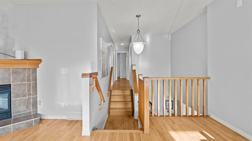 Upstairs, the home truly shines with a large and sun-filled bonus room, offering exceptional flexibility as a media room, play space, or home office. The upper level also features three generously sized bedrooms, including the primary retreat with a walk-in closet and a private 4-piece ensuite, complete with a relaxing corner soaker tub and separate shower. Two additional bedrooms and a full bathroom provide comfortable accommodations for family or guests. The unfinished basement offers endless potential to expand your living space and customize to suit your needs, whether you envision a recreation room, additional bedrooms, or a home gym. Ideally located close to schools, parks, shopping, and major roadways, this Coventry Hills home delivers space, comfort, and future potential in a well-established north Calgary community.