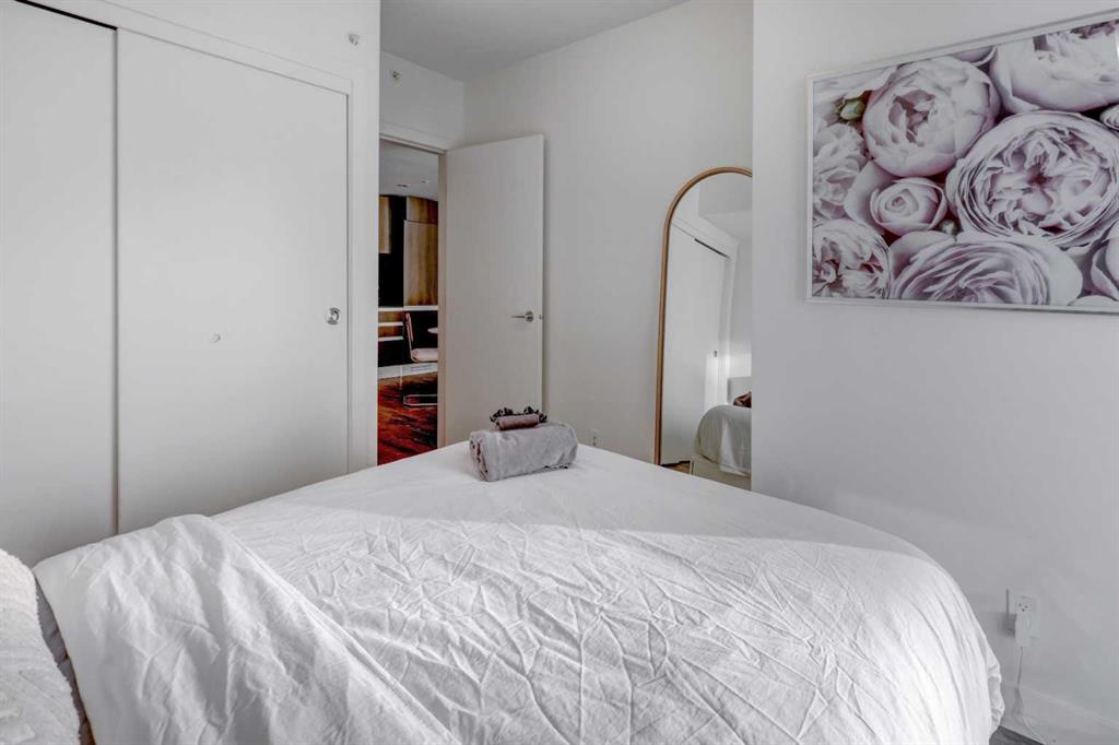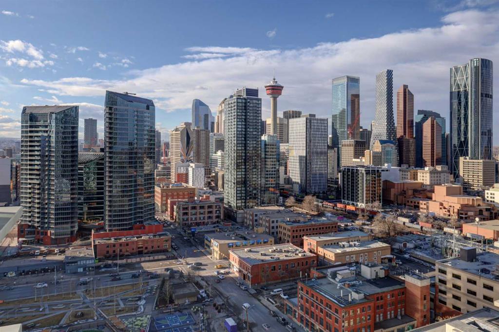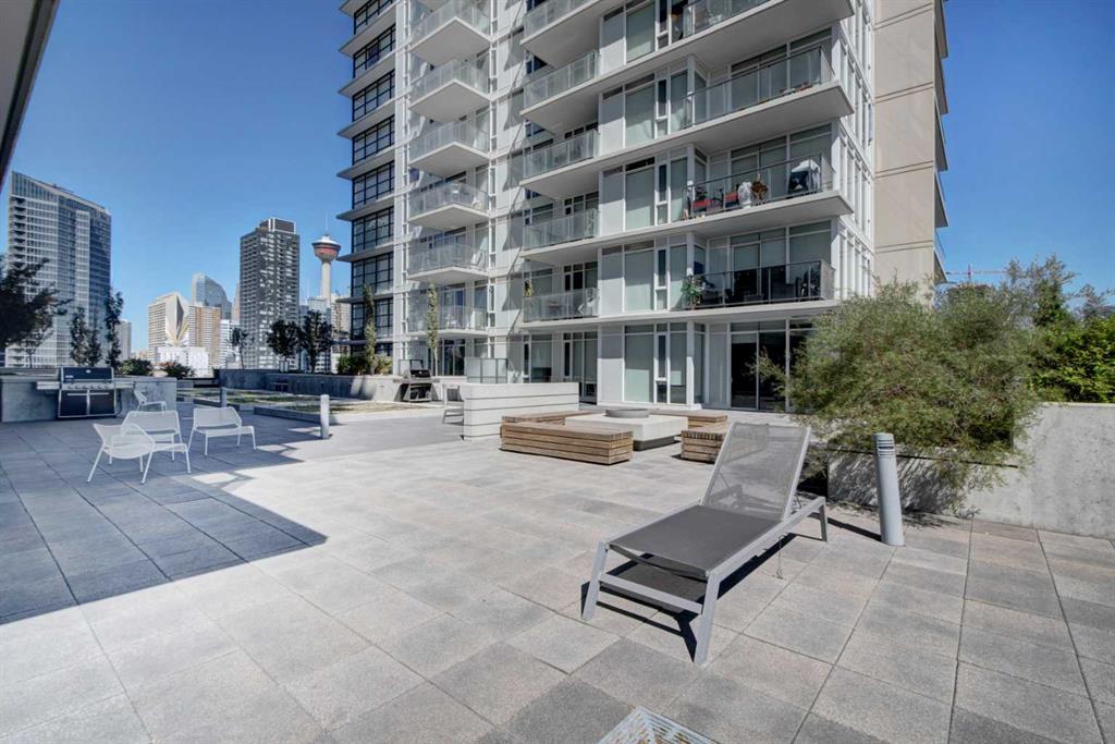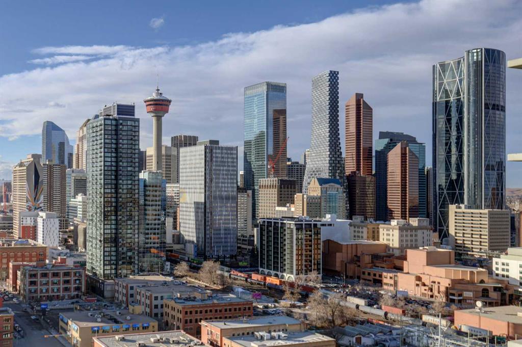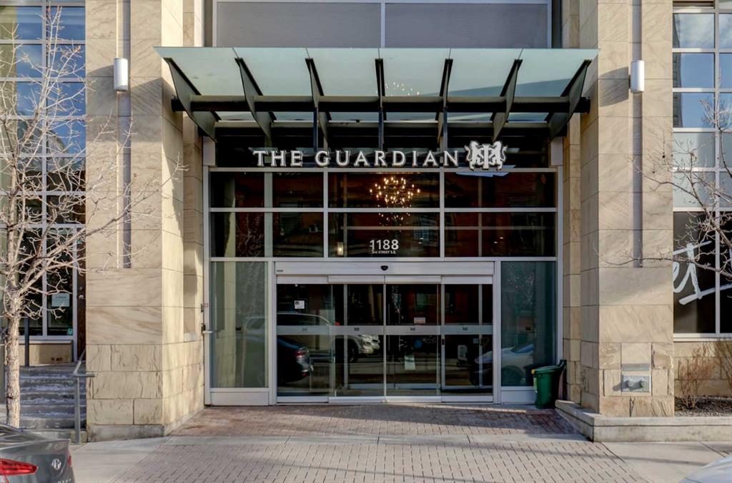 Experience elevated urban living with a VIEW | Modern one Bedroom Condo with titled underground Parking & assigned Storage, in The Guardian South Tower - one of Calgary’s most iconic high rise communities with incredible amenities. Inside, the thoughtfully designed open-concept layout is anchored by a sleek, contemporary Kitchen featuring integrated executive style appliances including a hidden refrigerator, all complemented by elegant stone countertops and modern cabinetry. Flowing seamlessly into the dining and living area, where floor-to-ceiling windows flood the space with natural light. Stepping out to the spacious covered Balcony to enjoy vibrant city views and stunning sunsets, glass railings help showcase the spectacular views of Calgary’s skyline - including the iconic Calgary Tower. A full blind package provides both style and privacy, upgraded LVP flooring throughout enhances the modern feel, and CENTRAL AIR conditioning ensures year-round comfort. Take advantage of The Guardian’s impressive resident AMENITIES, including a huge social club with fireplace, big-screen TVs, Wi-Fi, and lounge seating, a fully equipped FITNESS centre that rivals most gyms, and an expansive landscaped GARDEN TERRACE. This home includes titled, secure, heated UNDERGROUND PARKING and assigned storage locker. The building is pet-friendly with approval, and professionally managed, making it an ideal choice for professionals, investors, or anyone seeking a low-maintenance downtown lifestyle. Perfectly positioned in the heart of the Beltline, this home places you steps from the Stampede Grounds, Scotiabank Saddledome, transit, casinos, and an endless selection of restaurants, cafés, and shopping. A rare opportunity to own in one of Calgary’s most sought-after towers… Walkability & urban living at its FINEST. This unit checks all the boxes, book your private viewing before it’s too late!!
