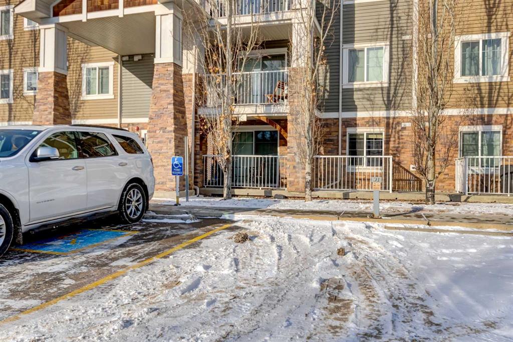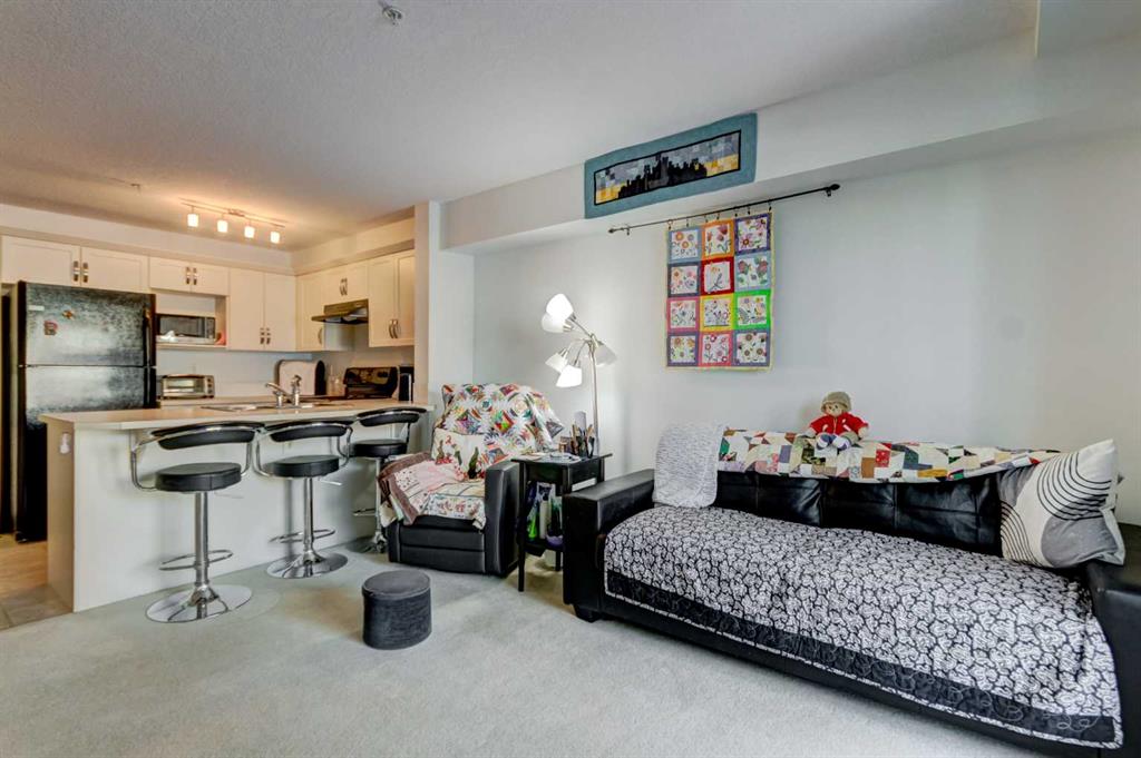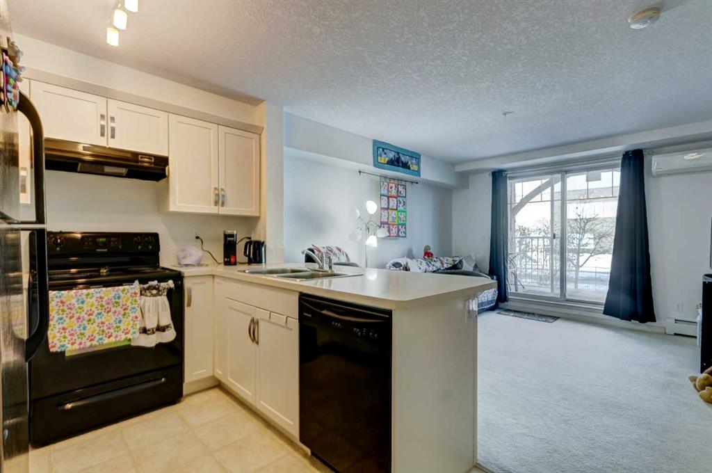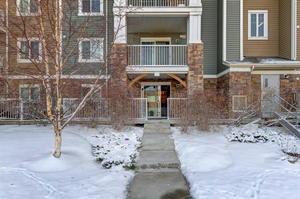 *** New Price *** Main floor convenience and thoughtful design come together in this well cared for 2 bedroom home, ideally positioned just steps from the lobby entrance and titled surface parking, making daily comings and goings simple and accessible for anyone seeking minimal stairs and ease of mobility. Pride of ownership is immediately apparent in a one-owner residence that has been kept neat as a pin and maintained with care. An open floor plan creates a comfortable flow for everyday living, anchored by a crisp white kitchen offering ample storage, modern fixtures and a peninsula island with breakfast bar seating designed for casual meals and easy conversation. Clear sightlines connect the kitchen to the adjacent living area, allowing the space to function effortlessly for relaxing, hosting or keeping connected throughout the home. Sliding patio doors extend the living space outdoors to an exceptionally large 25’ covered ground-level patio complete with a gas line, providing a sheltered setting for summer barbecues, morning coffee or quiet outdoor relaxation. Two well-proportioned bedrooms offer flexibility for guests, home office use or shared living, while a full 4-piece bathroom and in-suite laundry add everyday practicality. Air conditioning ensures year-round comfort. Building amenities enhance daily life with a welcoming lobby featuring a cozy seating area, fireplace and library, creating a comfortable space to relax or connect with neighbours. Titled parking and a separate storage locker support an organized, low-maintenance lifestyle. Walkable access to shopping, coffee, medical services, dining and everyday conveniences places essentials within easy reach, while nearby pathways invite regular walks and connection to the surrounding community. Close proximity to Fish Creek Park, community recreation amenities and major roadways including Deerfoot and Stoney Trail ensures outdoor enjoyment and efficient commuting, making this location equally well suited to downsizers, professionals or anyone valuing comfort, accessibility and connection.