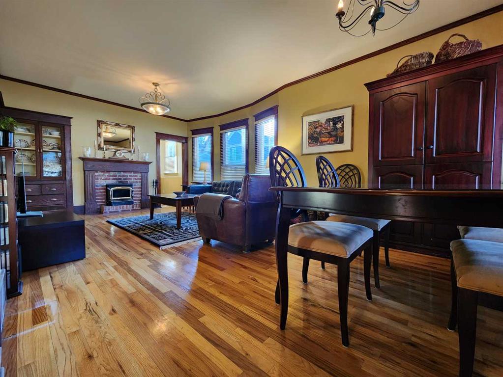 OPEN HOUSE: Saturday, January 31 and Sunday, February 1 from 2 - 5 pm. Welcome Home! The Roughton Residence is one of Calgary’s historically significant homes. Built in 1912 and updated over the years, this bright sunny home is full of character. The front entry porch is both charming and functional. The living room is flooded with south and west light with a beautiful ornamental fireplace anchoring the room. The eat in kitchen is bright and connects to a large yard. The second floor has 2 good size bedrooms centered around a beautiful south facing library and full bath. The upper level has a massive primary suite, complete with a gas fireplace, walk-in closet, 4-piece ensuite and a large east facing deck with amazing city views. The lower level has 2 entrances, a sizable family room with a gas fireplace, 4-piece bath, storage, and laundry. This lovely home is situated on an extra deep, 140 ft lot, fenced and surrounded by mature trees across from a green space. Located in historic and desirable Cliff Bungalow, a short stroll downtown, Western High School, the Stadium, restaurant and services.