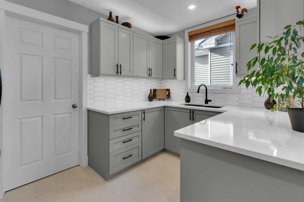 Trendy, professionally renovated, very well kept 2 bedroom, 2.5 bathroom end unit townhome with single attached garage in sought after Wentworth in West Springs. Several modern updates have been done to this beautiful home over the past 4 years including a full kitchen renovation, all 3 bathrooms have been renovated, new flooring throughout including all carpet and tile, new paint, new light fixtures, new garage door opener, and new hot water tank. The bright main level has an excellent layout and features the fully renovated kitchen with grey shaker cabinets, quartz countertops, under cabinet and above cabinet lighting, and heated tile floor. Off of the kitchen is the utility room with storage space and shelving that works well as a pantry. The kitchen opens to the dining room with large windows, and the spacious living room is beside the dining room with plenty of space for furniture and access to the balcony. The corner balcony is large enough for your BBQ and outdoor furniture. Completing the main level is the powder room with laundry and storage closet, and a bright nook that offers the perfect space for a home office or reading area. The upper level has 2 primary suites with the larger of the 2 offering space for a king size bed and side tables, black-out curtains, a balcony, walk-in closet and the fully renovated ensuite. This bathroom features heated tile flooring, a trendy vanity, fully tiled shower/tub, and modern lighting and mirror. The 2nd primary suite has a walk-through closet and an updated 3 piece ensuite bathroom. The convenient attached single garage is oversized, insulated and drywalled, and the full size driveway allows parking for a second vehicle. This well run complex is pet friendly, offers visitor parking within the complex, street parking on Wentworth Drive, and is conveniently located within walking distance to many of the amenities along 85th Street including grocery stores, restaurants, and coffee shops. Great access in and out of the neighbourhood, out to the mountains, to the ring road and to downtown. If you are looking for a renovated home with plenty of natural light, an attached garage in a well run complex, then this trendy home is for you!