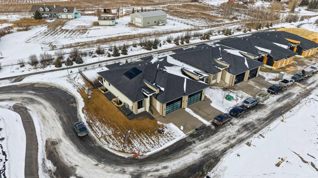 Nestled in the heart of Serenity at Heritage Pointe and backing onto a beautifully landscaped greenspace, this luxurious 3 bedroom, 3.5 bath villa with the Sawyer floorplan has been carefully crafted by RareBuilt Homes & offers over 3200 sq ft of exceptional living space. The open concept main floor impresses with engineered wide plank hardwood, custom tile detailing, 10’ ceilings, and a spacious great room with large sliding doors that open to a covered rear deck and private fenced yard. The chef inspired kitchen is equipped with a full KitchenAid appliance package, including a six burner gas cooktop, custom hood fan, refrigerator/freezer, dishwasher, and built in oven with convection microwave. A generous island, ample storage, and thoughtful layout make this kitchen ideal for both everyday living and entertaining. A stylish home office with beam detailing adds both character and functionality. The primary suite provides a serene retreat, complete with a spa inspired 5 piece ensuite featuring heated floors, a freestanding soaker tub, an oversized shower, and a custom walk in closet. The fully finished basement extends the living space with a large recreation room, two additional bedrooms (one with a 3 piece ensuite), a second full bath plus a home gym & infrared sauna. Additional highlights include tilt and turn triple glazed windows, 6 standard solar panels, a high efficiency furnace, heat pump, air conditioning, and radiant in floor heating—ensuring year round comfort and energy efficiency. Outside, enjoy a covered composite rear deck with custom aluminum railing plus a fully landscaped & irrigated yard including ornamental fencing and gate in the rear yard providing access to 2 km of local pathways. Parking is effortless with a fully finished and painted oversized double attached garage complete with epoxy flooring, aggregate driveway and EV charger readiness. Enjoy the freedom of full landscape maintenance and snow removal plus close proximity to Heritage Pointe Golf Club, LaunchPad Golf at Heritage Pointe & easy access to Calgary or Okotoks via highway 2 or 2A.