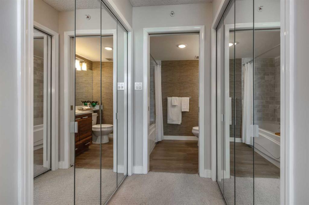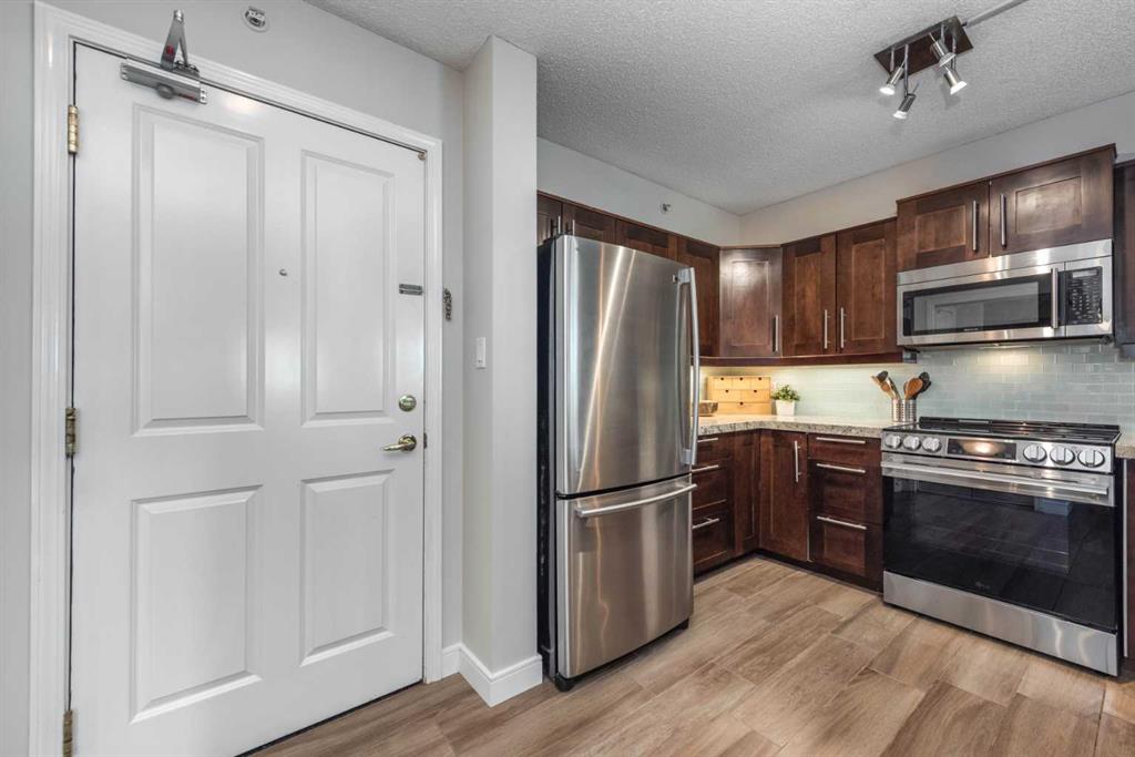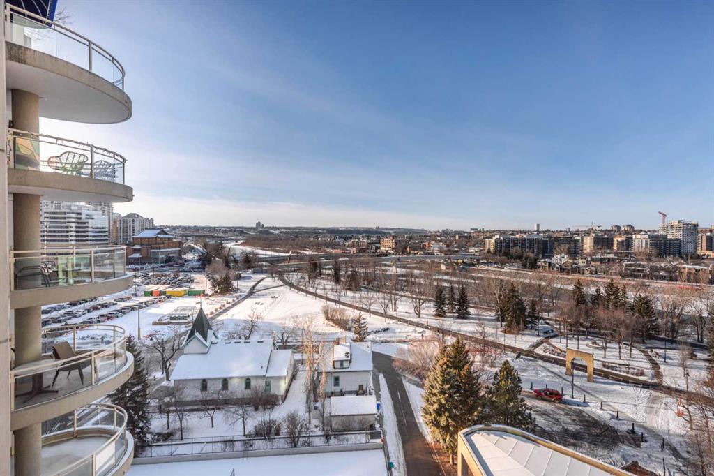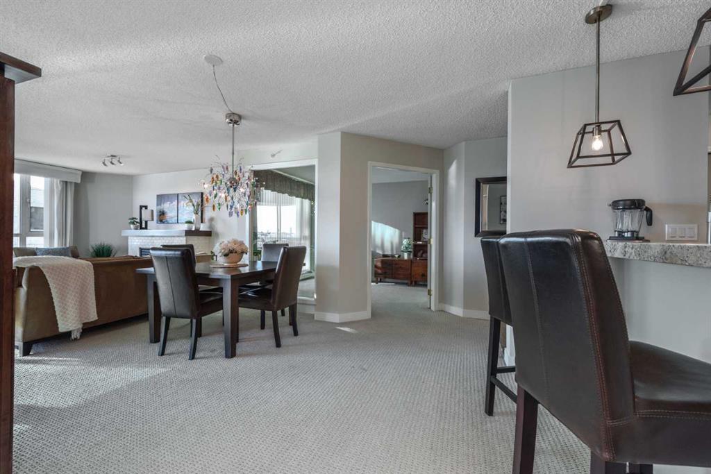 Your EXECUTIVE urban condo lifestyle beckons at Liberte - conveniently located in the highly sought-after Eau Claire area of Downtown Calgary, this beautiful, tastefully renovated and updated suite is move-in ready. Offering stunning NW river valley VIEWS is one of the best locations in the building! Features include a gorgeous renovated kitchen with granite counters, stainless steel appliances and breakfast ledge, spacious dining room and living room with floor to ceiling windows that capture the stunning river and valley views, cozy gas fireplace with stone tile front and mantle in the living room, sliding patio door to NW patio, primary bedroom with walk through closets, renovated 4 piece ensuite bath with soaker tub, second bedroom with French door and renovated 3 pc bath off the main entrance. Updates abound and include 2” granite counters, undercabinet lighting and glass subway tile backsplash in the kitchen, quartz counters, solid walnut cabinets and stone accents in both bathrooms, marble wall tile in ensuite bath, contemporary wood-look tile flooring in entry, kitchen & both baths. Rarely do suites in this location in the building come on the market. TWO titled parking stalls in the heated underground parkade and additional storage locker are included. As a resident of Liberte, you will appreciate the updated and renovated common areas, have access to premium amenities, including a tennis court, bike storage, a fully equipped fitness centre and a residents lounge complete with a kitchen - ideal for your group gatherings. This prime location is situated just steps from some of the city’s finest restaurants including Alforno Bakery and Buchanan’s Chop House, is a short stroll to the Bow River, waking & bike pathways, Prince’s Island Park, the downtown core and surrounded by upscale amenities to suit all lifestyles; this incredible location is sure to impress. Offering the perfect blend of convenience, lifestyle, and luxury, this property is an unparalleled opportunity in the heart of the city. Perfect for the discerning buyer that wants luxury living and an option for a true lock and go lifestyle. Book your viewing Today!