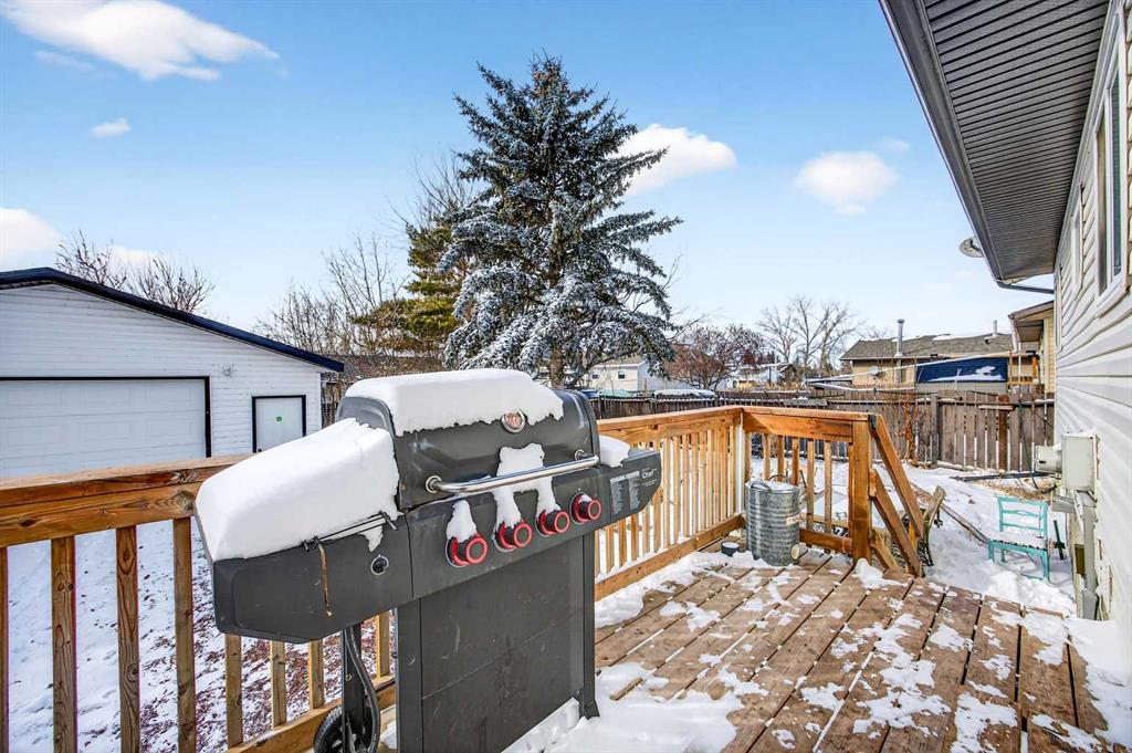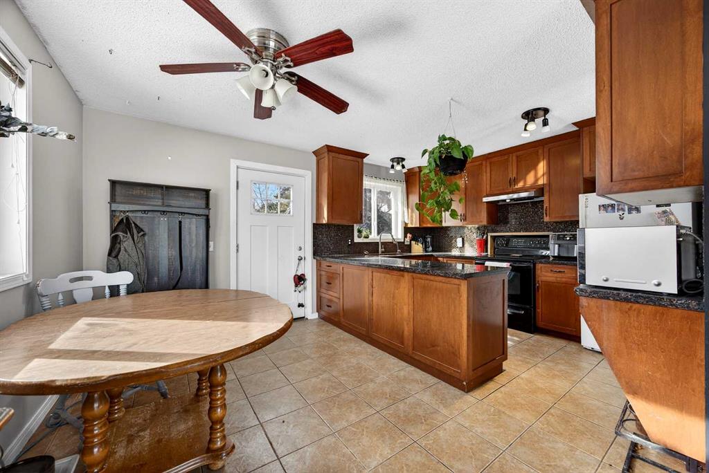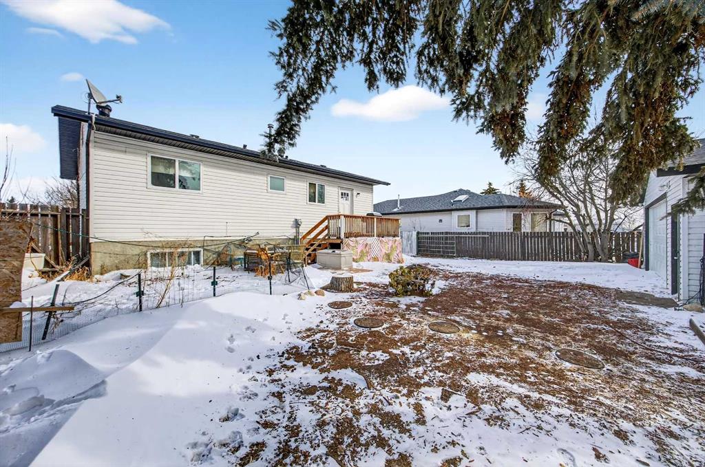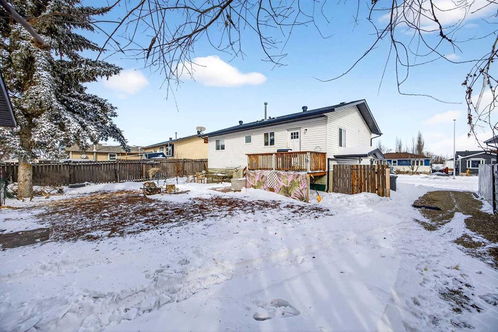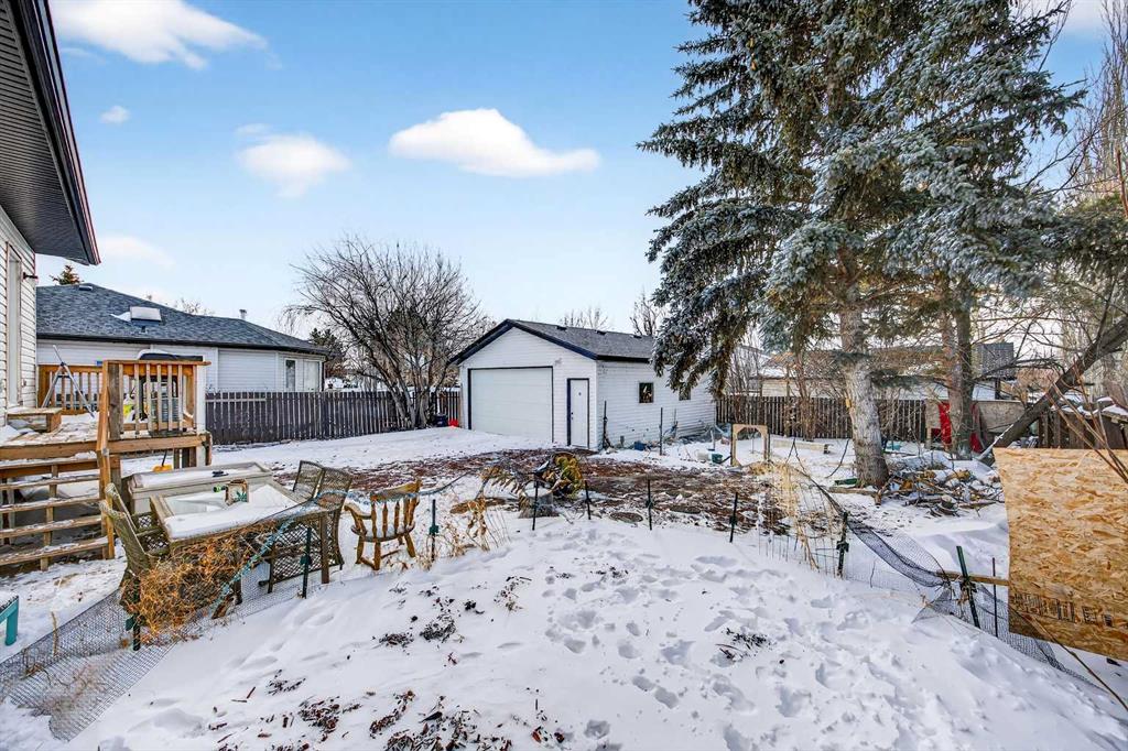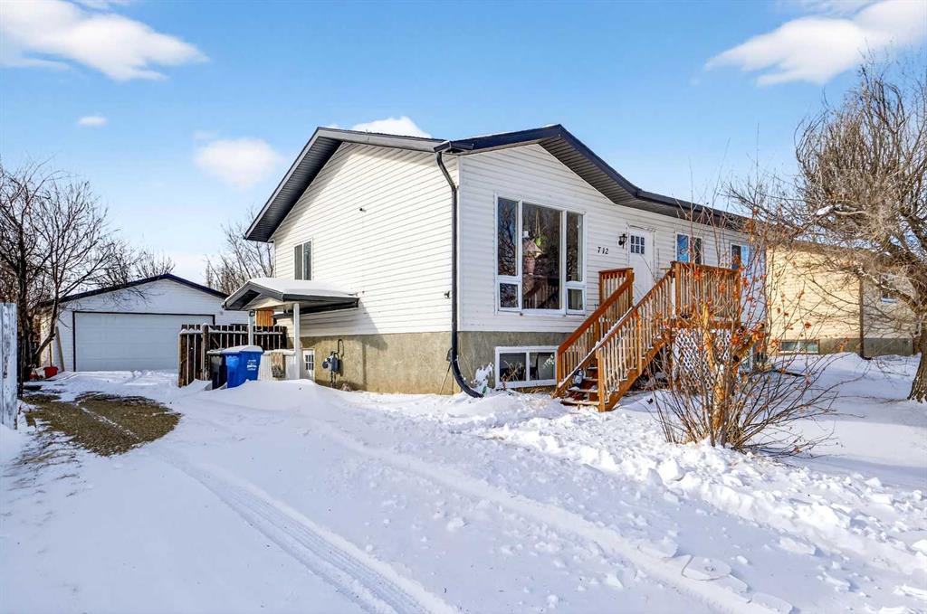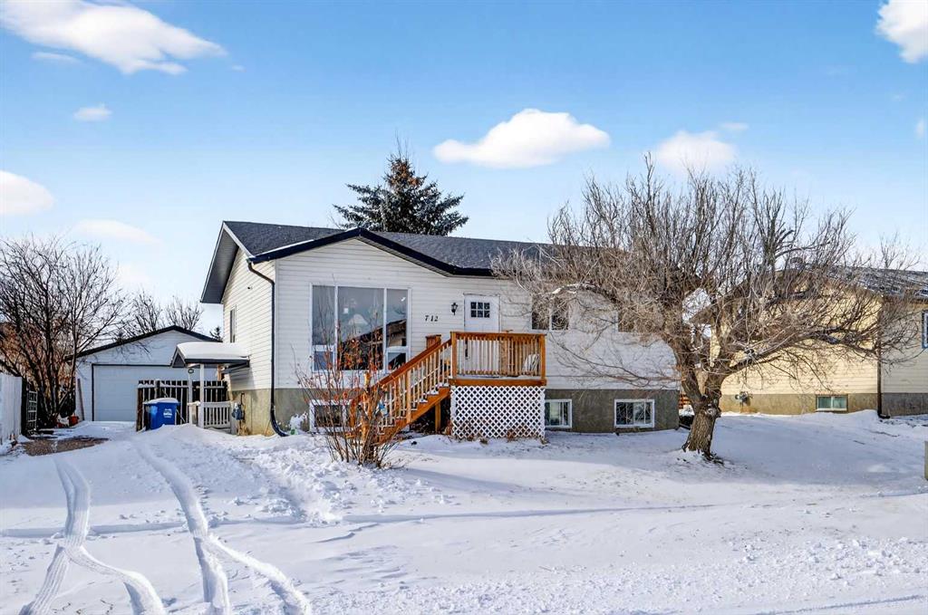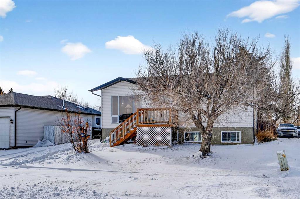 OPEN HOUSE SUN - FEB 22nd 12-3PM. What a great opportunity in the charming & peaceful community of Irricana! This lovely Bi-level is nicely situated along a quiet street on a large oversized lot with a west facing backyard. The convenient side drive-thru access provides abundant parking, boat & RV storage AND the large 24' x 24' detached garage with 9' ceilings, 8' door and 220 V power bring tremendous value to this home. Inside has undergone upgrades over the years adding a modern calming ambiance. The kitchen was renovated in 2014 with all new cabinetry, countertops, loaded with storage, very stylish and functional with newer appliances. All the windows on the main floor and some in the basement were replaced in 2014, and in 2021 the 3 exterior doors were replaced. 2014 also brought new shingles, and new siding completing most of the exterior. New Hot water tank in 2024. Downstairs hosts new vinyl plank flooring, the basement has a large family room, 3pc bathroom, large bedroom, and den. The laundry / mechanical room has a walk out door with separate entry and is roughed – in to potentially be suited pending proper municipal permitting. The is a very large & private yard with spacious garden, self-cleaning duck tub with filtration system that drains into the ground and comes with filter, UV lights, aeration stones, and pumps. The rear deck was rebuilt in 2019 along with the front porch Embrace small-town charm while enjoying incredible accessibility – a short 30 min drive to Calgary, 25 to Airdrie offering every amenity imaginable, including Costco & Cross Iron Mills. This bungalow isn't just a home; it's your peaceful retreat with urban convenience offering the perfect blend of space, functionality, and potential— ready for its next owners to make it their own.