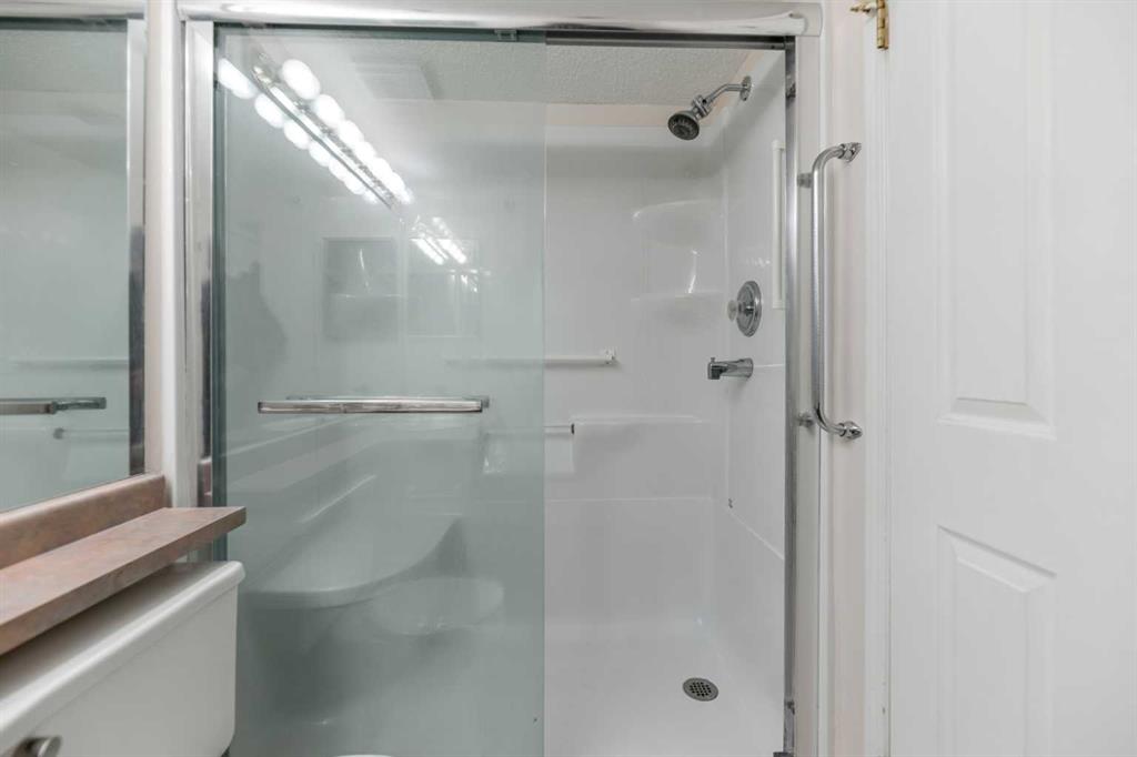 movable counter in kitchen, ceiling mounted pot hanger in kitchen, shelves in storage room