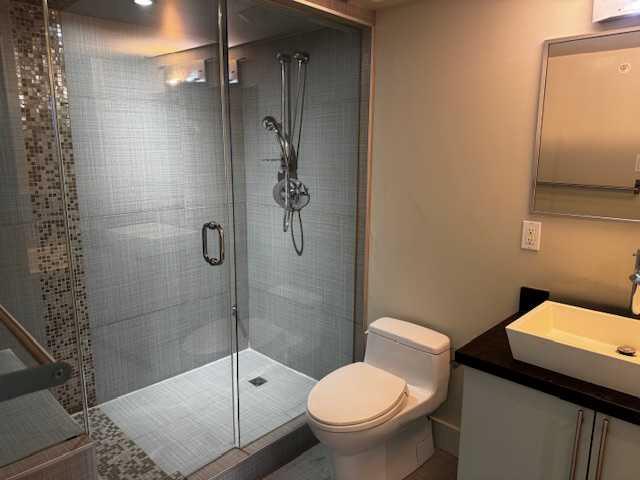 Upstairs, wake up — and fall asleep — to wide-open city views. The primary retreat features a spa-inspired ensuite with steam shower, soaker tub, and in-floor heating, creating a true urban sanctuary. This level also offers a built-in desk nook, a generous walk-in closet, and an impressively sized laundry room. Additional storage is cleverly tucked away beneath the stairs.