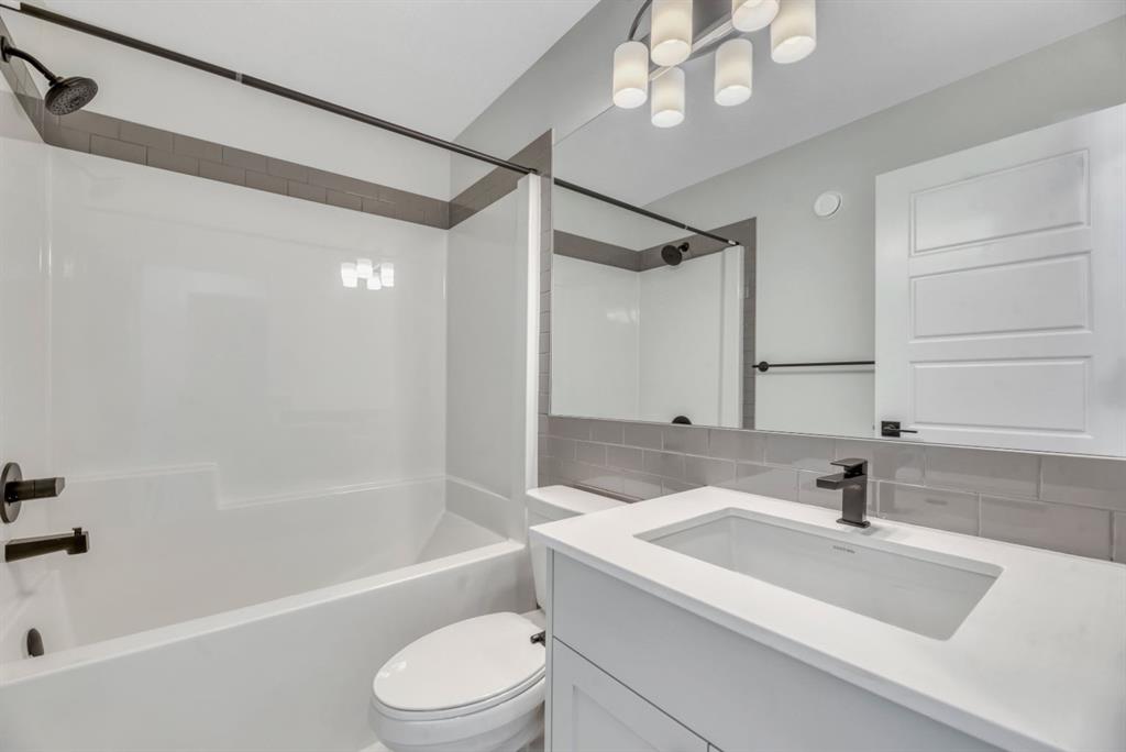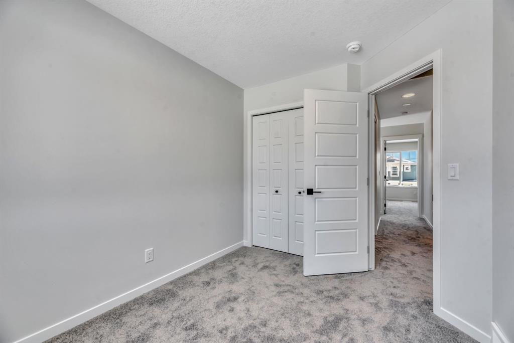 Welcome to this brand new MORRISON HOMES 1,364 sq. ft, Indigo II model home in Glacier Ridge, thoughtfully designed for modern living and future flexibility. Featuring 3 bedrooms, 2.5 bathrooms, and a sunny North West-facing backyard, this home offers a bright, functional layout in a growing, family-friendly community. The main floor showcases upgraded laminate flooring, and an open-concept great room anchored by a sleek electric fireplace, creating a warm and inviting space to relax or entertain. The gourmet kitchen is a standout with quartz countertops, stainless steel appliances, stylish cabinetry, and plenty of prep space with a spacious island —perfect for everyday living and hosting alike. Upstairs, you’ll find upgraded carpet, a spacious primary retreat with a private ensuite featuring quartz counters, dual sinks and shower, plus two additional bedrooms and a full bathroom—ideal for families, guests, or a home office setup. Washer and dryer are included for added convenience upstairs. The home also features an Exterior Side Entry, 9’ foundation, rough-ins for a future secondary studio suite (with City of Calgary permits and approvals), offering excellent potential for added value or income opportunities. Step outside to enjoy the 10’ x 10’ deck with stairs to grade, complete with a gas line for a future BBQ, and a 20’ x 22’ concrete parking pad ready for your finishing touch. Ideally located close to parks, the community centre, and quick access to 144 Avenue, this home blends comfort, style, and smart planning in one exceptional package. A fantastic opportunity to own brand new in Glacier Ridge—move in and make it yours.