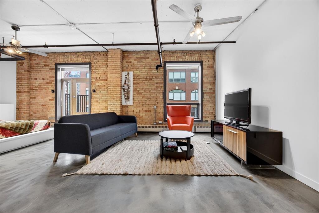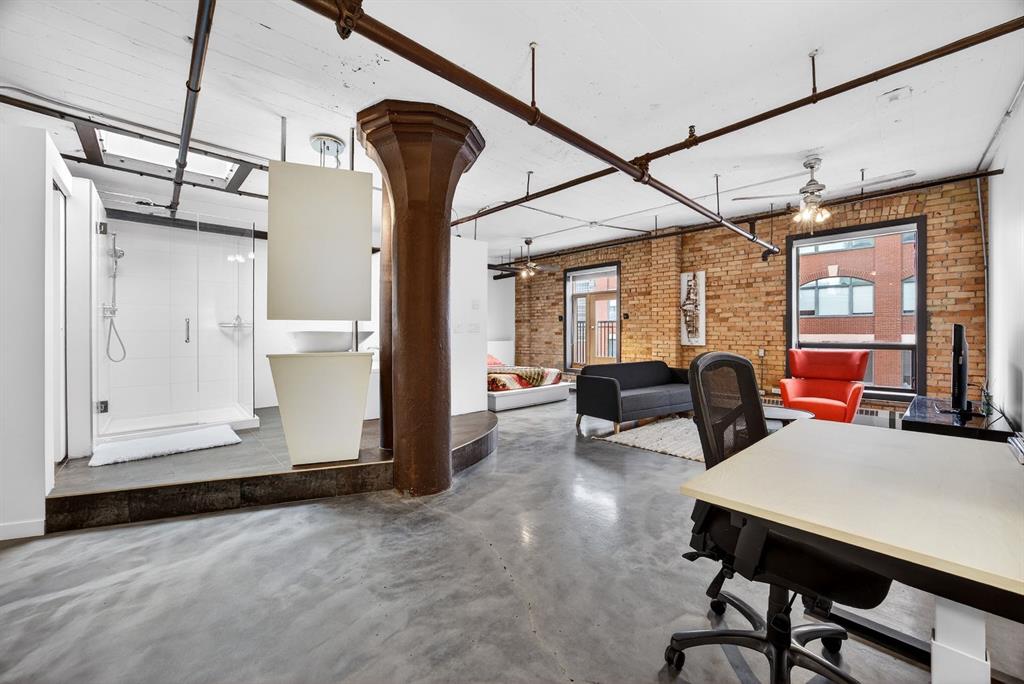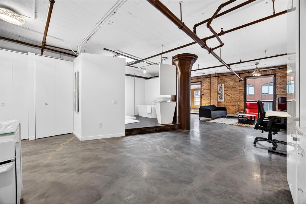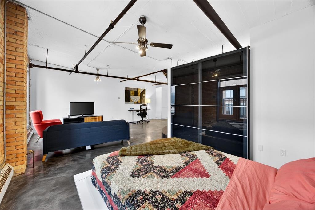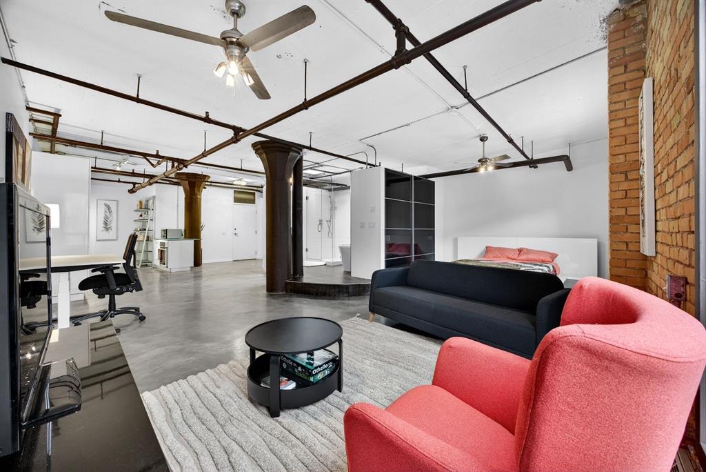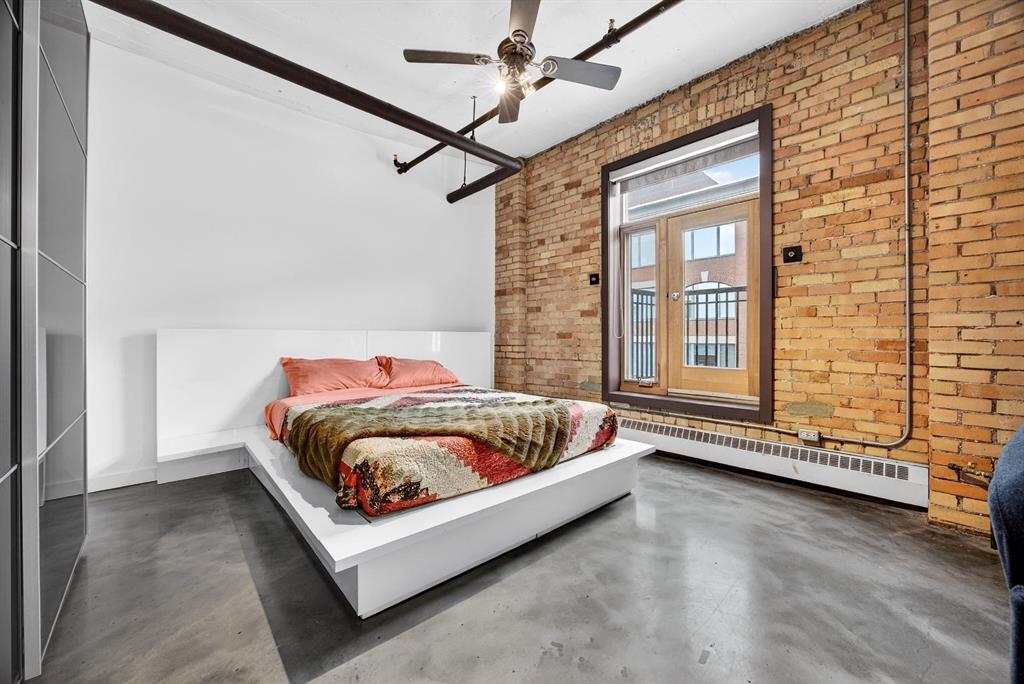 Welcome to the Lewis Lofts! This building gives New York vibes and a rare opportunity to own a piece of history in this 1911 converted Lewis Stationary building. One of Calgary’s only true “hard lofts” a provincial Class "A" Heritage Building that was converted in 1995 to residential condos. This TOP FLOOR penthouse unit features open concept living with polished concrete flooring, original brick feature walls, open industrial ceilings, and large fluted columns that give the property a ton of character. Gorgeous kitchen with sleek white cabinetry, brand quartz counters, undermount sink, built-in integrated dishwasher and fridge, and island with custom glass counter and matching shelving unit. Open to the main area with lots of space for dining, living room, and office area. Remodeled open concept bathroom with floor to ceiling tile, free-standing soaker tub, walk-in glass shower, and separate water closet. Bedroom area with garden door out to the top floor West facing balcony with High Park and DT views. In suite laundry and a direct vent outside with air conditioning unit included complete this amazing space. The unit comes with heated underground parking, storage locker, and the building features a huge common area patio with gazebo, BBQs, and lawn furniture, a great spot to hang out with friends on summer days! All located in the heart of the Beltline across the street from Vintage Chop house and walking distance to all the bars, restaurants, shops, DT Core, Vibrant 10th and 17th Avenue. Convenient close access to the +15 walkway, Scotiabank Saddledome, Stampede Park, and so much more! Don’t miss your chance own in one of Calgary’s most sought after historic landmarks, with timeless architecture and character that will be the envy of all your friends!
