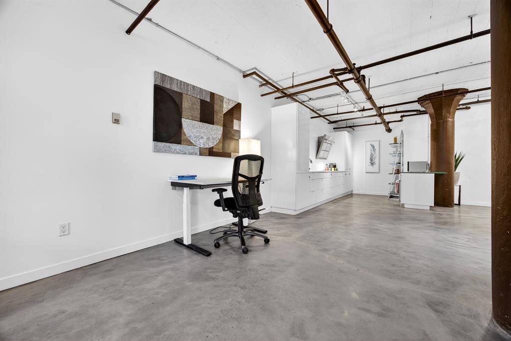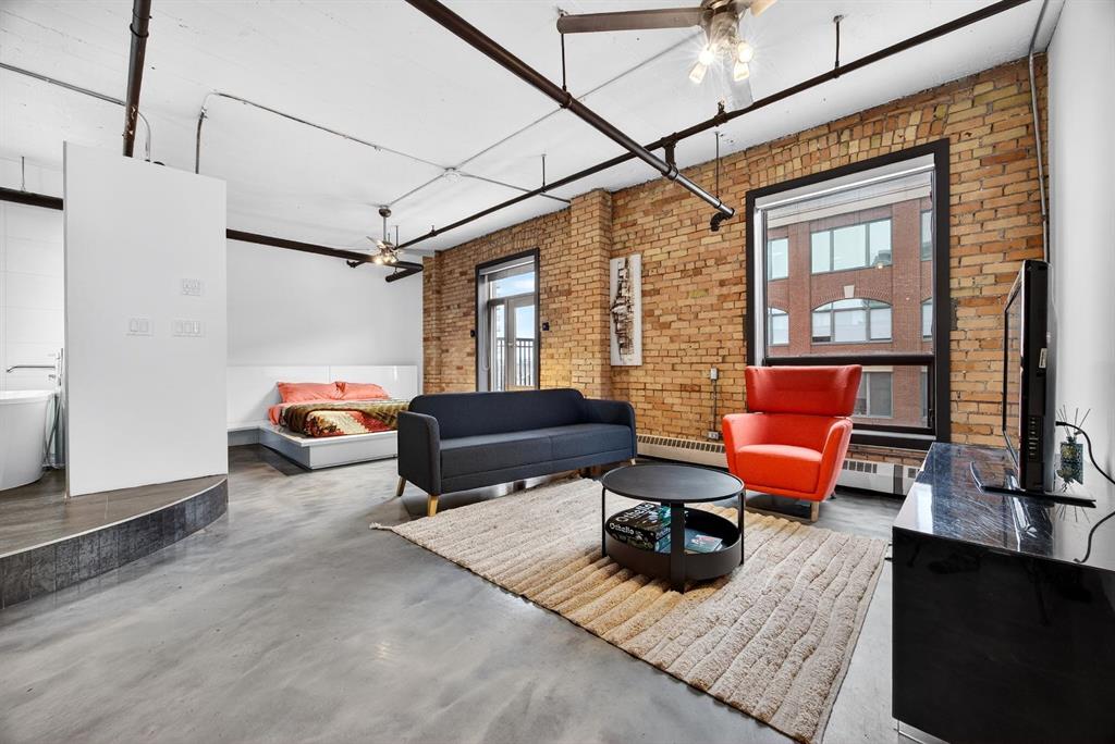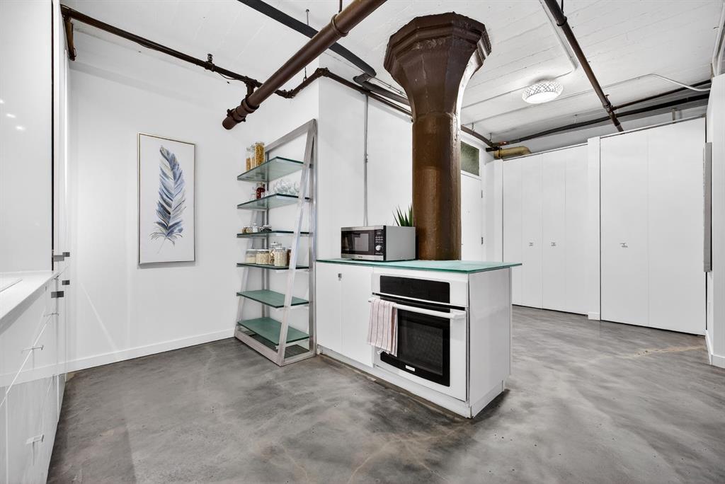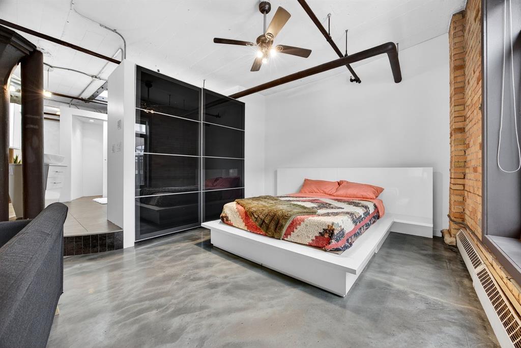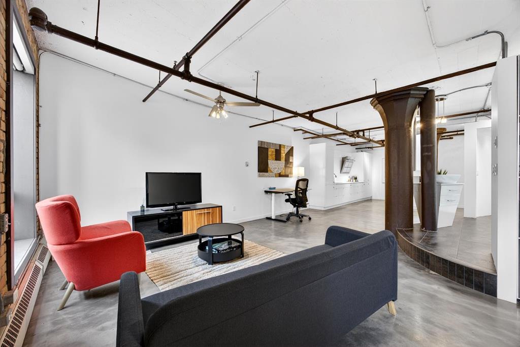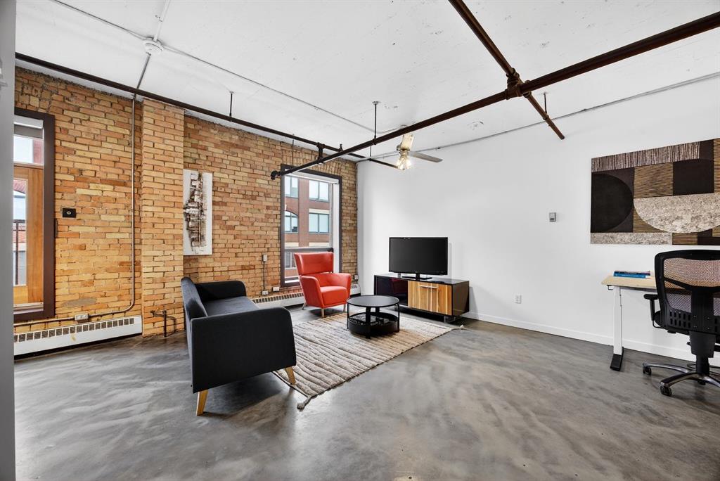 Welcome to the Lewis Lofts! This building gives New York vibes and a rare opportunity to own a piece of history in this 1911 converted Lewis Stationary building. One of Calgary’s only true “hard lofts” a provincial Class "A" Heritage Building that was converted in 1995 to residential condos. This TOP FLOOR penthouse unit features open concept living with polished concrete flooring, original brick feature walls, open industrial ceilings, and large fluted columns that give the property a ton of character. Gorgeous kitchen with sleek white cabinetry, brand quartz counters, undermount sink, built-in integrated dishwasher and fridge, and island with custom glass counter and matching shelving unit. Open to the main area with lots of space for dining, living room, and office area. Remodeled open concept bathroom with floor to ceiling tile, free-standing soaker tub, walk-in glass shower, and separate water closet. Bedroom area with garden door out to the top floor West facing balcony with High Park and DT views. In suite laundry and a direct vent outside with air conditioning unit included complete this amazing space. The unit comes with heated underground parking, storage locker, and the building features a huge common area patio with gazebo, BBQs, and lawn furniture, a great spot to hang out with friends on summer days! All located in the heart of the Beltline across the street from Vintage Chop house and walking distance to all the bars, restaurants, shops, DT Core, Vibrant 10th and 17th Avenue. Convenient close access to the +15 walkway, Scotiabank Saddledome, Stampede Park, and so much more! Don’t miss your chance own in one of Calgary’s most sought after historic landmarks, with timeless architecture and character that will be the envy of all your friends!