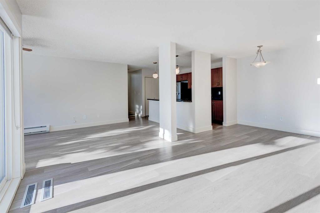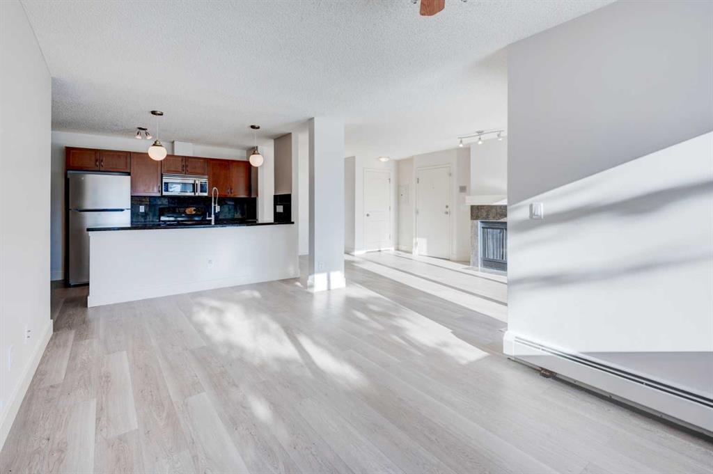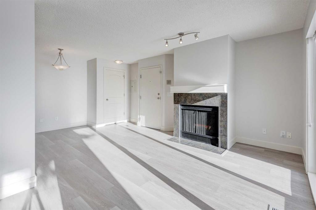 Welcome to this beautifully updated single-level apartment with just over 1000 sqft of living space in the popular “The News” complex that combines the charm of a townhouse with the convenience of condo living. Offering downtown Calgary views, convenient location with easy access to downtown, Winsport and Canada Olympic Park, parks, pathways and an array of condo amenities. As part of this expansive complex, residents enjoy access to fantastic amenities such as tennis courts, a pool and hot tub, a fitness room, and a large community room. This unit features new luxury vinyl plank flooring throughout, new paint and brand new window blinds. Upon entry you’re welcomed by a bright open living space with oversized windows, cozy wood burning fireplace, spacious kitchen with granite countertops, stainless steel appliances and nice maple cabinetry. The two spacious bedrooms are both a nice size and the primary includes a walk-in closet and it’s own 3pc ensuite bath. This unit also includes in-suite laundry, heated underground parking, and a separate storage locker for added convenience. Centrally located close to downtown Calgary, this home provides easy access to shopping, dining, entertainment, and public transportation.