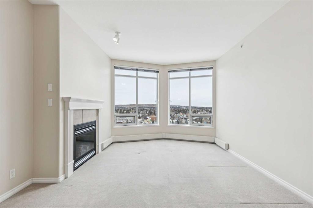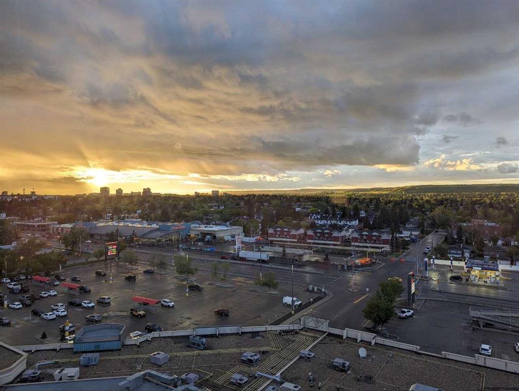 **Open House Sat Jan 31 from 2-4pm** Incredible Nose Hill Park and Mountain views by day, twinkling city light views at night! Live steps to the LRT station, be able to get your groceries in the dead of winter without having to go outside and enjoy central air conditioning in the heat of the summer! Welcome to The Renaissance, an 18+ condo complex in Hounsfield Heights. This 7th-floor apartment offers open-concept living at its finest, designed to maximize both space and views. The kitchen features warm maple cabinetry, generous counter space, and overlooks the dining area and spacious living room, complete with a cozy gas fireplace. The primary bedroom has a walk-in closet and a well-appointed ensuite featuring dual sinks, a deep soaker tub, and a separate shower. A second bedroom is conveniently located near the full main bathroom. You’ll also appreciate the in-suite laundry and a versatile storage/den area just inside the entry. This home includes a titled underground parking stall and an additional storage locker in the heated parkade. The Renaissance is known for its outstanding amenities, including a fully equipped exercise room, a library, a movie theatre, a meeting and a social room complete with a kitchen, games room, hobby room, and beautifully landscaped third-floor gardens with gazebo and BBQ areas. Guest suites and 24-hour concierge/security add comfort and peace of mind. An indoor walkway connects directly to North Hill Mall, putting Safeway, Shoppers Drug Mart, restaurants, medical and dental offices all within easy. The LRT station is directly across the street, with the Public Library, SAIT, and Jubilee Auditorium just steps away. Book your showing today!